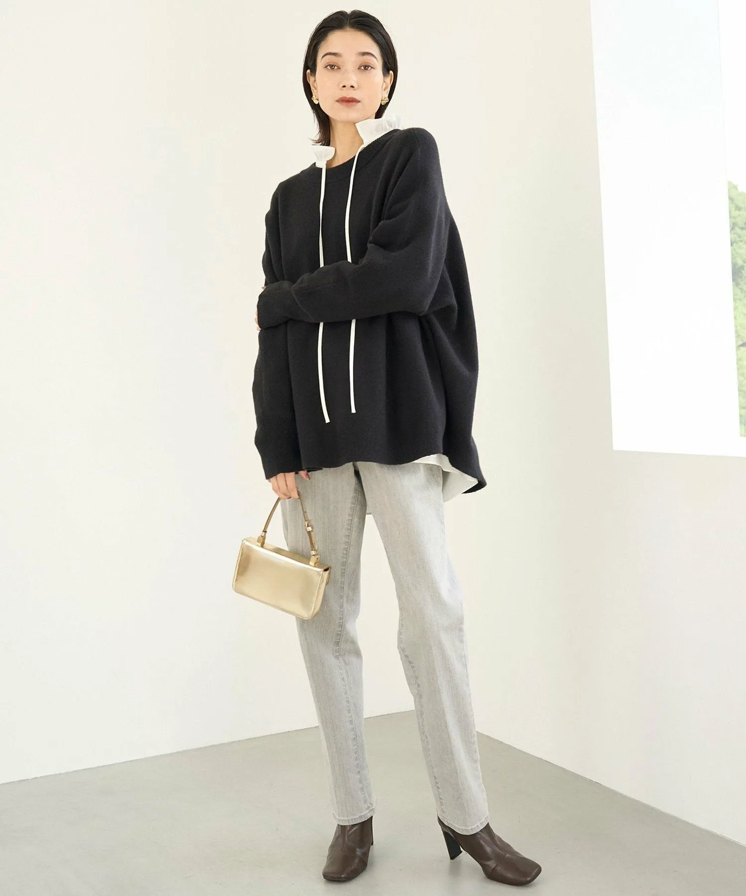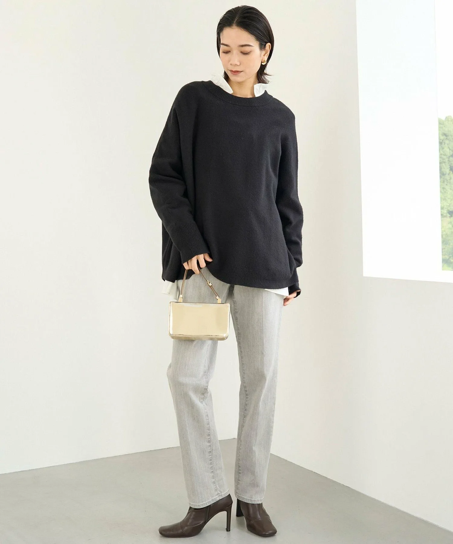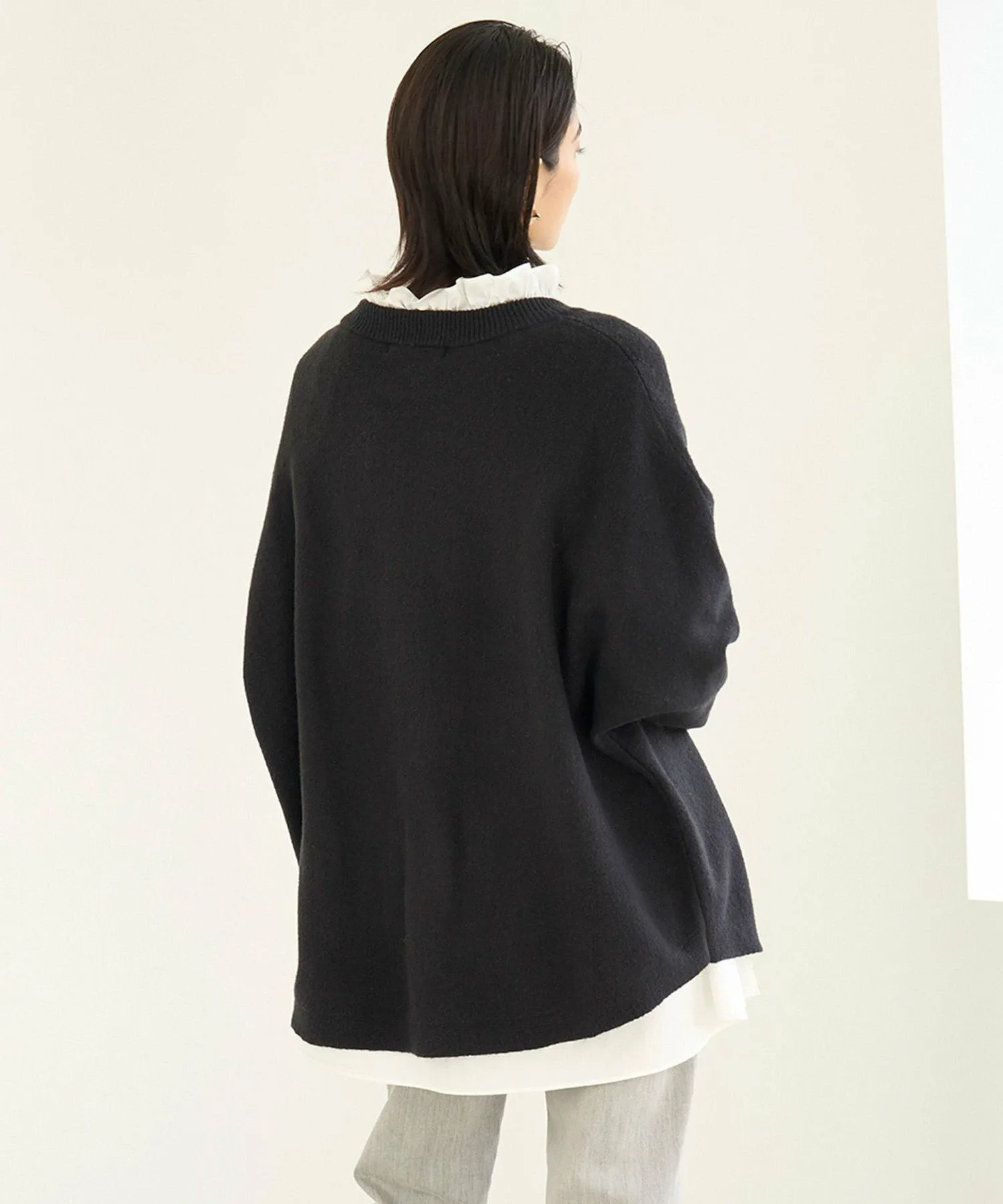 Дизайн: Пуловер с вырезом-лодочкой, рукавами «летучая мышь» и свободным силуэтом. Круглый подол, длина которого различается спереди и сзади, создает едва заметную линию подола, которая выгодно подчеркивает фигуру, а также делает его привлекательным вариантом для самостоятельного ношения. Мы рекомендуем сочетать его с классическими джоггерами, а также с зауженными брюками и юбками.