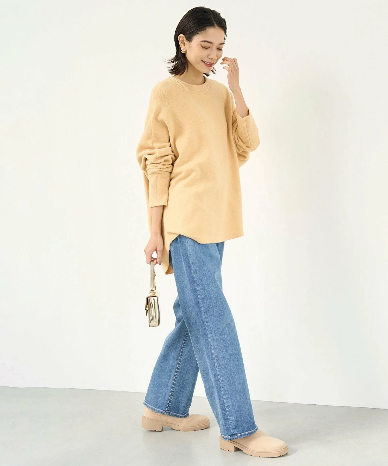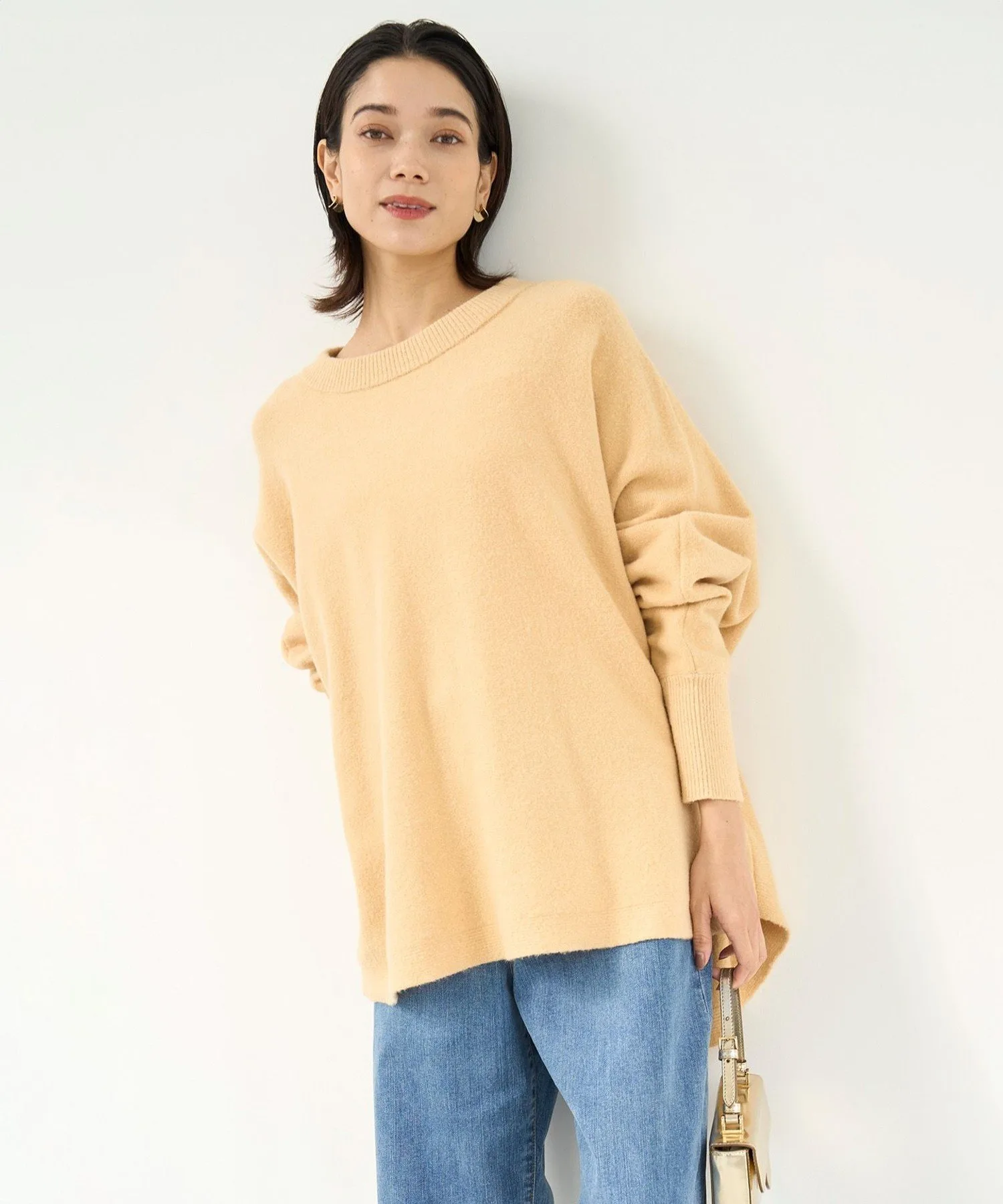 Дизайн: Пуловер с вырезом-лодочкой, рукавами «летучая мышь» и свободным силуэтом. Круглый подол, длина которого различается спереди и сзади, создает едва заметную линию подола, которая выгодно подчеркивает фигуру, а также делает его привлекательным вариантом для самостоятельного ношения. Мы рекомендуем сочетать его с классическими джоггерами, а также с зауженными брюками и юбками.