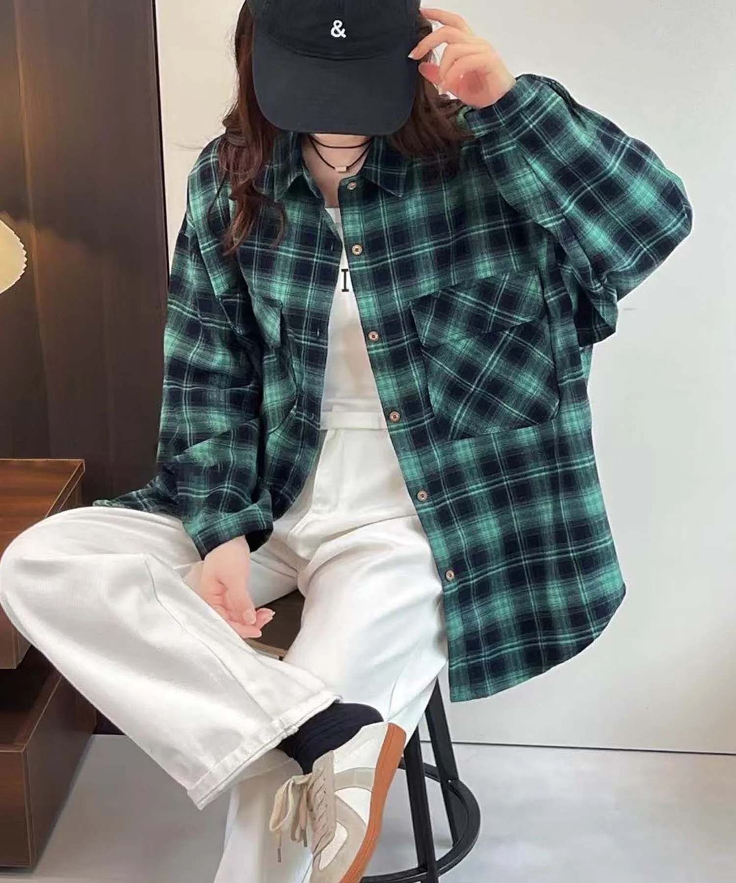 Эта рубашка с длинными рукавами выполнена в ретро-клетчатом узоре. Свободный силуэт обеспечивает комфортную и непринужденную посадку. Накладные карманы на груди добавляют изюминку. Это идеальная вещь для повседневного стиля.