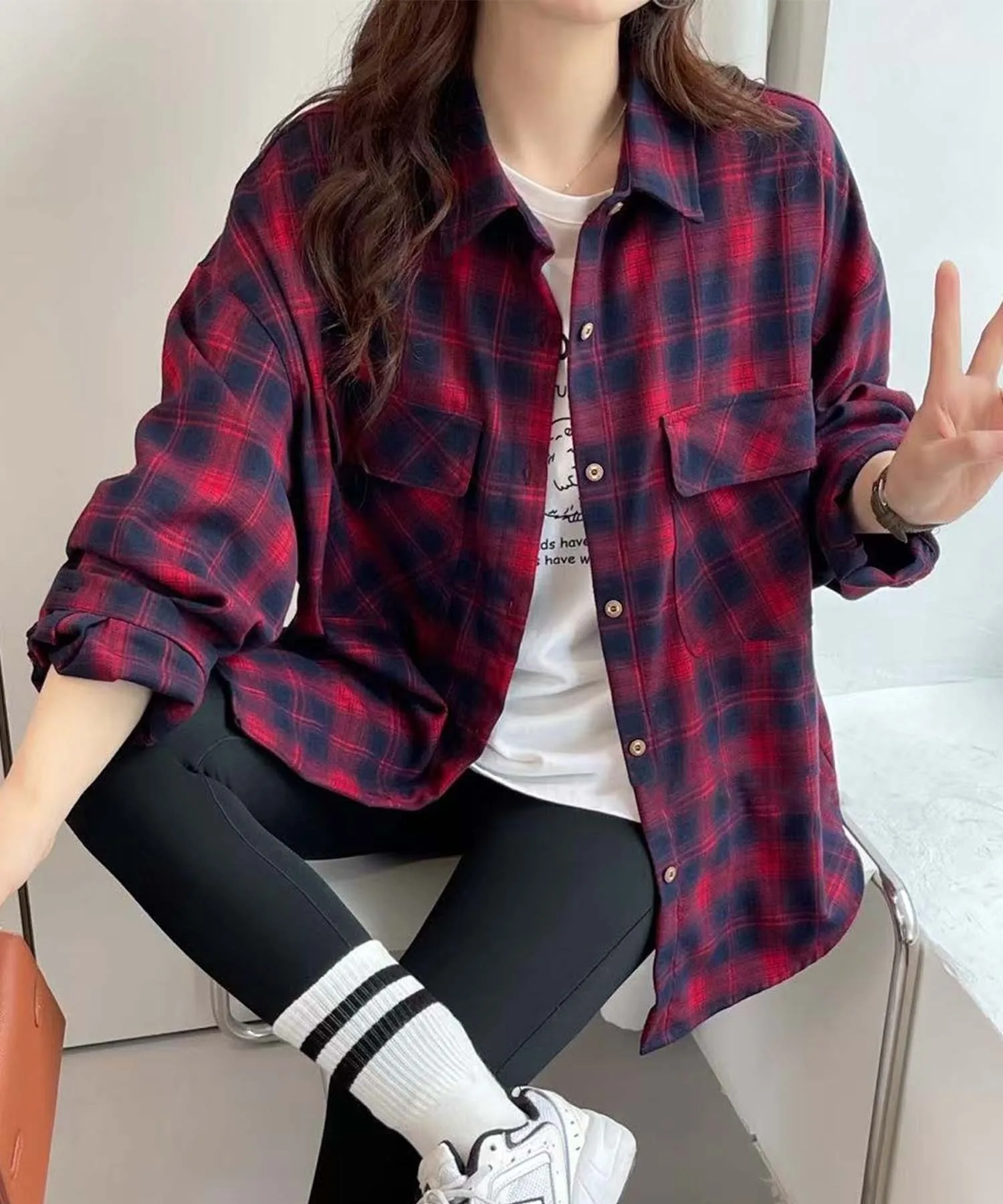 Эта рубашка с длинными рукавами выполнена в ретро-клетчатом узоре. Свободный силуэт обеспечивает комфортную и непринужденную посадку. Накладные карманы на груди добавляют изюминку. Это идеальная вещь для повседневного стиля.