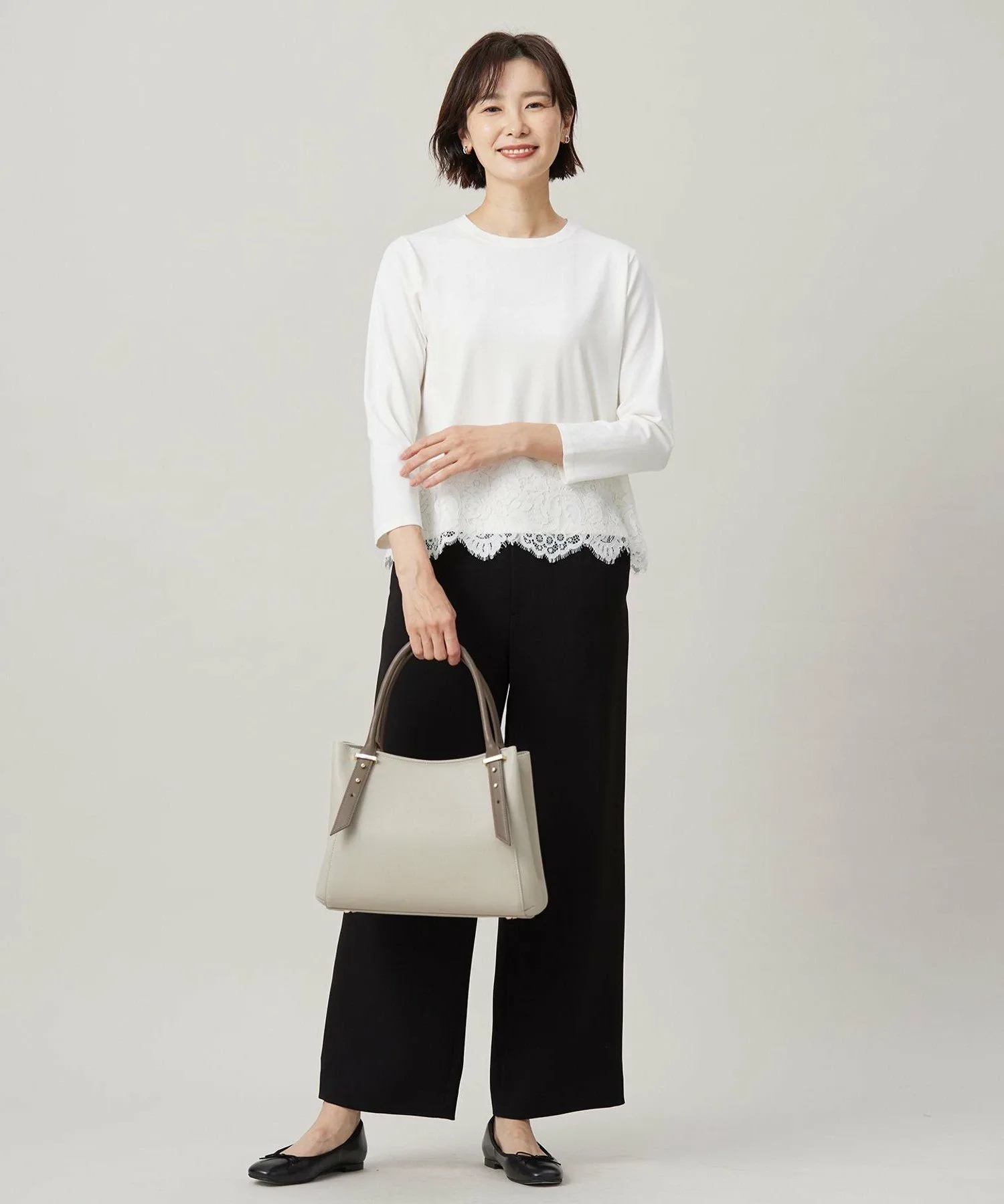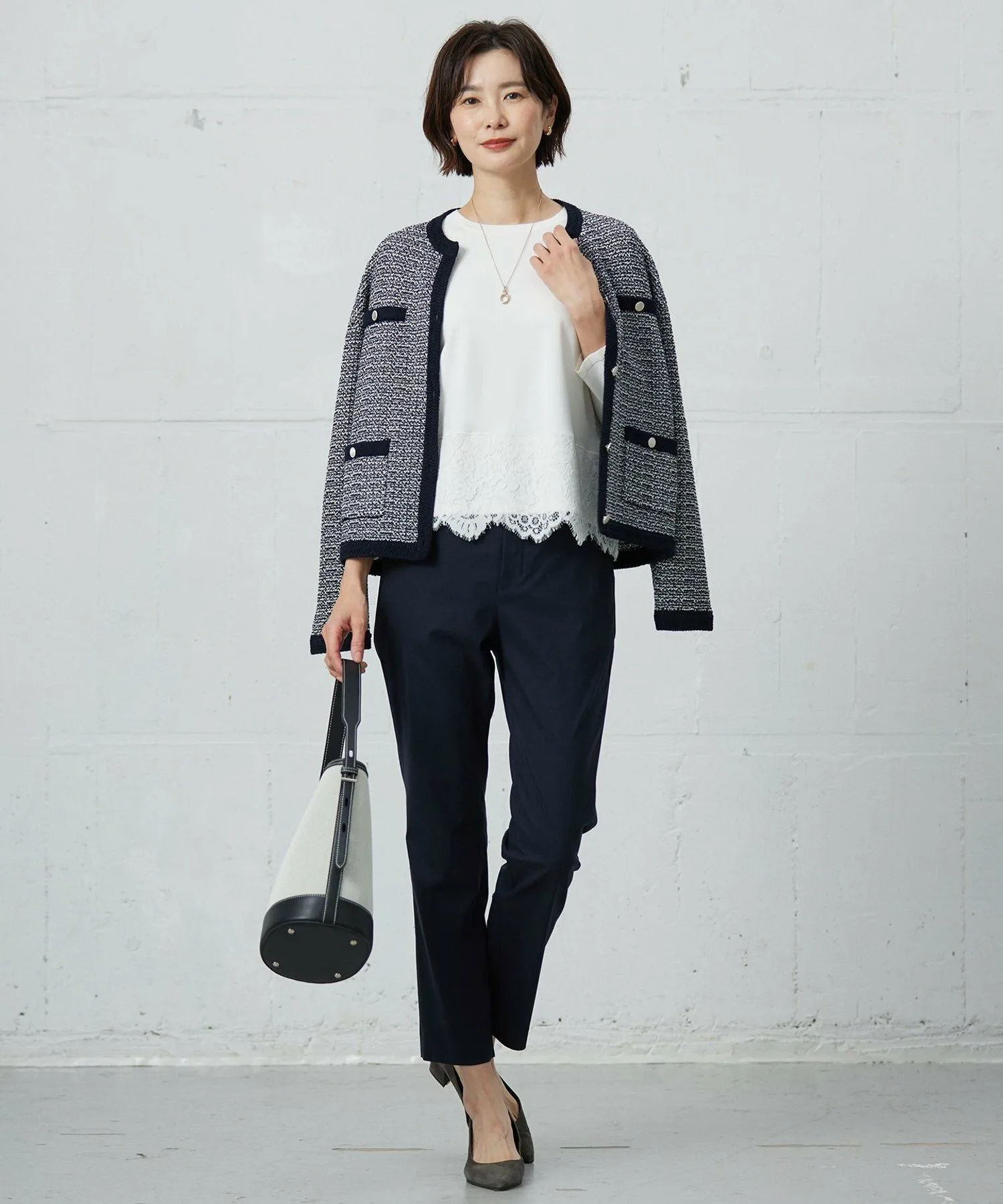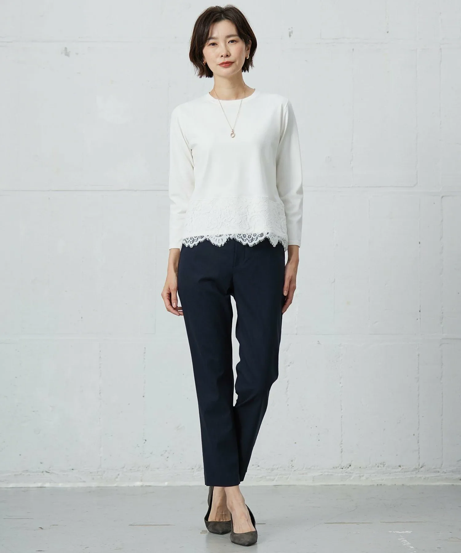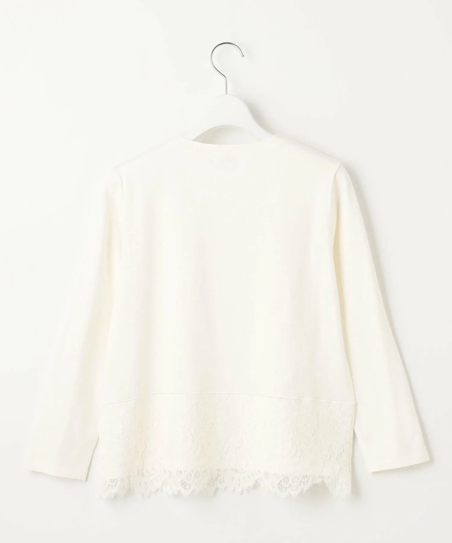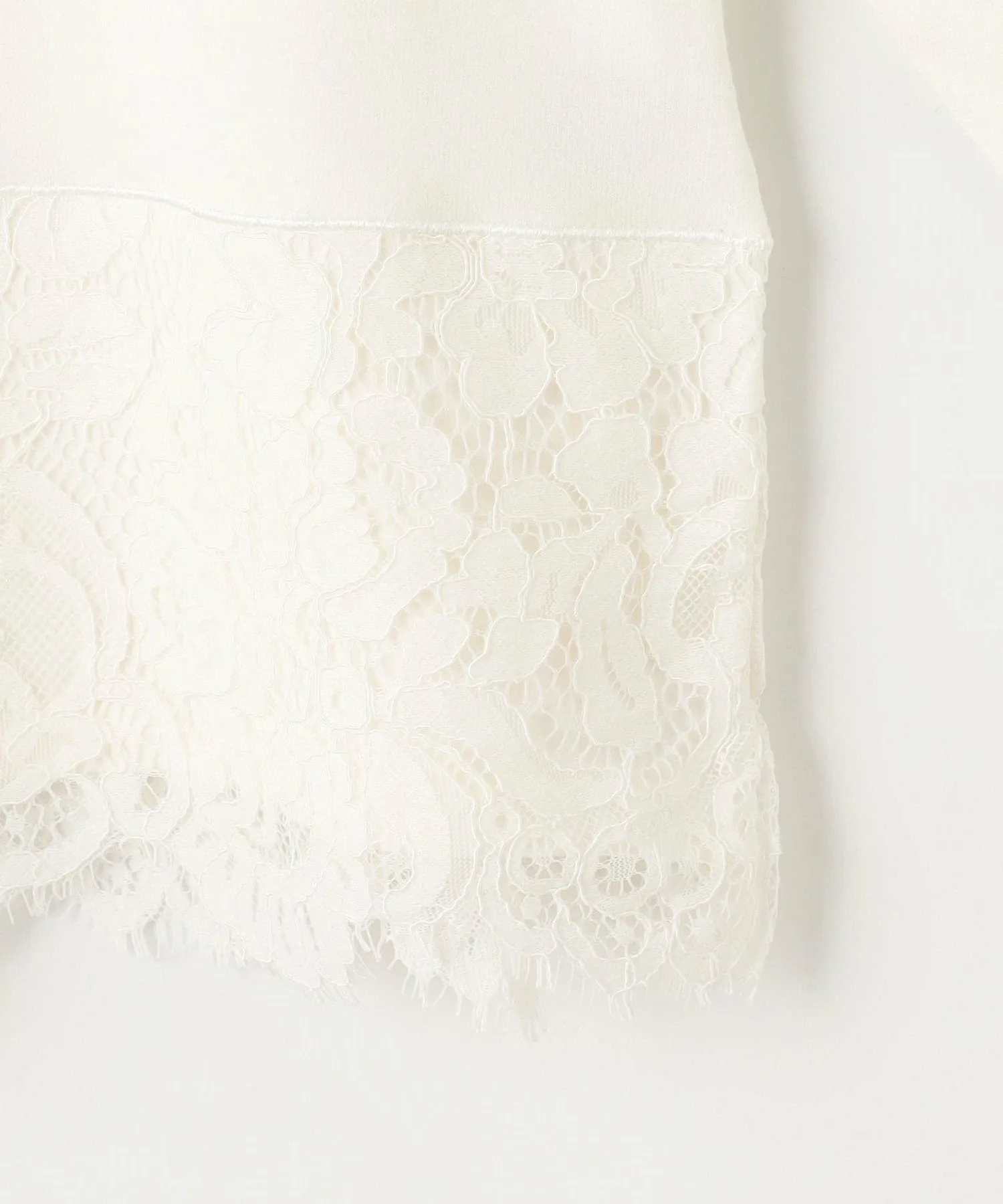 Трикотаж с кружевной отделкой, сочетающий в себе элегантность и изящество. Модное кружево выполнено тонкой вязкой по гладкому, комфортному трикотажу. Добавление кружева только по низу делает изделие элегантным и гламурным, но не слишком броским. Силуэт слегка расширяется к низу, что делает его отличным дополнением к брюкам. Он дарит ощущение весны и прекрасно подходит для самостоятельного ношения.