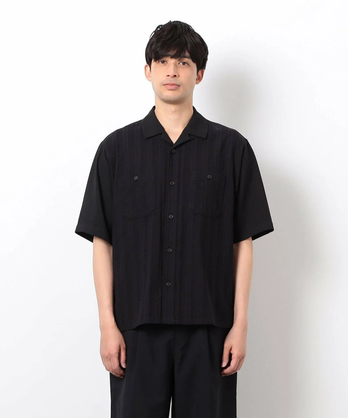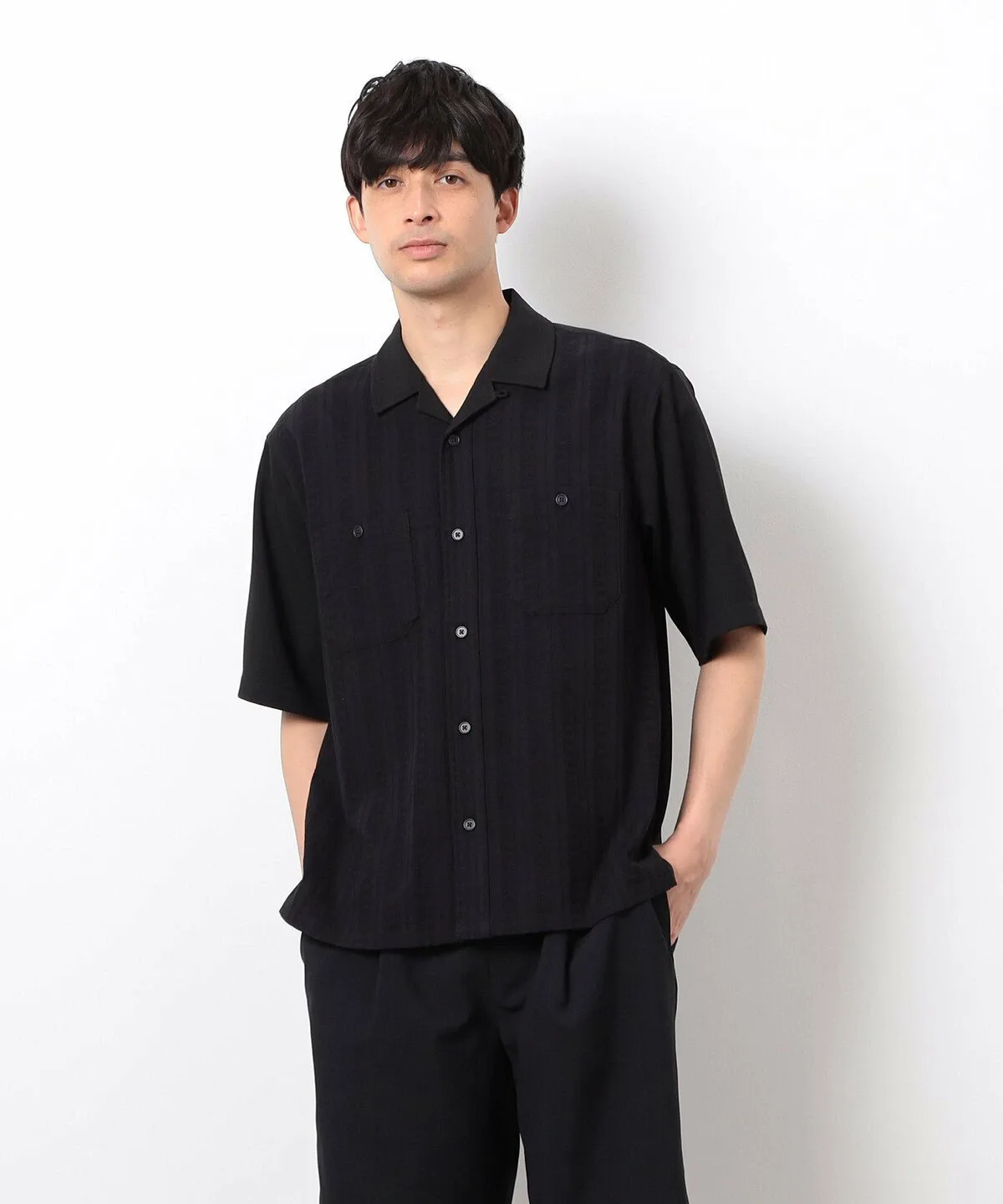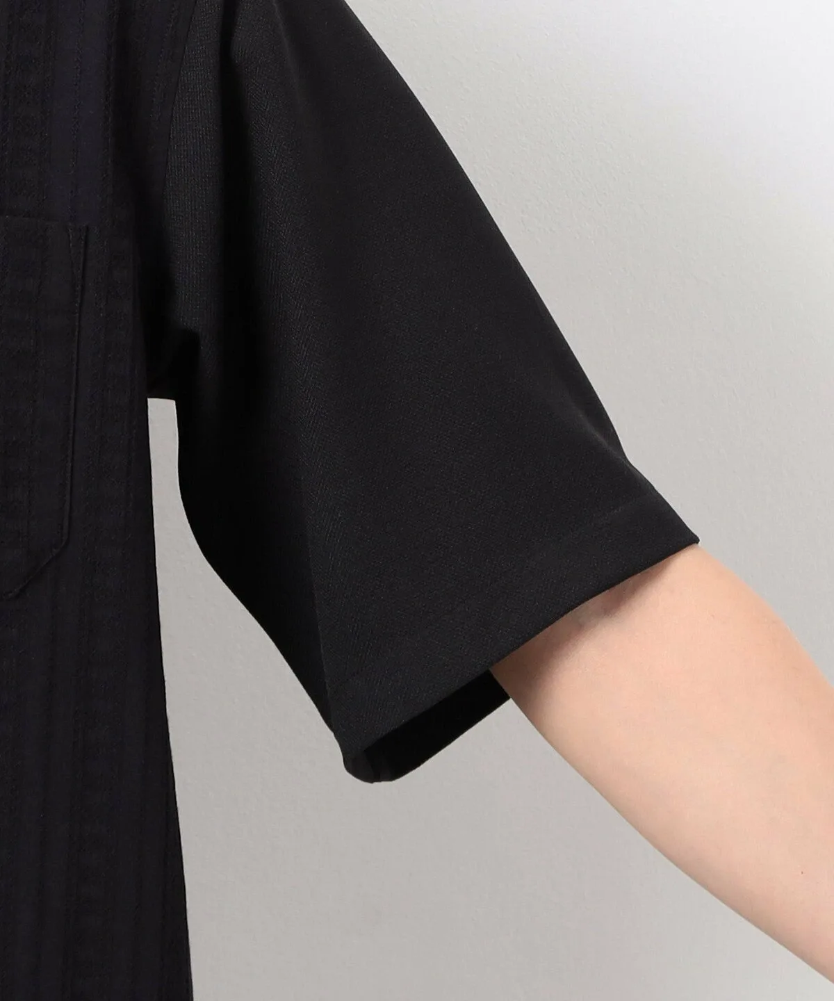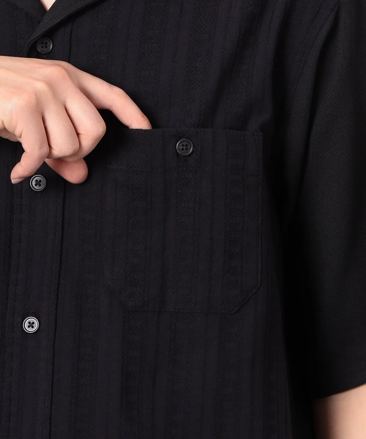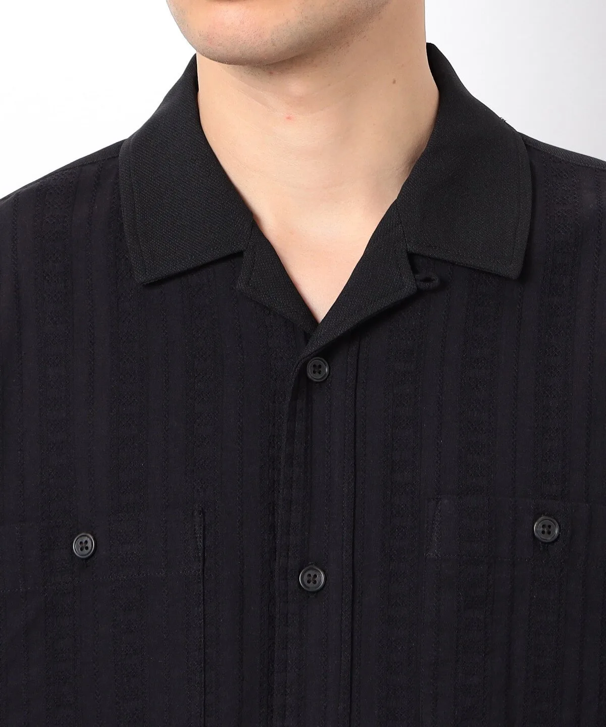 Вышитая жаккардовая ткань используется только на передней части и нагрудном кармане, а остальная часть выполнена из ткани жаккардового плетения с характерной текстурированной поверхностью.