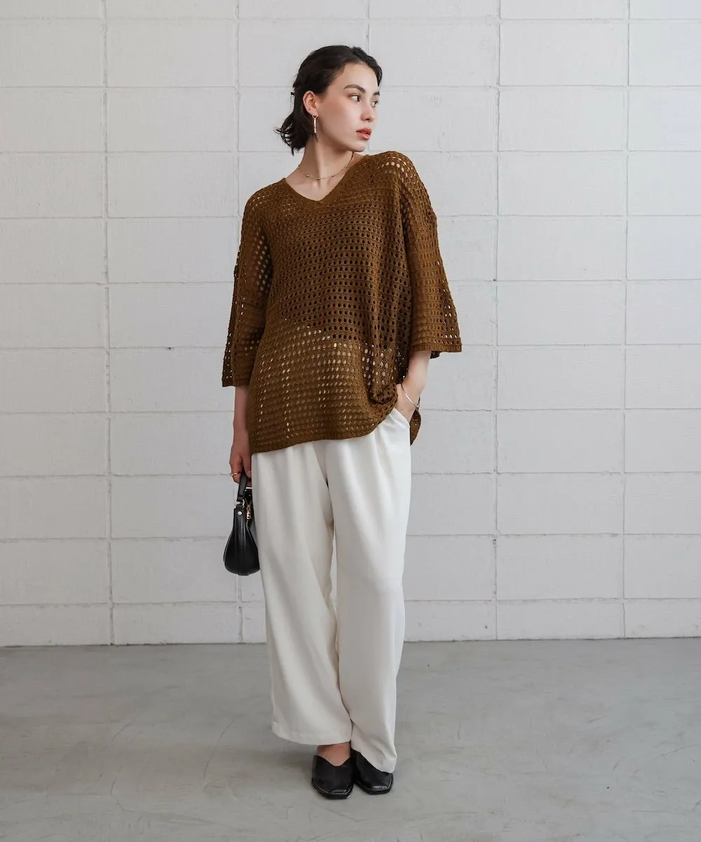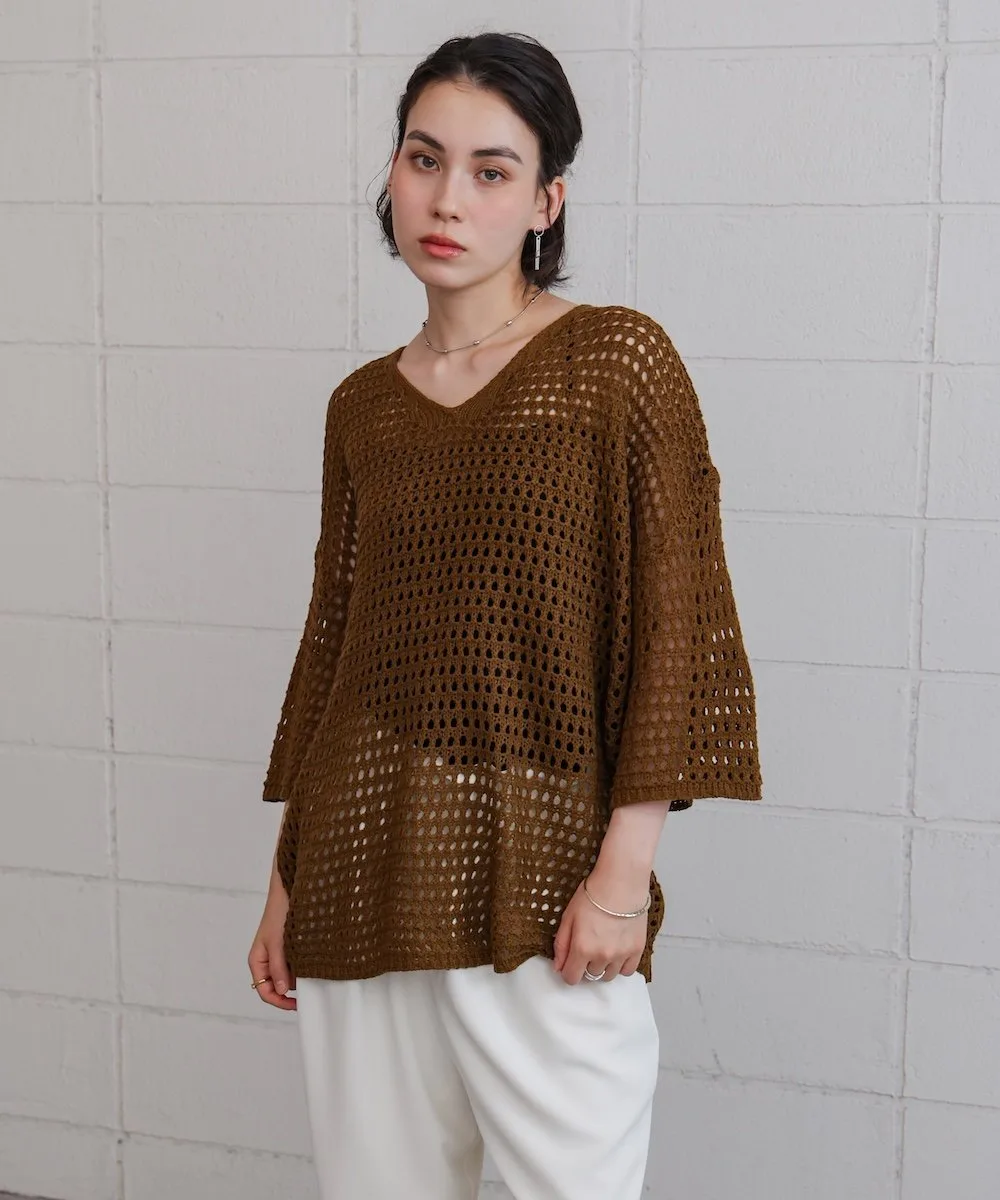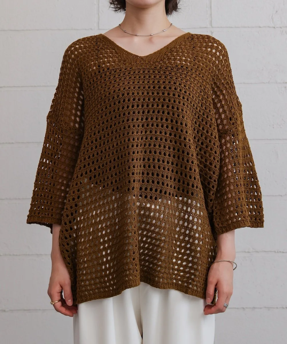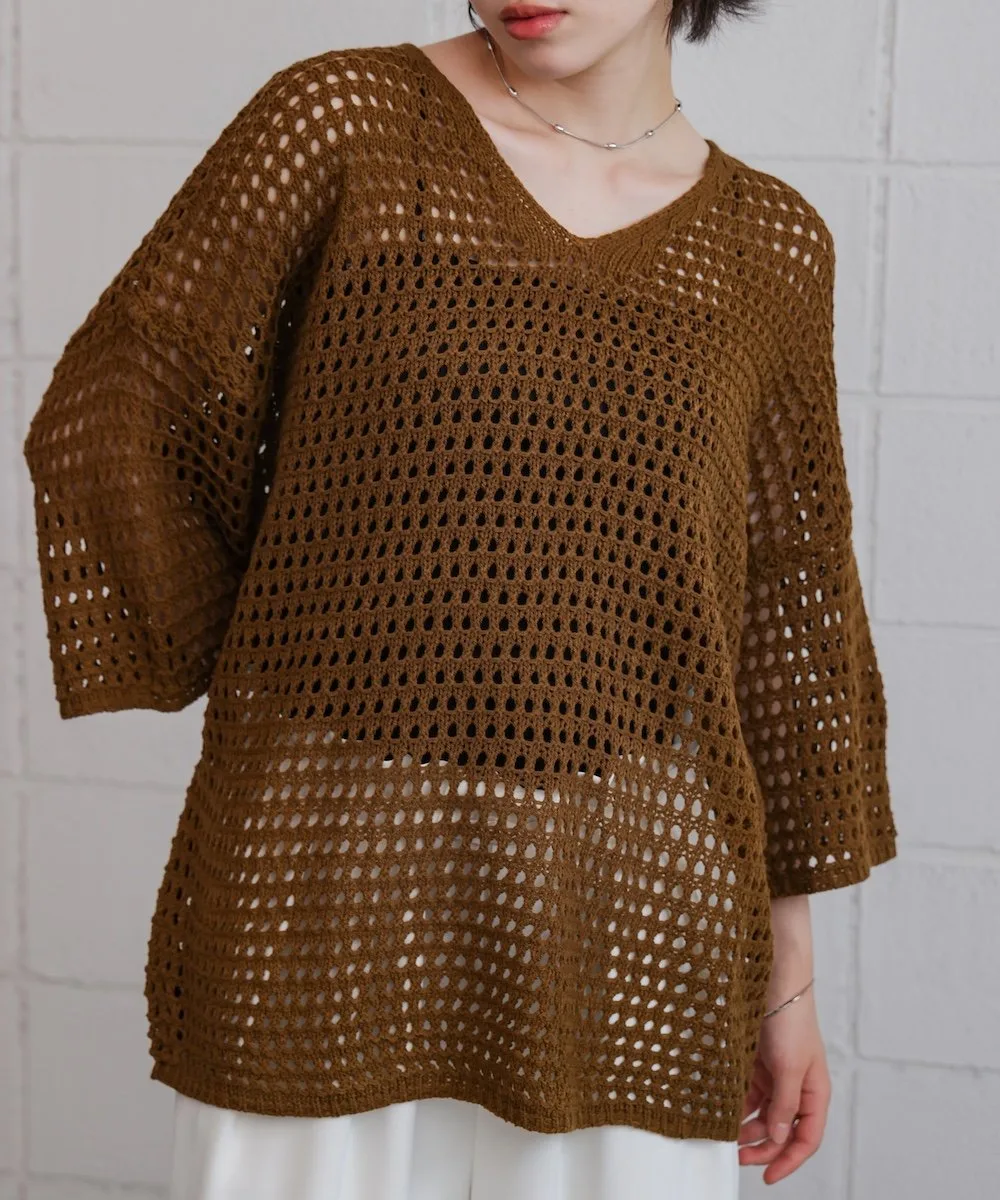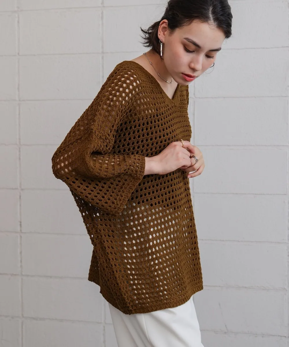 ТОЧКАЭтот объемный сетчатый трикотаж обеспечивает ощущение комфорта. Спущенные плечи делают его удобным и свободным. Глубокий V-образный вырез создает чистый, элегантный образ, при этом демонстрируя достаточное количество кожи. Его элегантный дизайн позволяет дополнять образ аксессуарами и является универсальной вещью с удобной длиной, закрывающей талию.