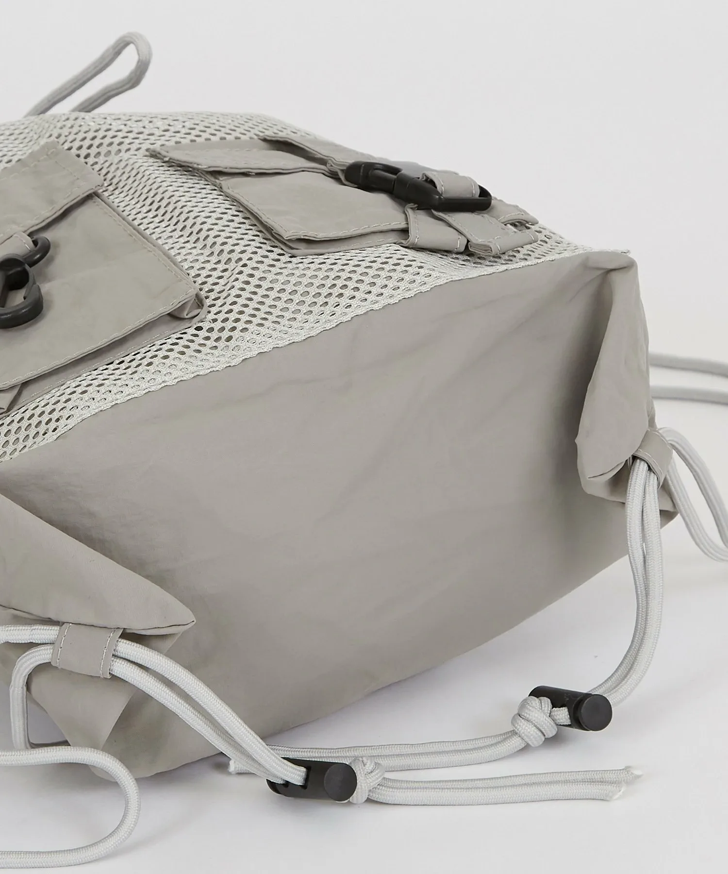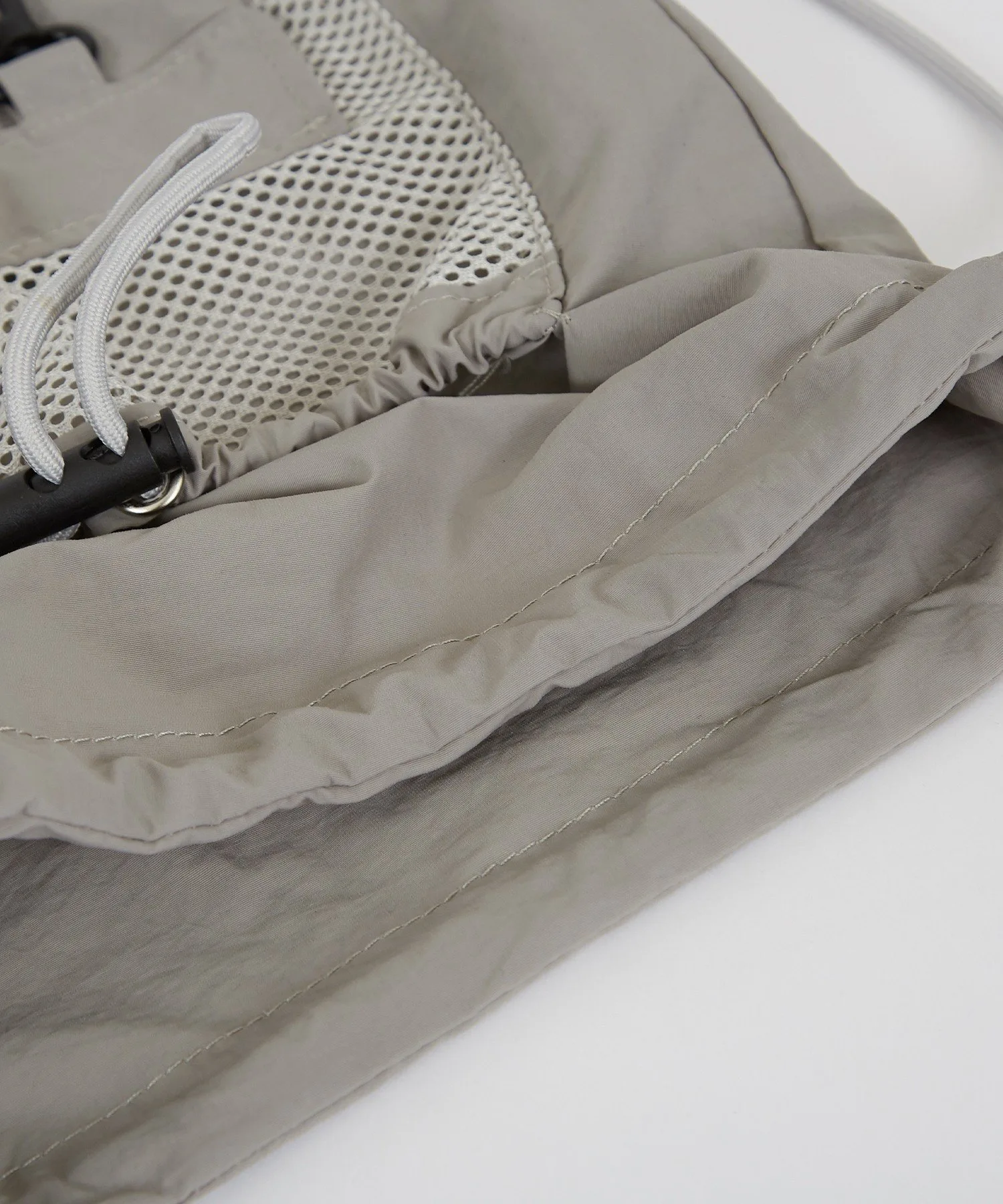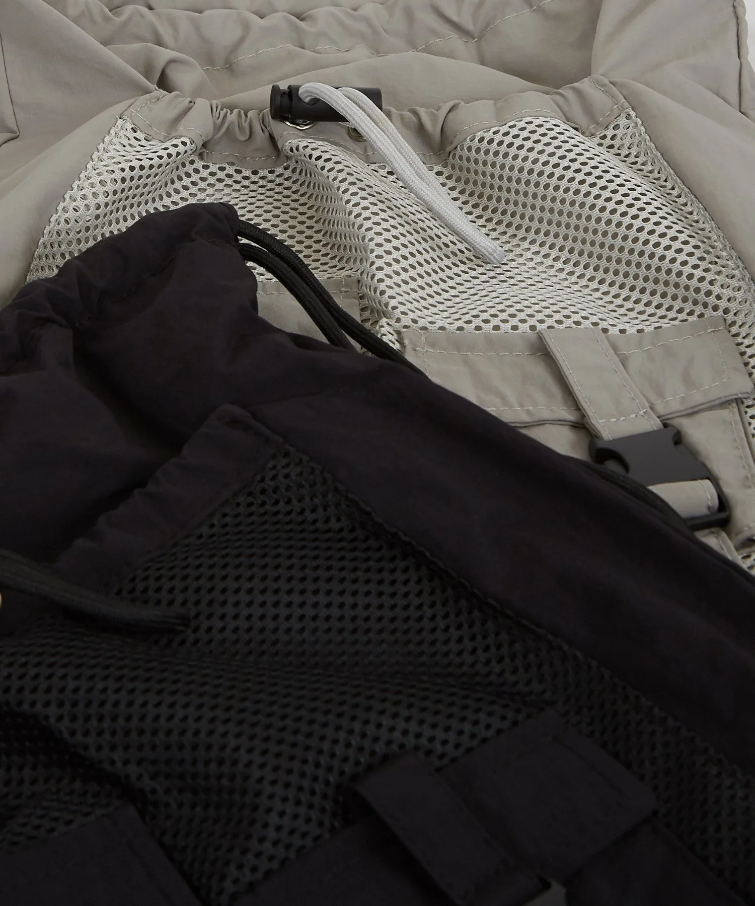 Легкий полинейлоновый материал с сеткой и трехмерным карманом спереди.