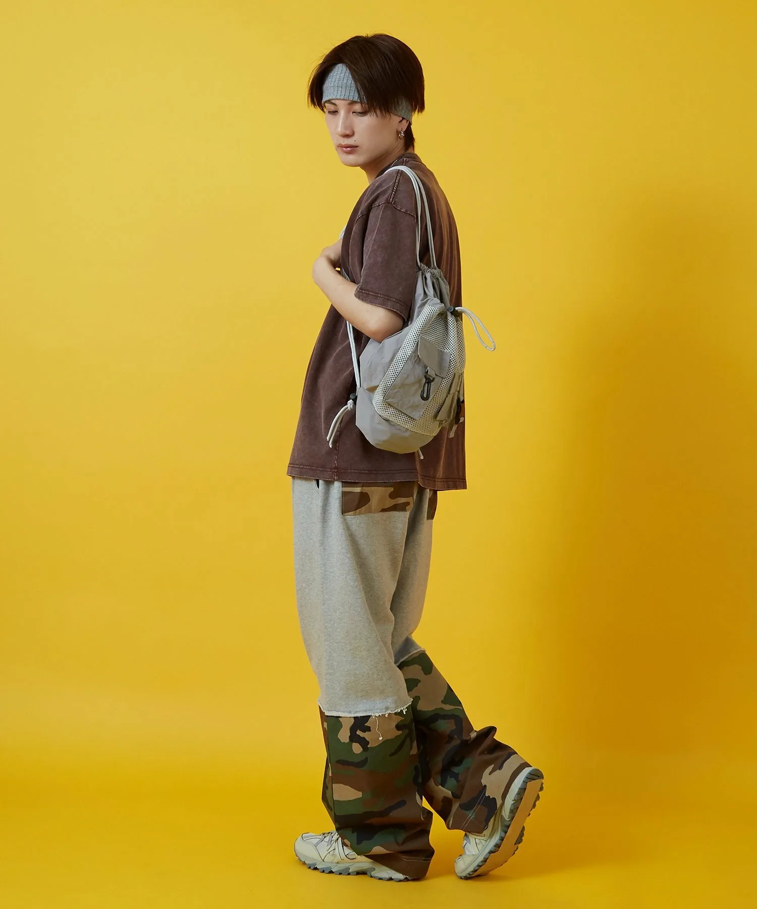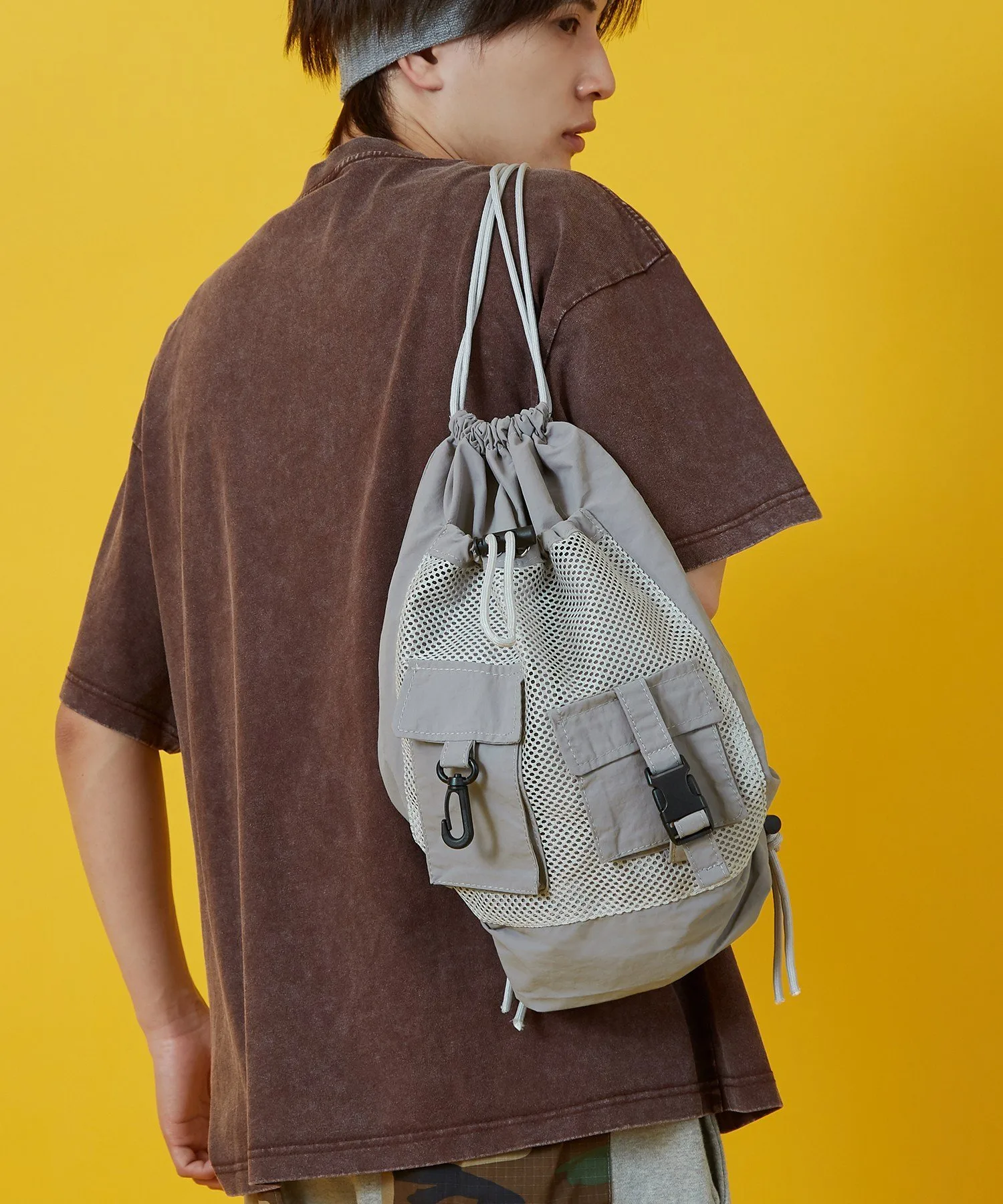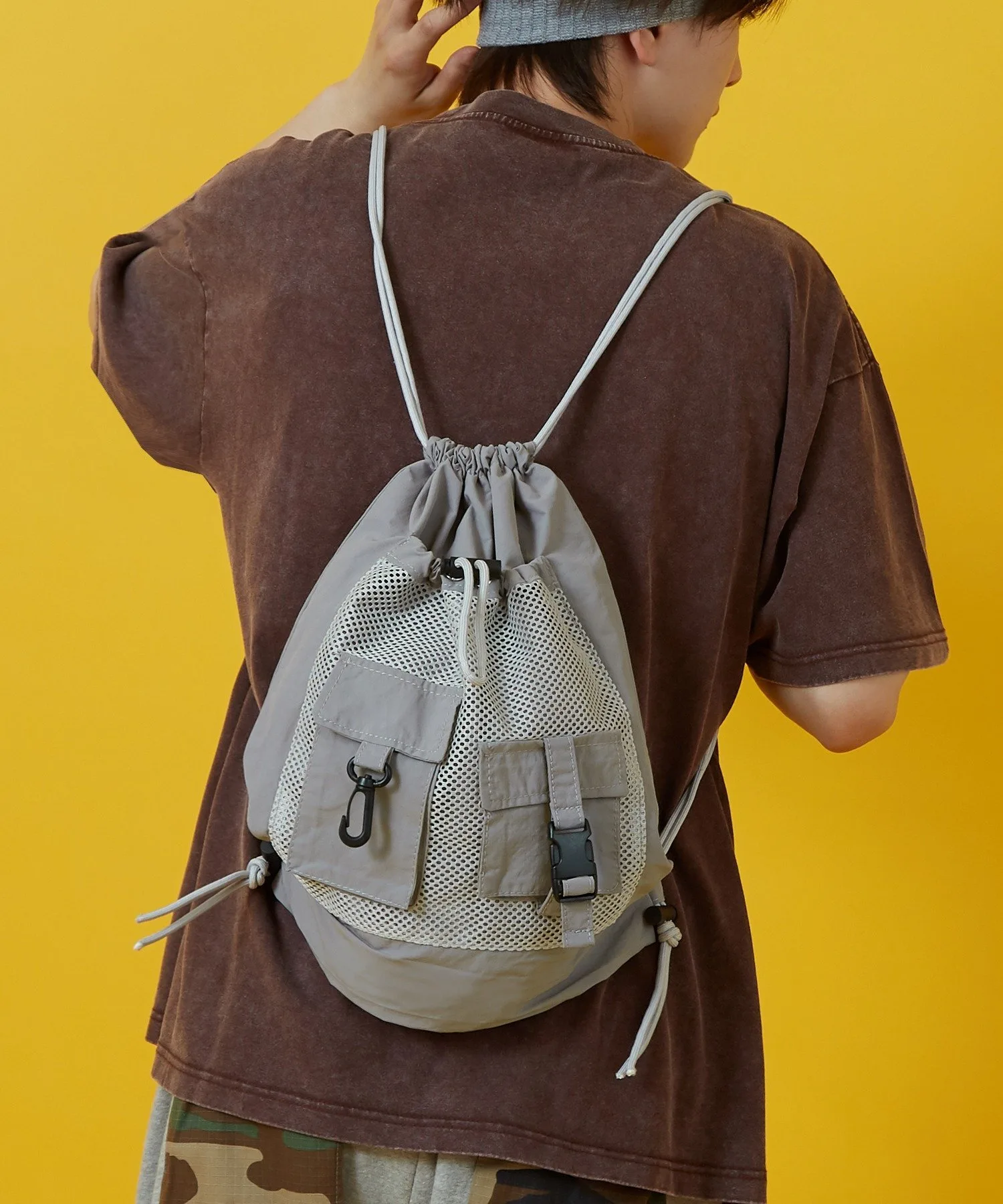 Легкий полинейлоновый материал с сеткой и трехмерным карманом спереди.