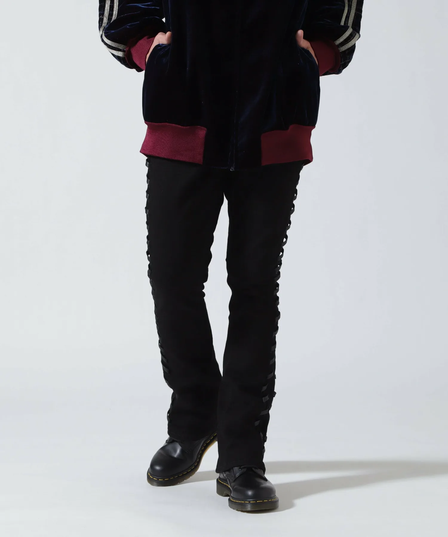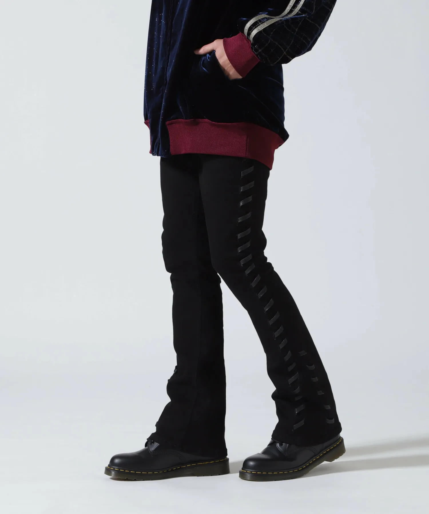 Уникальный силуэт отличается удлиненной длиной и эффектом «наслаивания» в области стопы. Сочетание с кроссовками или ботинками создает трехмерный многослойный эффект, визуально удлиняющий ноги. Шнуровка по бокам добавляет изысканный, привлекательный дизайн. Эластичный материал обеспечивает облегающую, но при этом комфортную посадку. [Valabasas] Основанный в 2019 году, этот бренд уличной одежды был создан двумя братьями, которые более 20 лет работали закупщиками и продавцами в собственных магазинах. VALABASAS был основан, когда они использовали свой опыт и знания для создания одного вида джинсовой одежды. Доступная только в избранных магазинах в США, линейка продукции теперь расширилась и включает в себя топы, куртки и сумки. Несмотря на короткую историю, бренд быстро завоевал популярность благодаря таким влиятельным личностям, как рэперы, например, Moneybagg Yo, и игроки НБА.