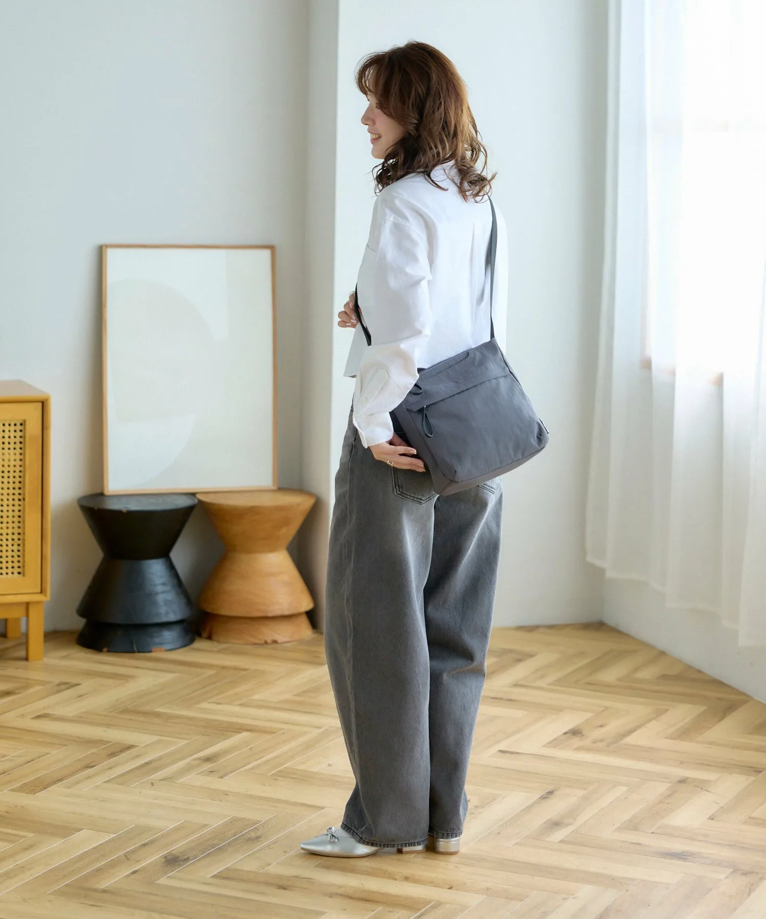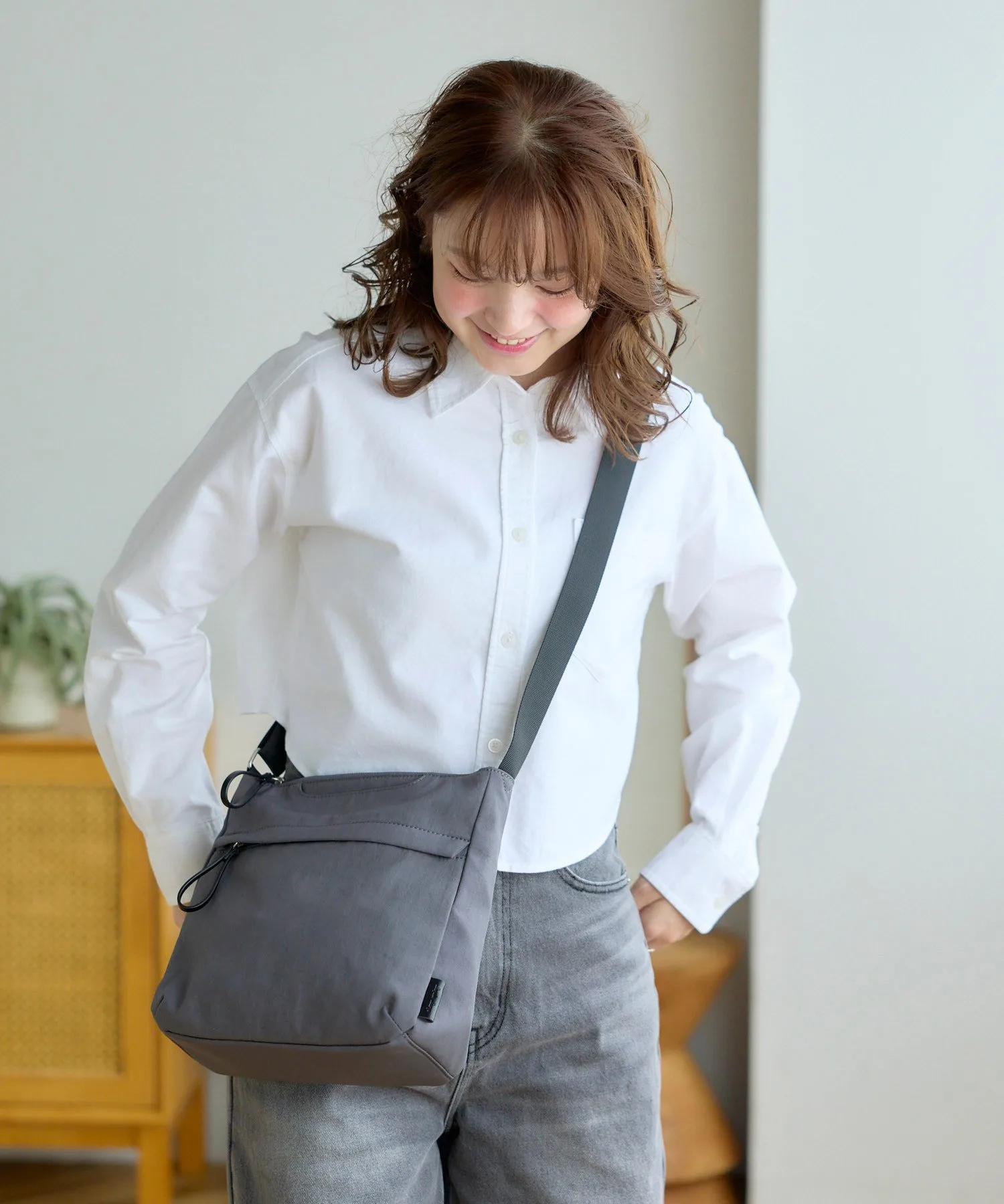 Невероятно удобная! Это серия Natural Easy Bag. Мы намеренно уменьшили количество металлической застежки, чтобы создать естественный вид. Эти изделия выполнены из натуральных материалов и разработаны с учетом удобства использования. ◎Петлеобразные язычки облегчают открывание и закрывание. ◎Водоотталкивающее покрытие упрощает уход, даже в дождливую погоду. ◎Включает карман для быстрого доступа к смартфону.