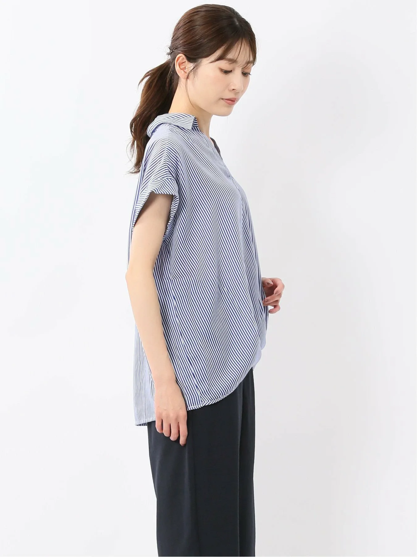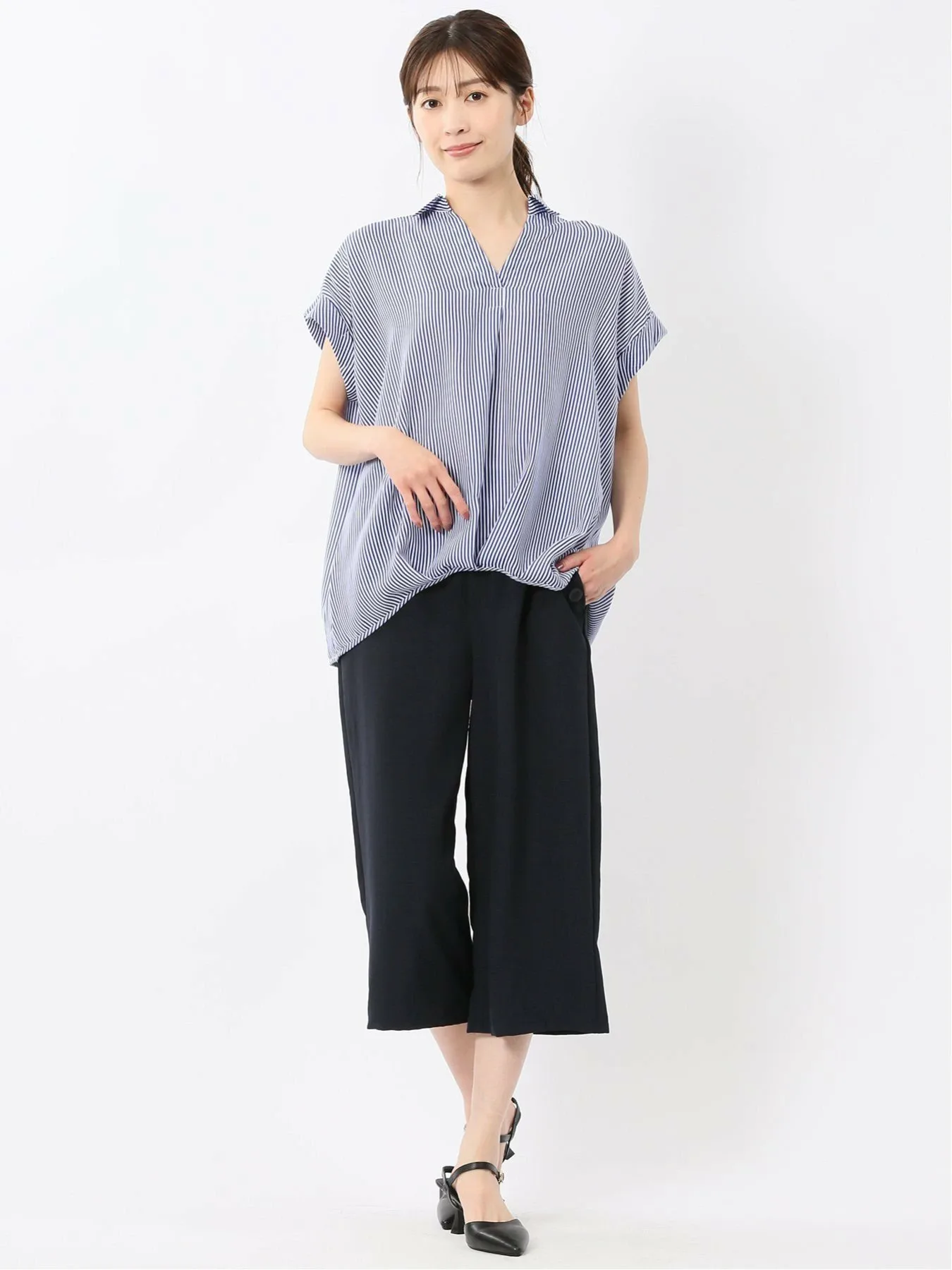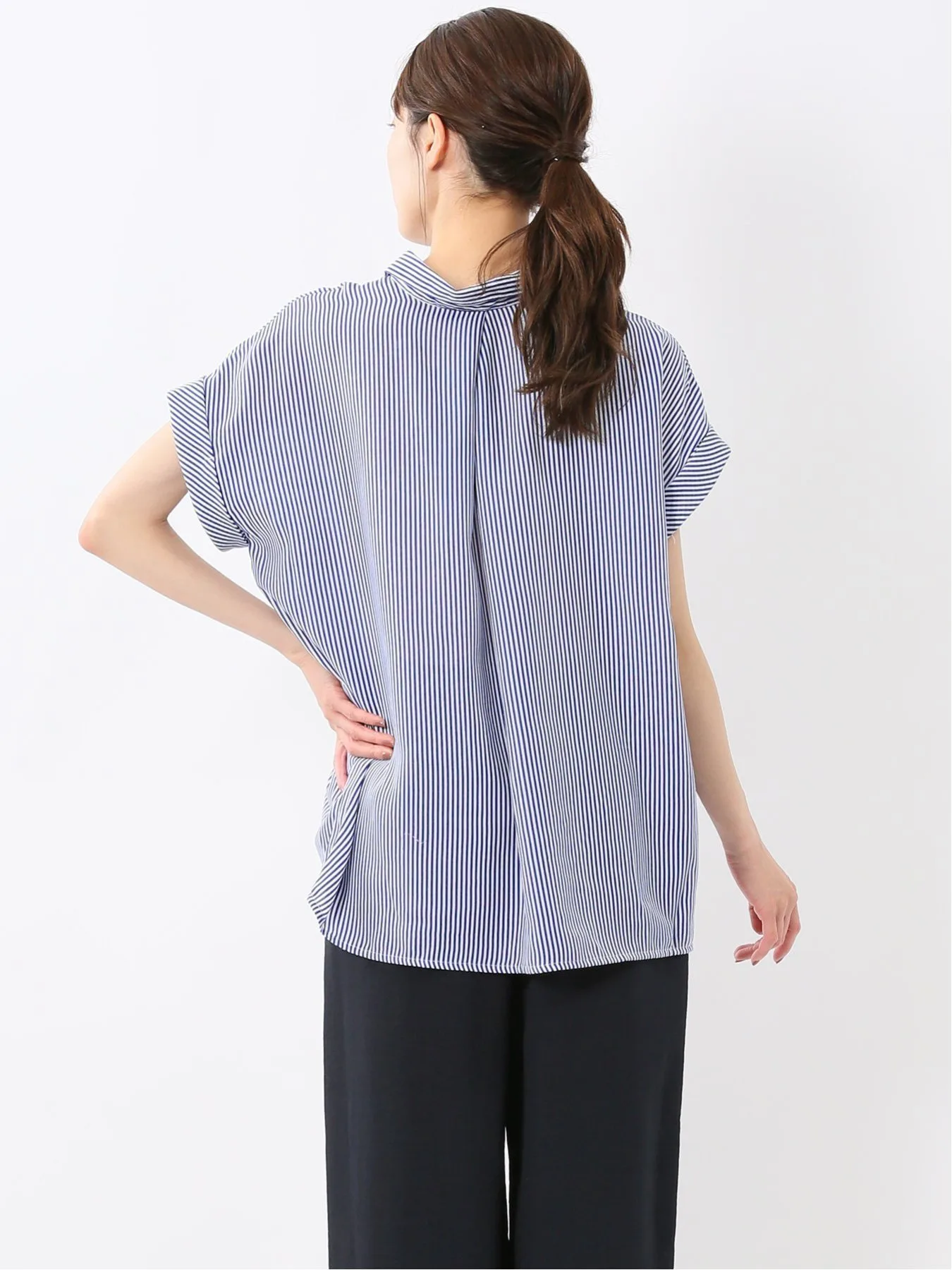 В сочетании с элегантными плиссированными брюками или узкими брюками-клеш она создает сбалансированный образ. Мы также рекомендуем добавить ожерелье или другой аксессуар, чтобы придать шее блеск. Она идеально подходит как для формальной, так и для повседневной носки, от повседневной до деловой.
