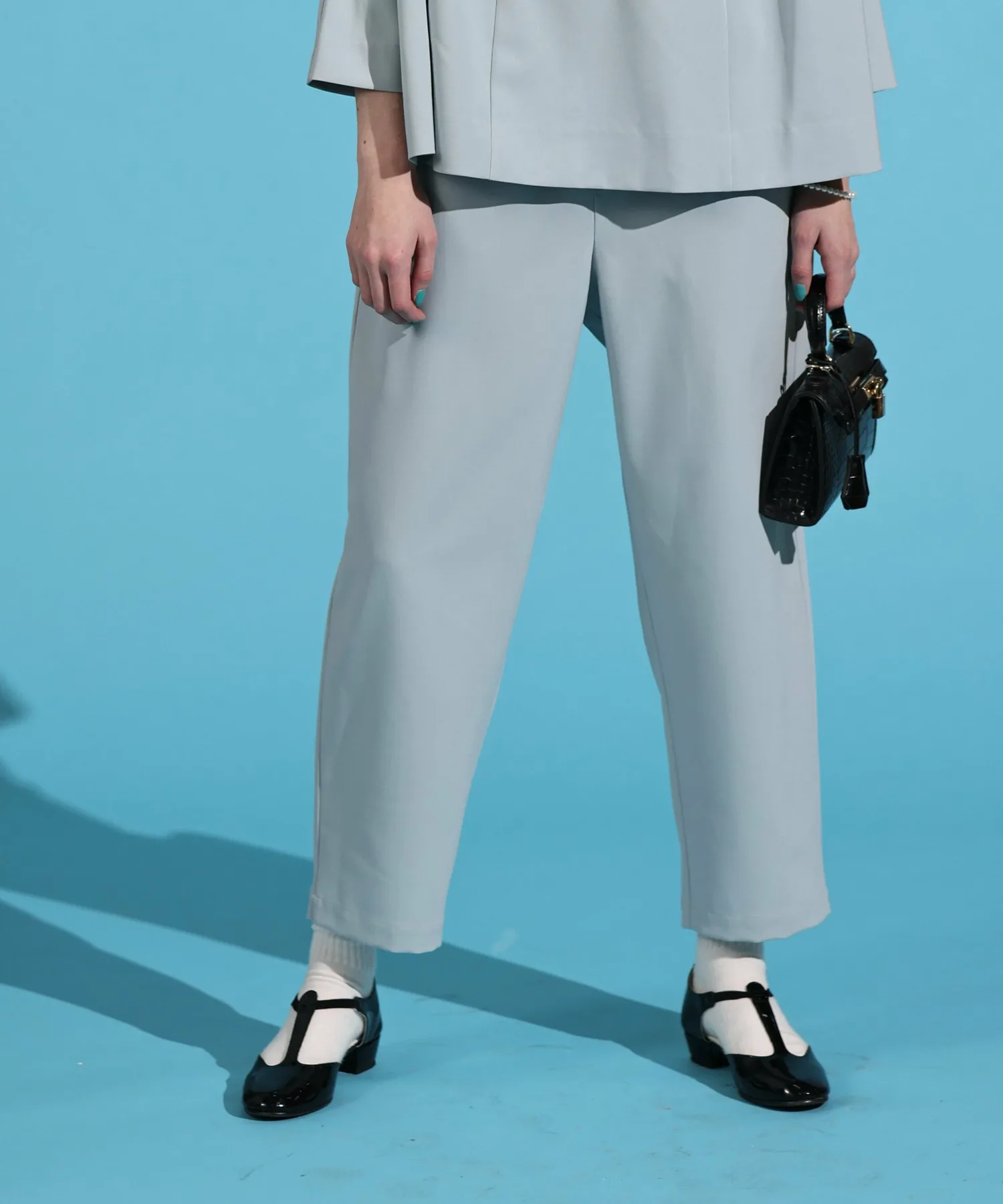 Эта модель имеет красивый зауженный силуэт, свободный в области бедер и сужающийся к низу.