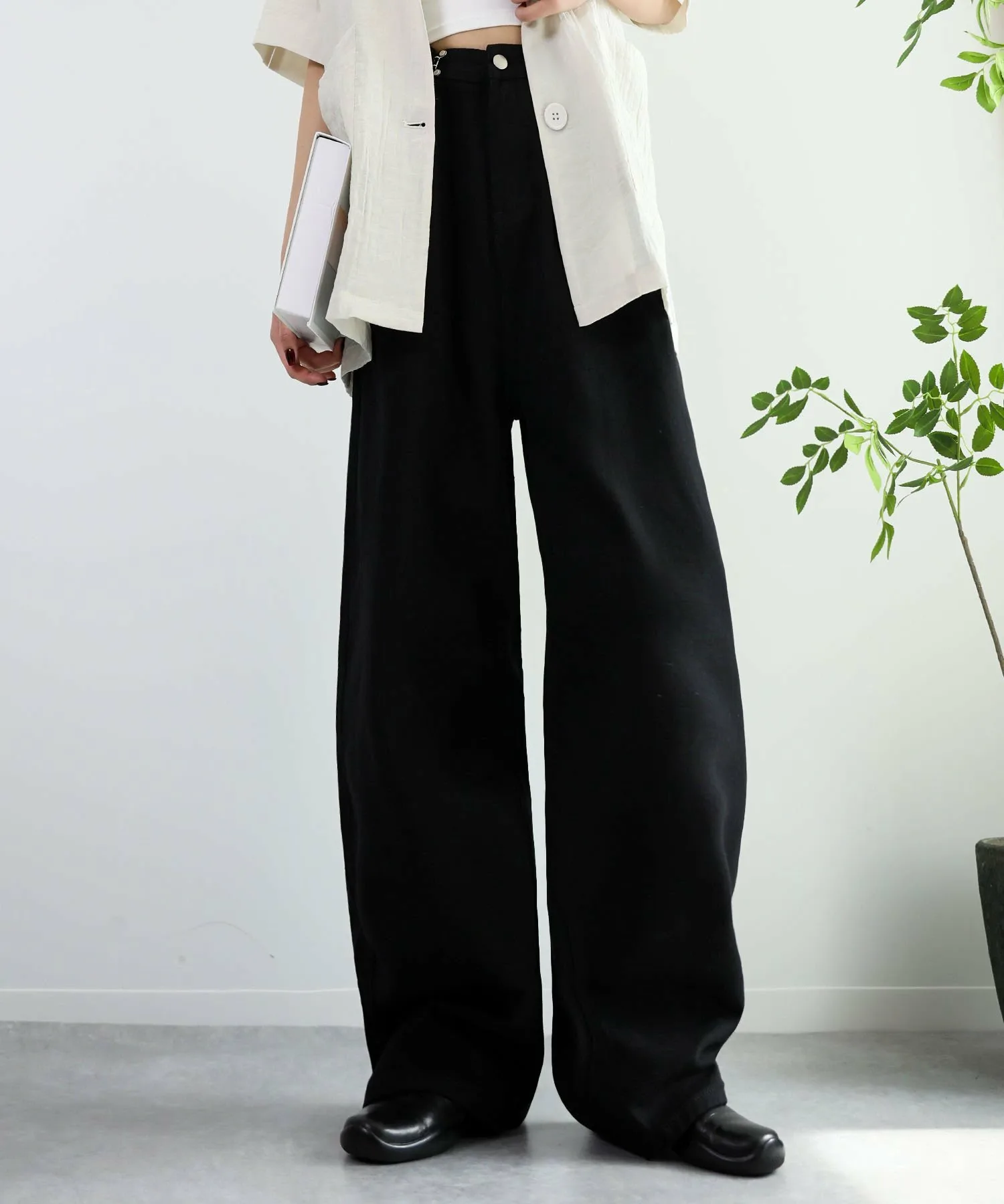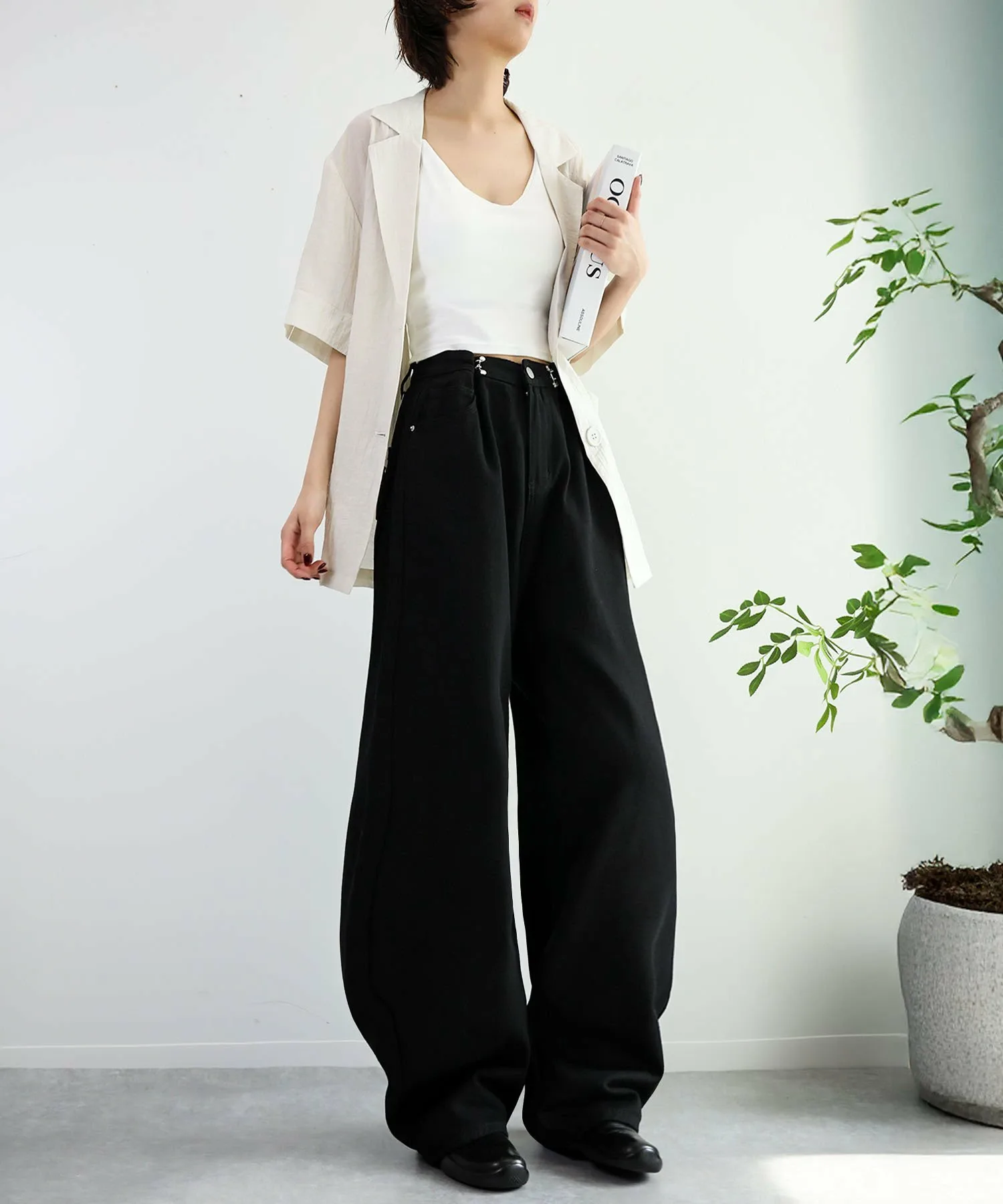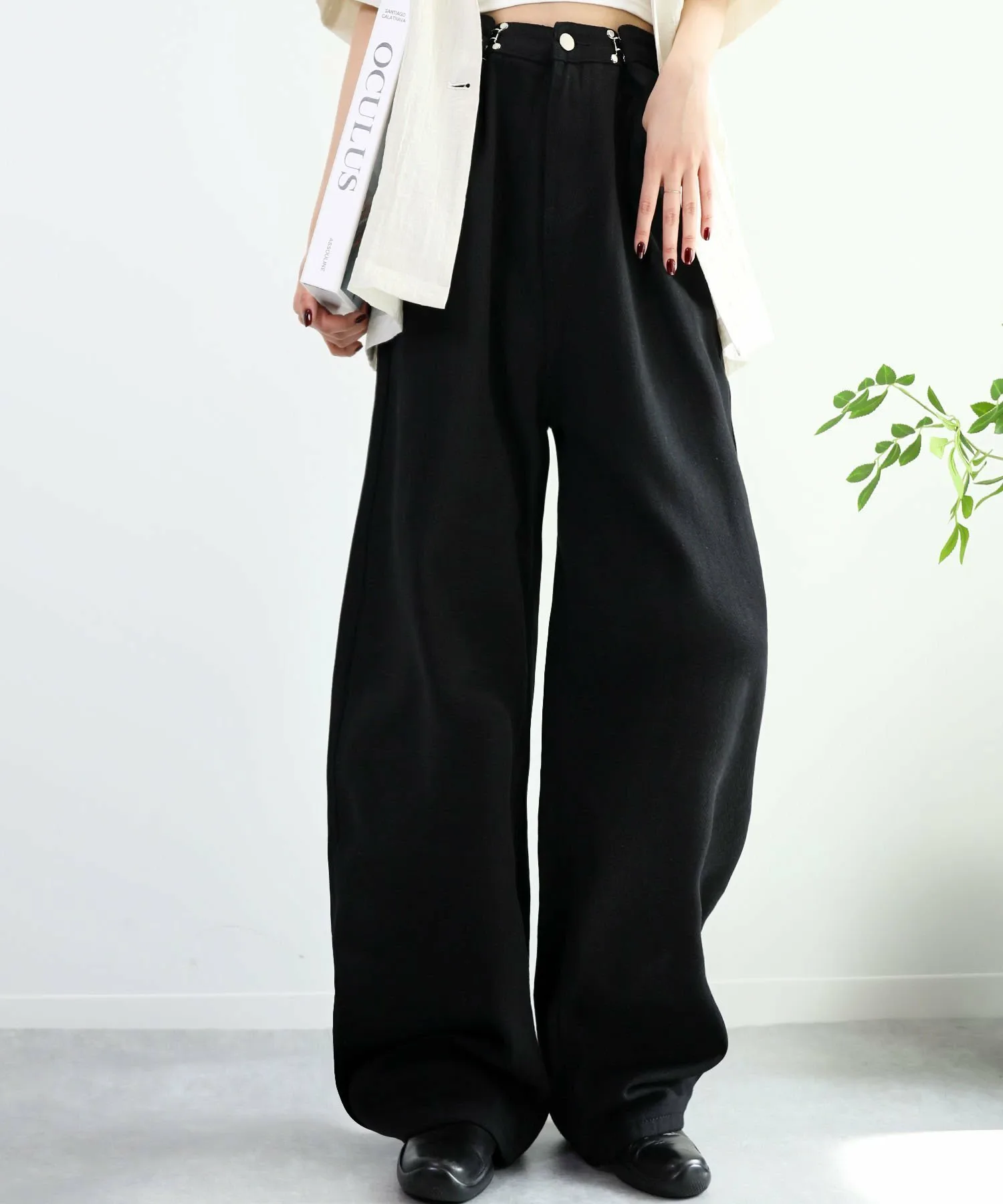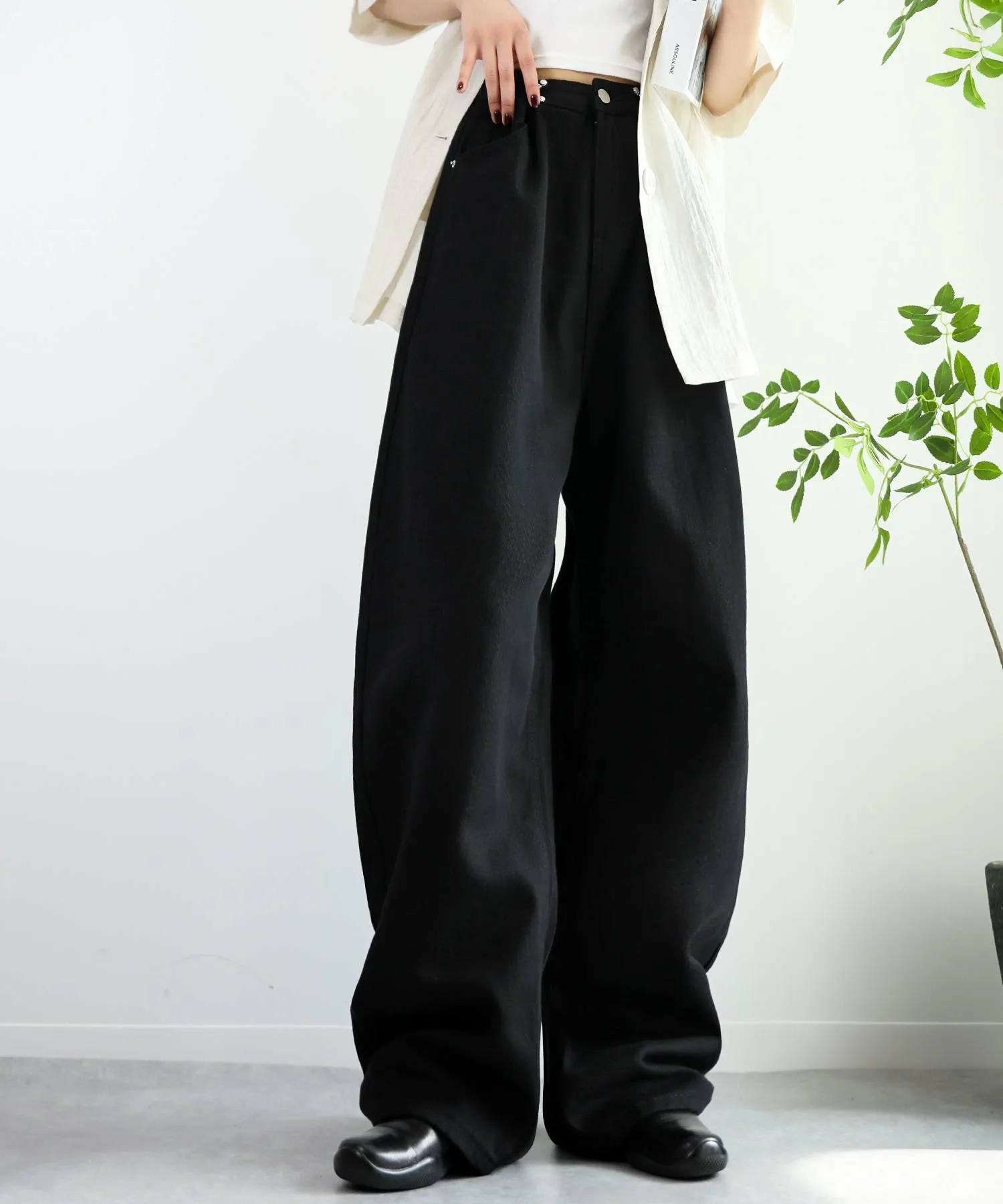 Эти стильные брюки имеют широкий силуэт, который привлекает внимание.