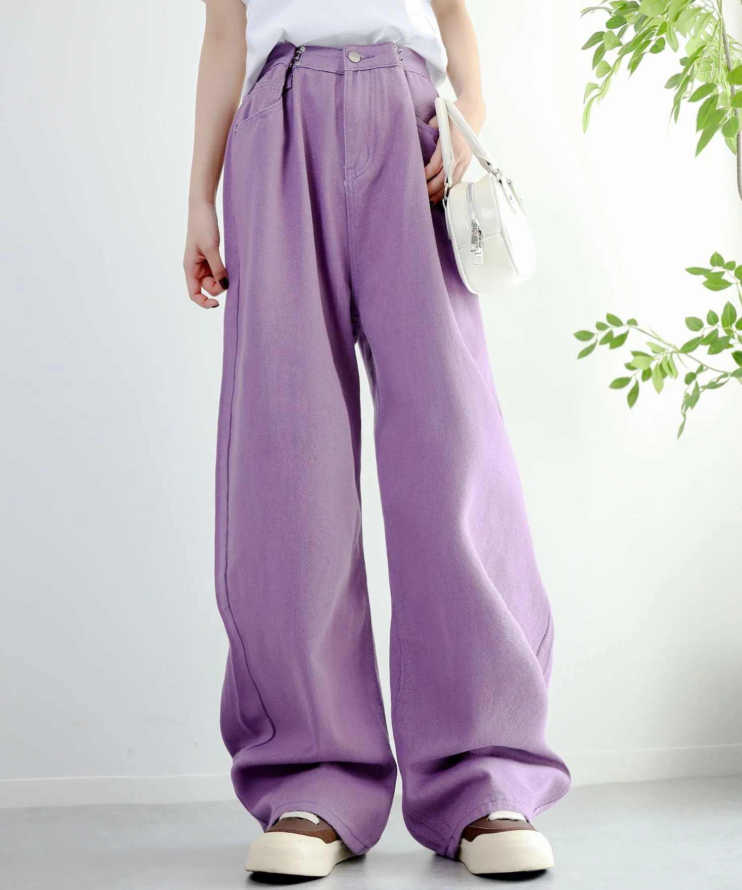 Эти стильные брюки имеют широкий силуэт, который привлекает внимание.
