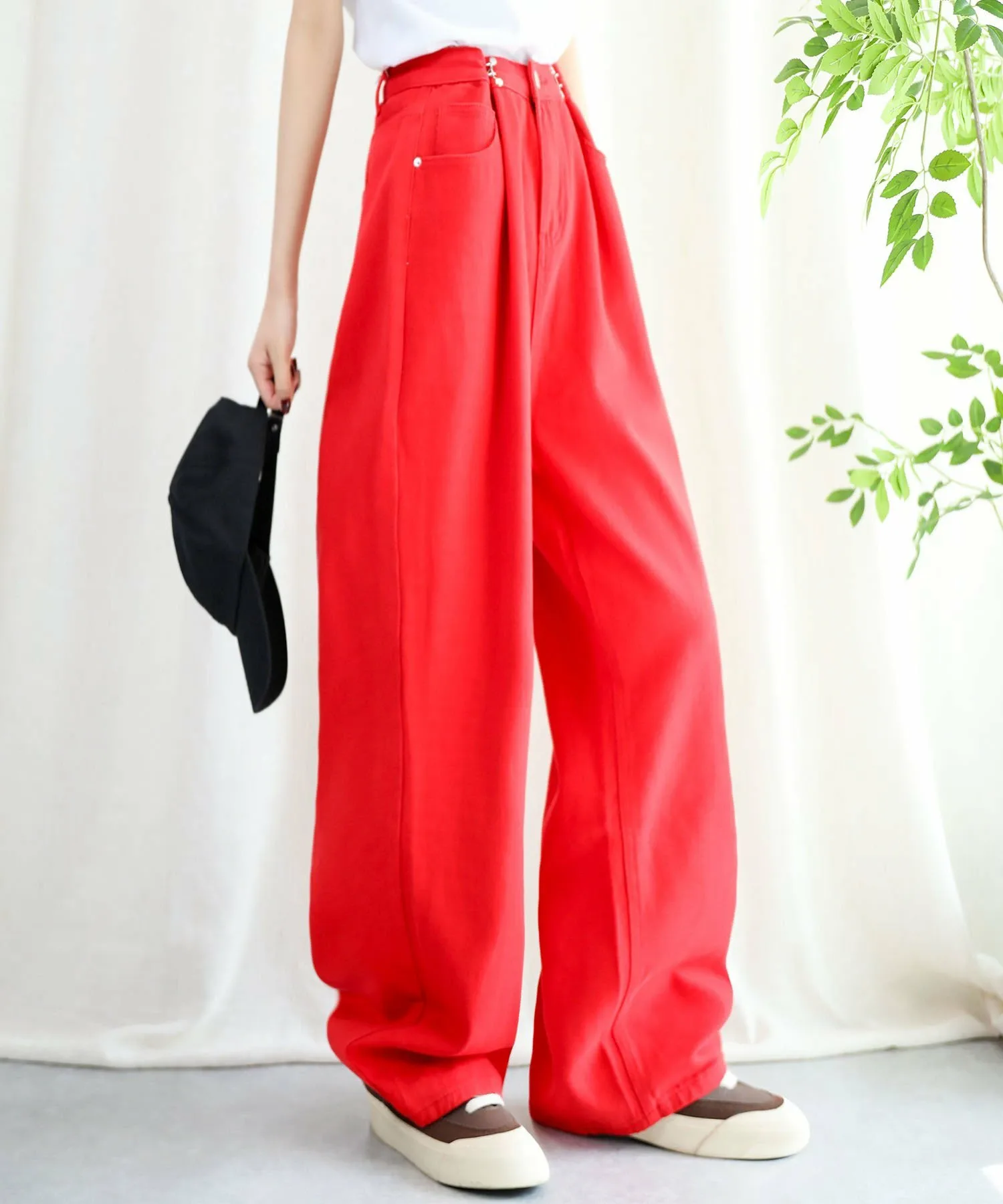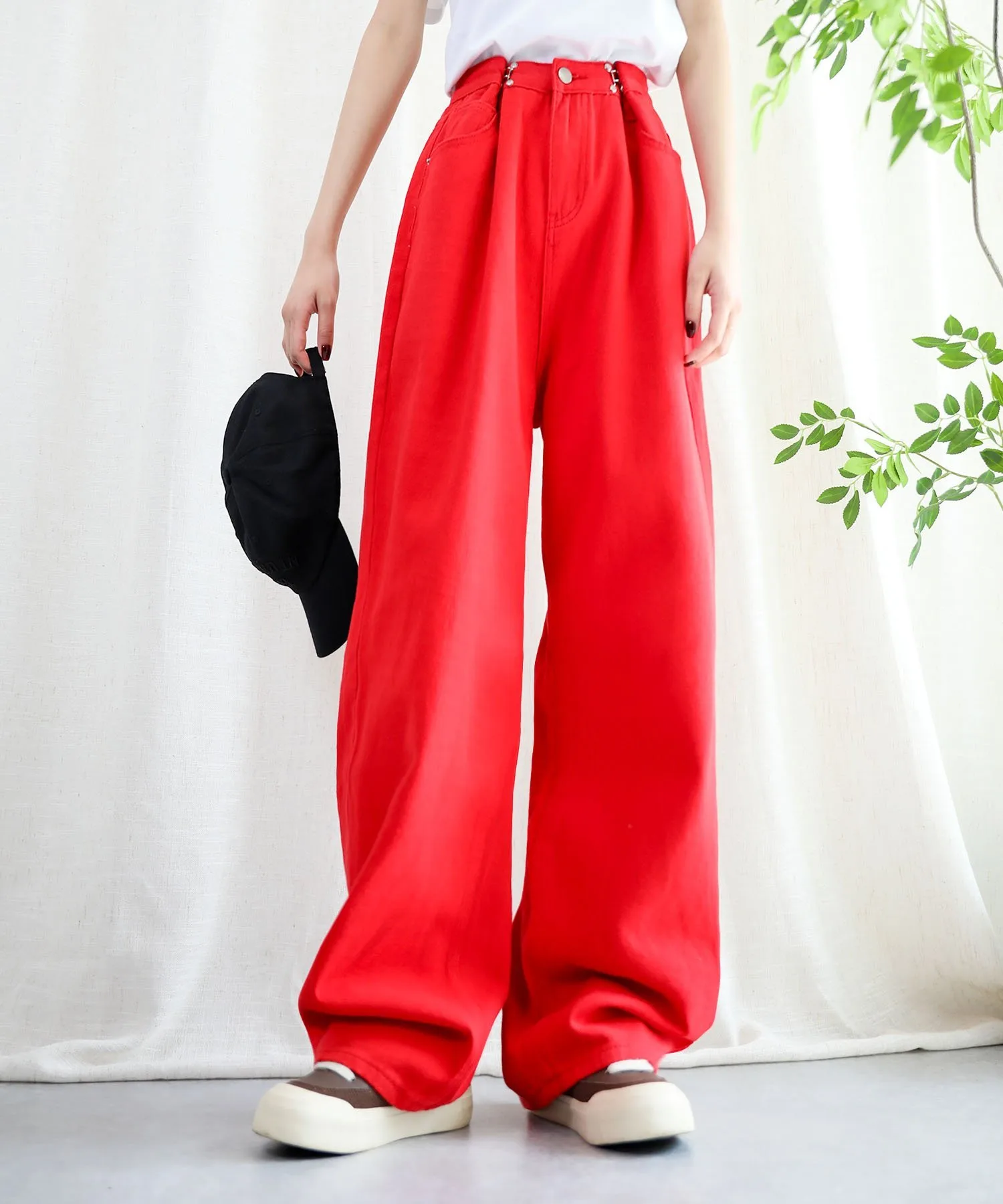 Эти стильные брюки имеют широкий силуэт, который привлекает внимание.