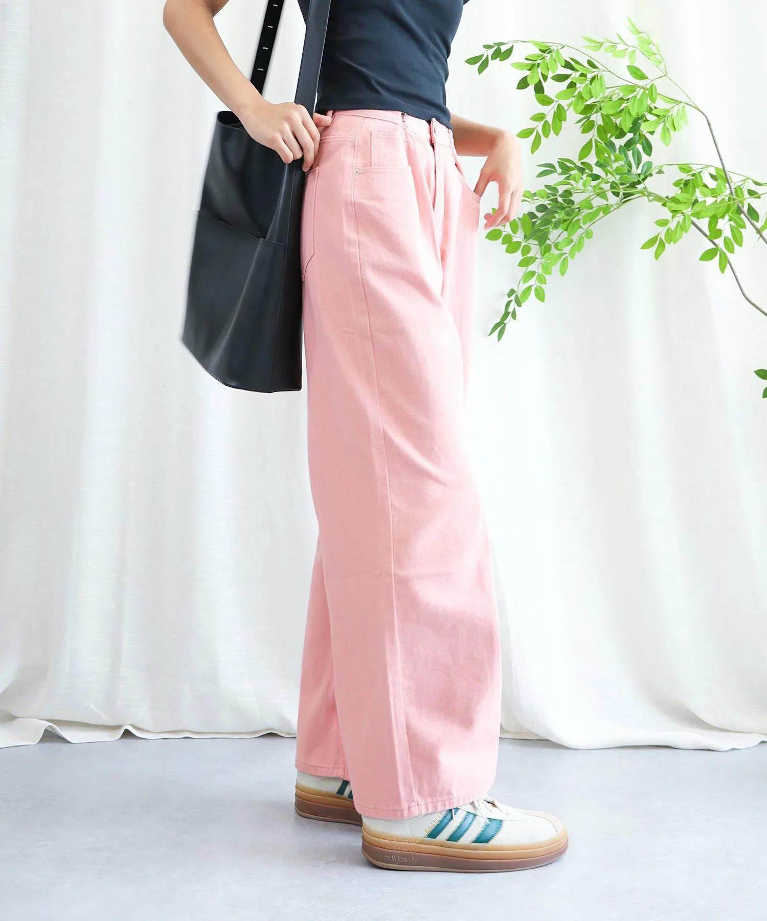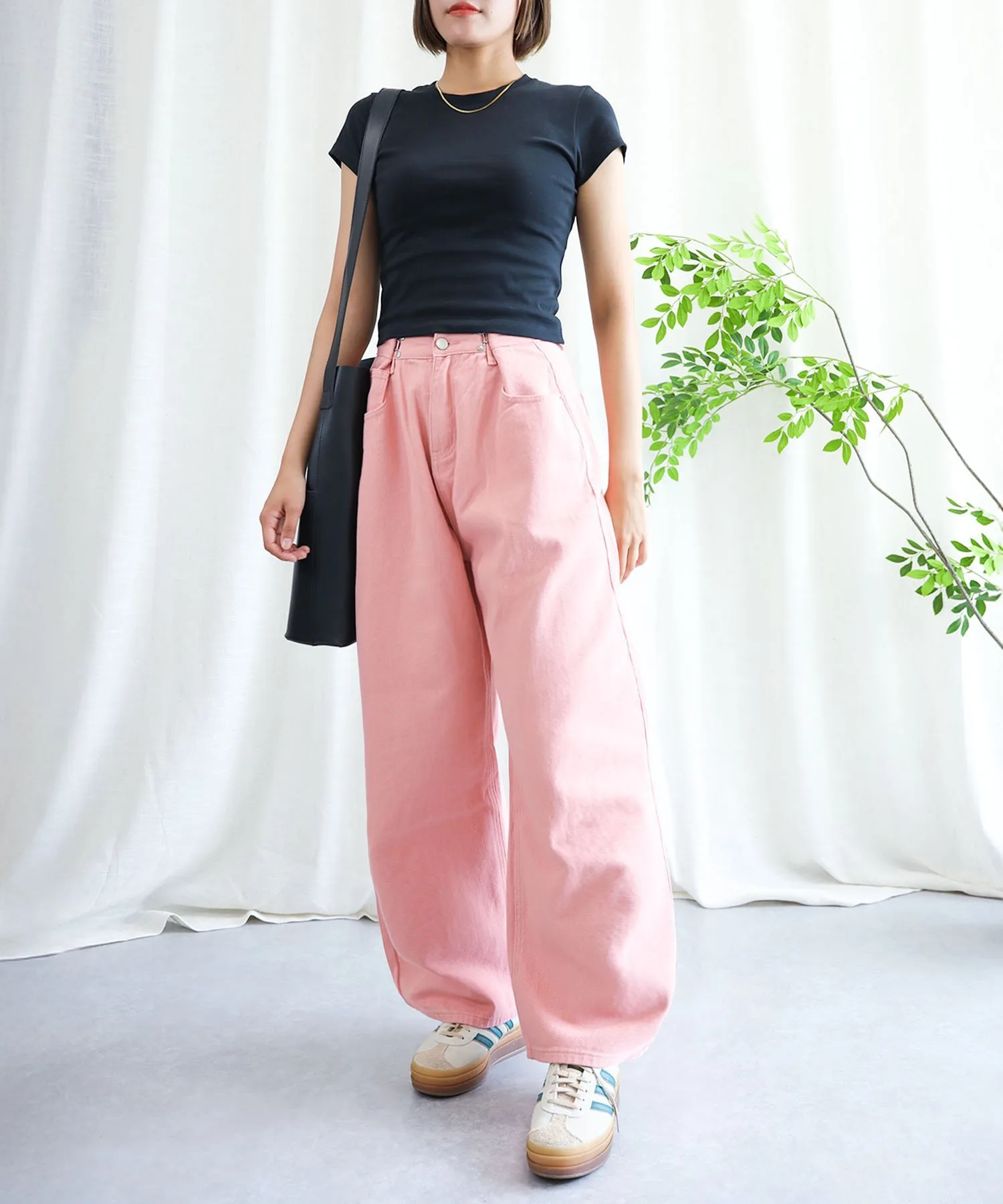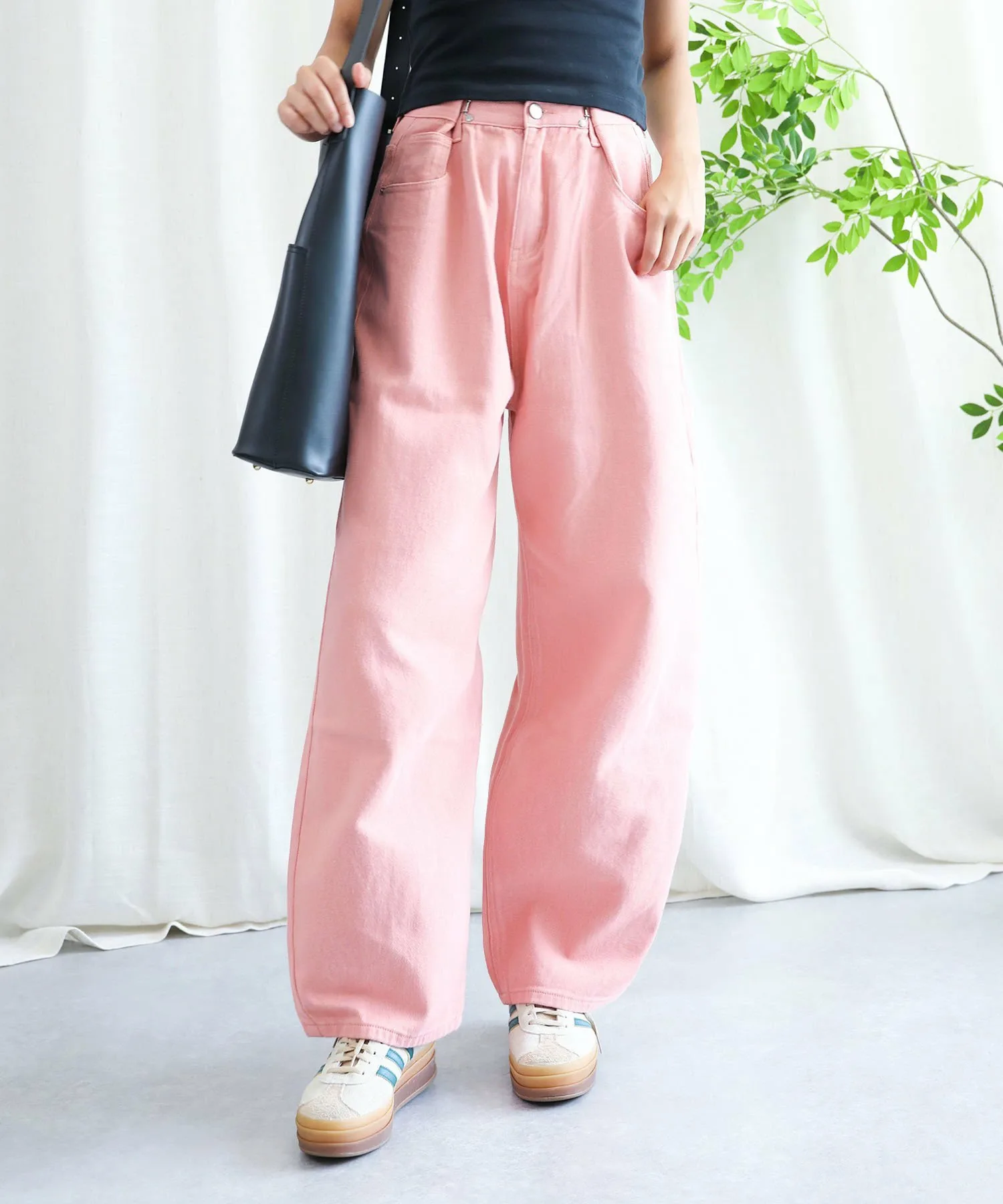 Эти стильные брюки имеют широкий силуэт, который привлекает внимание.