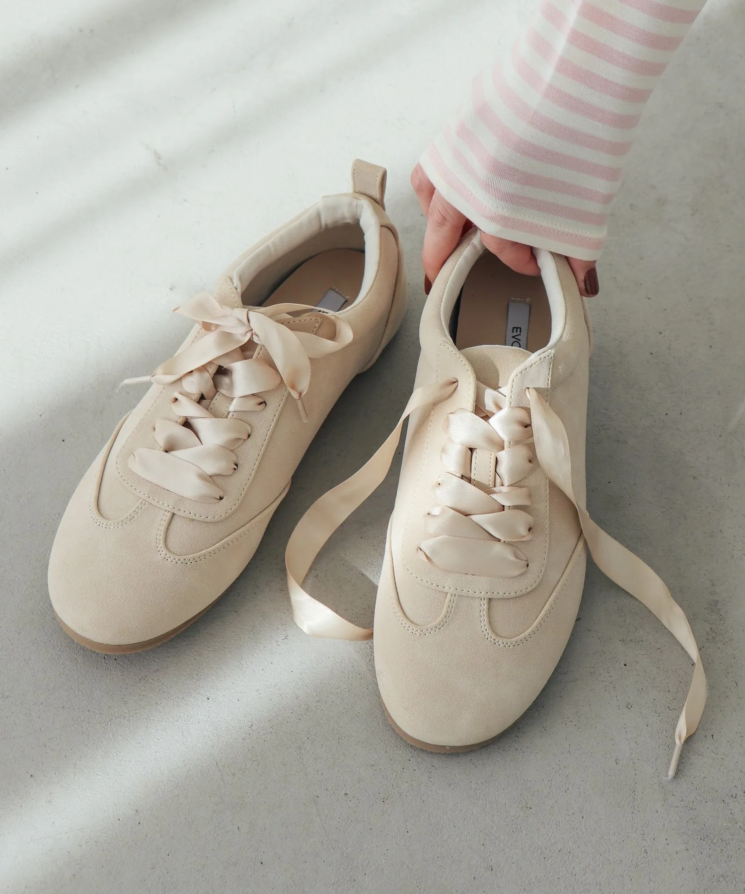 Такие мягкие и легкие! Эти кроссовки настолько легкие и удобные, что вы захотите носить их где угодно. Удобная шнуровка подходит к любому наряду, расширяя диапазон создаваемых вами образов. В сочетании с плоской подошвой они придают компактный и аккуратный вид, добавляя нотку элегантности. Носите их с длинными брюками для более свободного образа или с мини-юбкой и носками для милого образа.