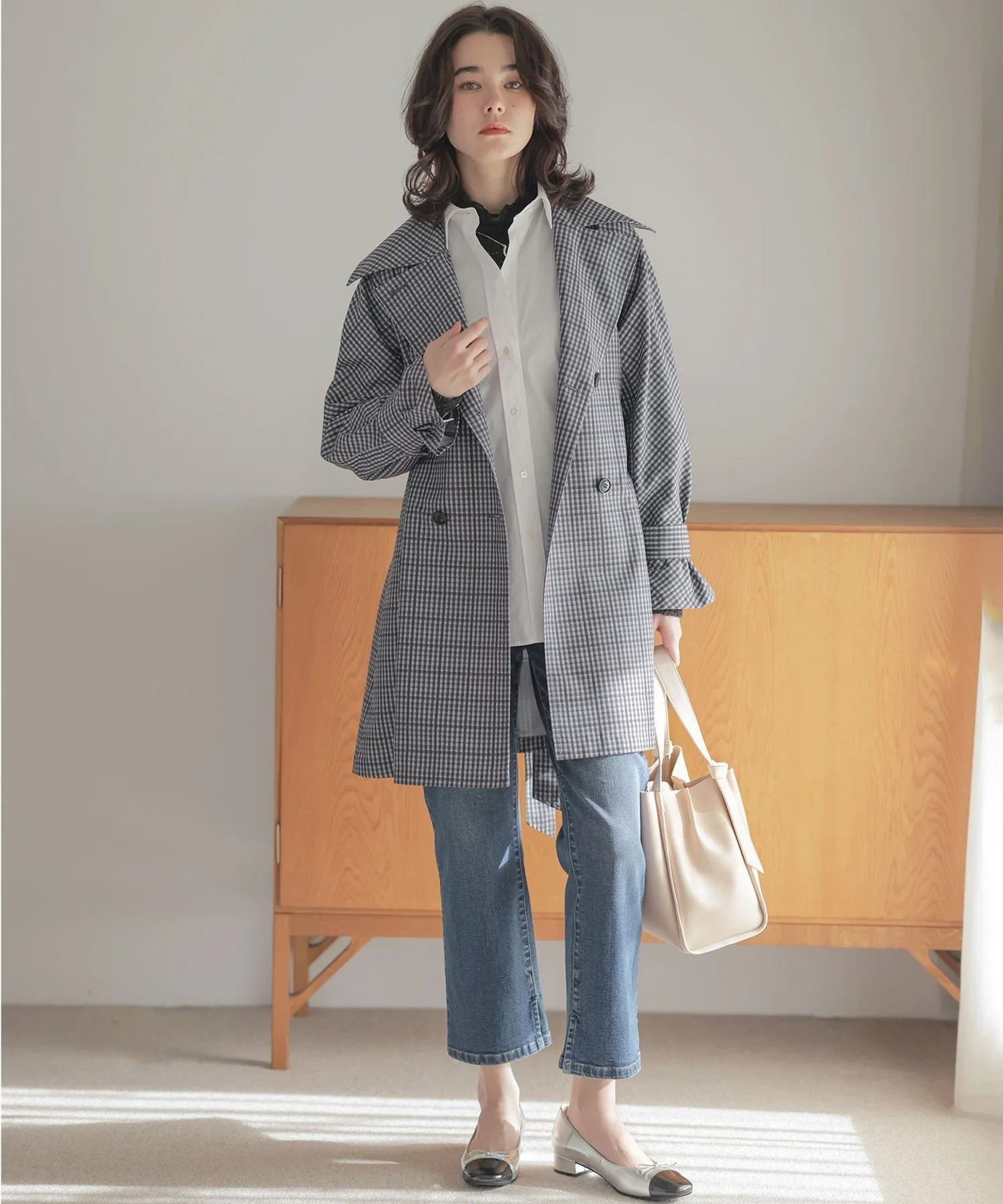 [Комментарии сотрудников]▼Рост: 158 см | Размер M (обычно носит размер M) Расстегните и носите как куртку, или наденьте поверх трикотажа в прохладную погоду. ◎ Добавление этой вещи в ваш гардероб обязательно расширит ваши возможности для создания стильных образов! Это обязательная вещь этой весны.