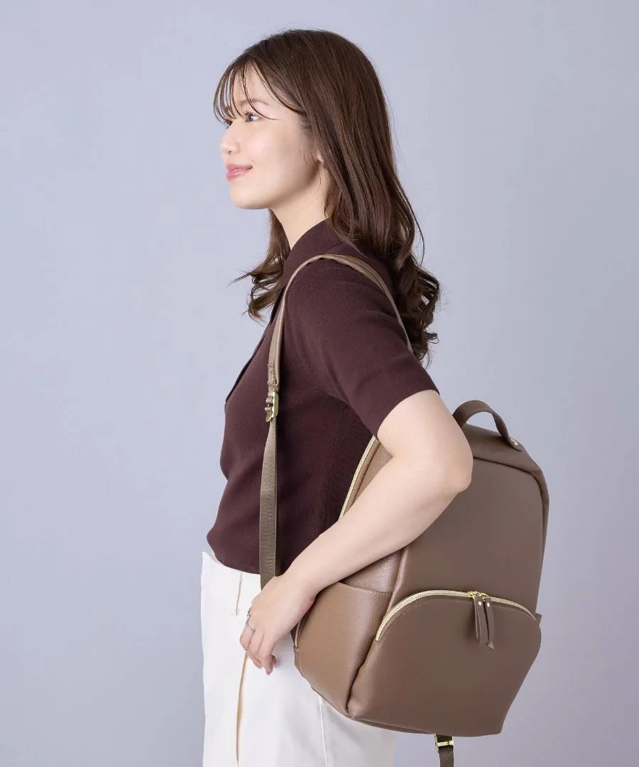 Надежный спутник для ваших повседневных выходов! В серию "Tasukarukkaban" добавлен новый рюкзак! Изготовленный из зернистой синтетической кожи, он менее заметен на царапинах и пятнах, что облегчает уход за ним. Его роскошный внешний вид контрастирует с удивительно легкой конструкцией, что делает его "Tasukaru". Простая, но высококачественная текстура и дизайн позволяют легко сочетать его с различными нарядами.