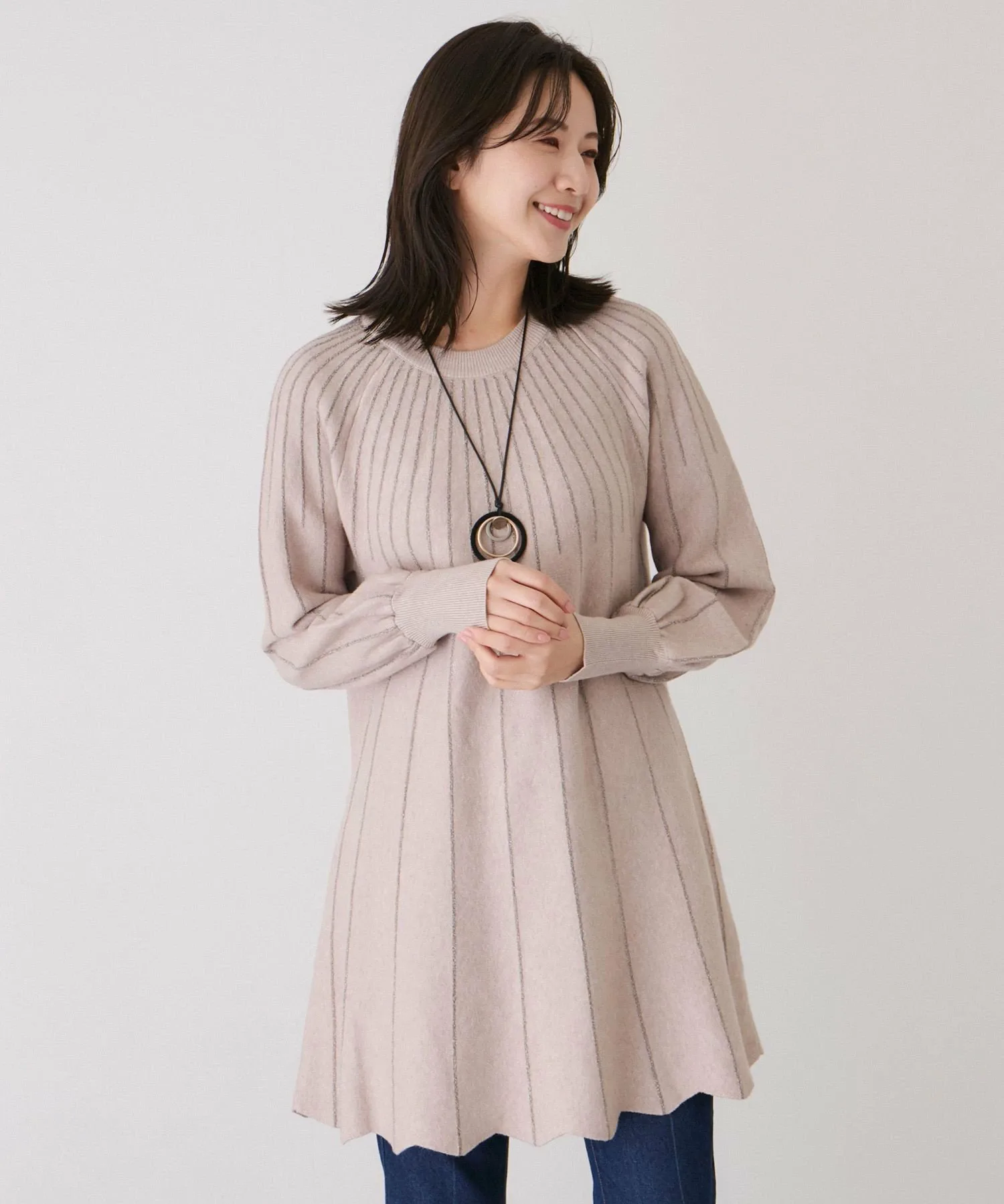 - Длина туники идеально подходит для сочетания с узкими брюками.