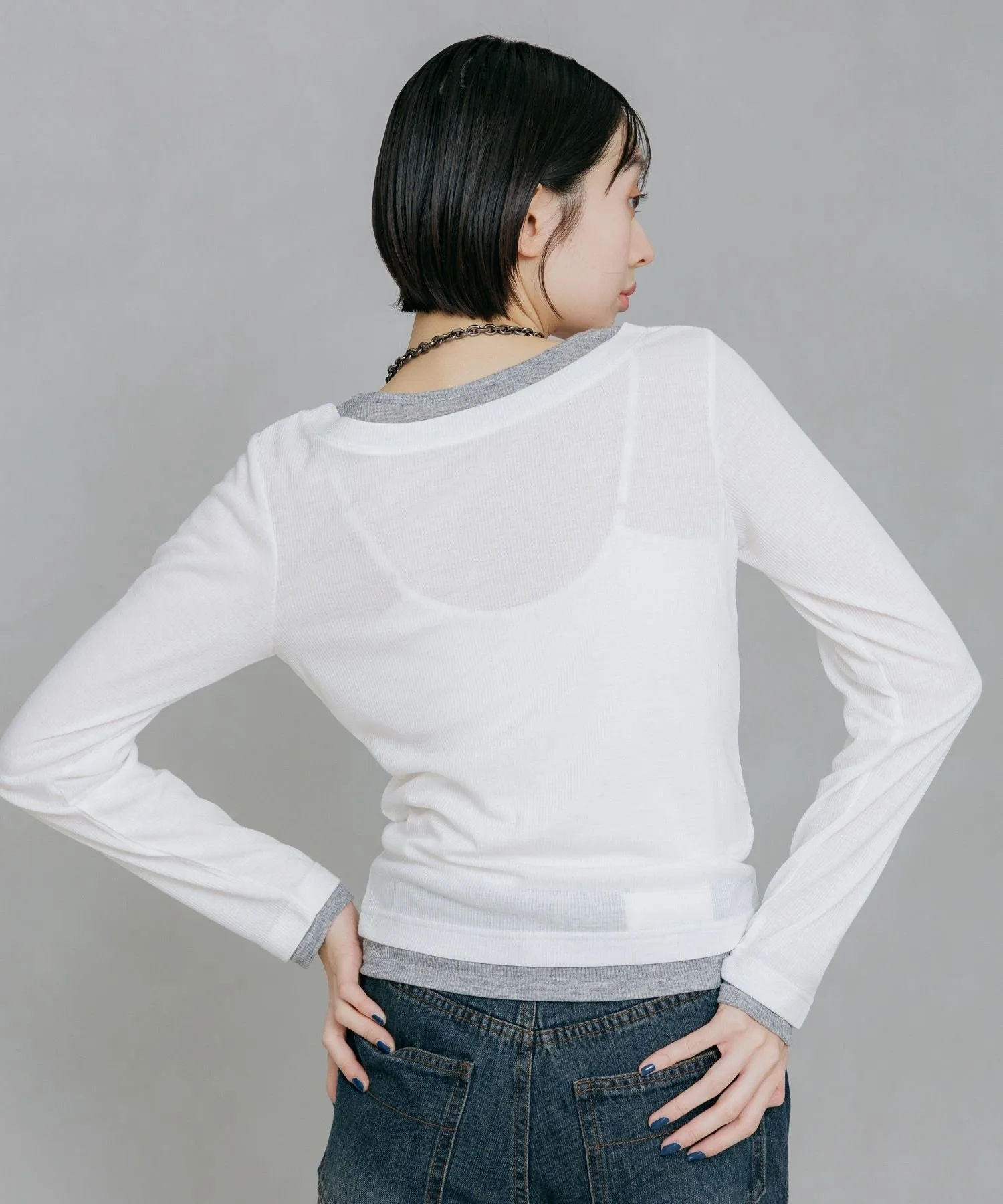 Клетчатая ткань с имитацией многослойности, создающая впечатление, будто две футболки с длинными рукавами надеты друг на друга.