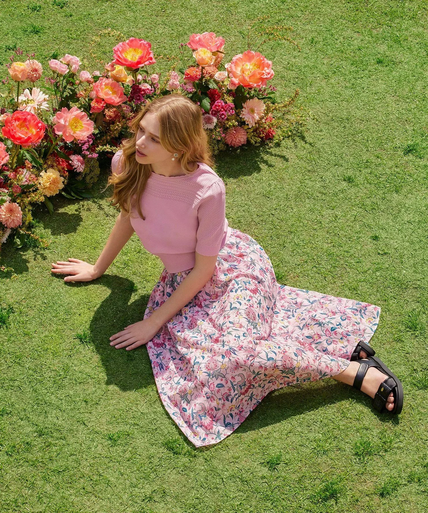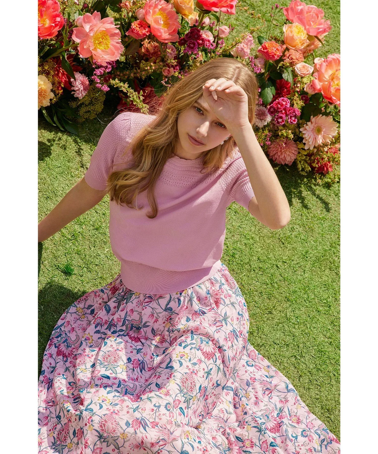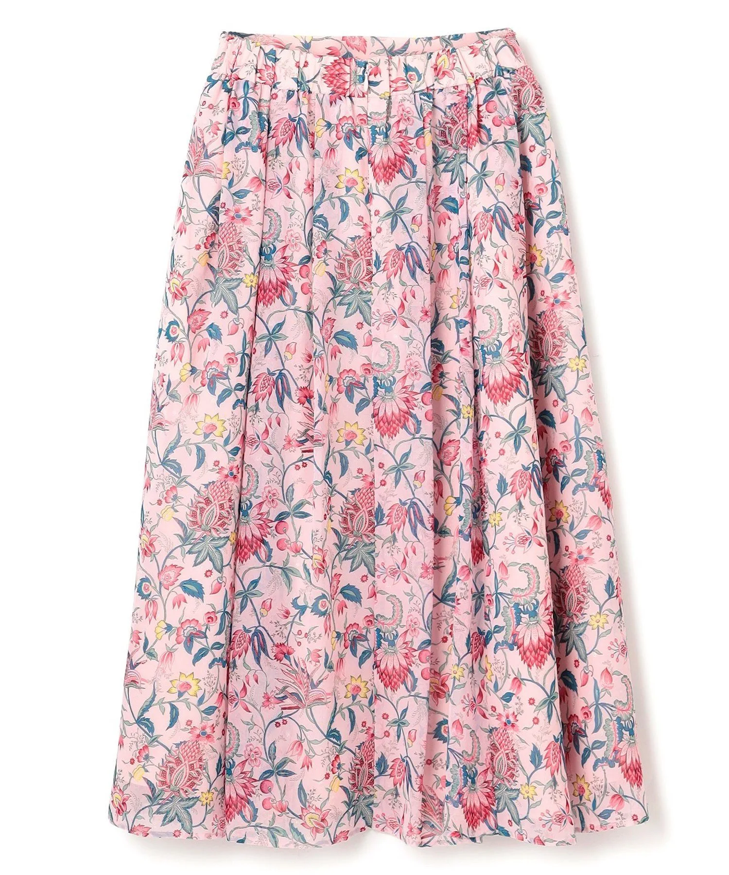 Эта юбка с принтом выполнена в романтическом стиле «зачарованного сада». Принт нанесен на выразительный шифон, очень легкий и прохладный материал. Щедрые складки и сборки создают великолепный силуэт, который развевается при ходьбе. Эластичная резинка на талии сзади обеспечивает свободу движений и удобную, плотную посадку. В жаркое время года сочетайте ее с топом, сшитым по фигуре, а в прохладное — с трикотажем, что делает ее подходящей для ношения круглый год.
