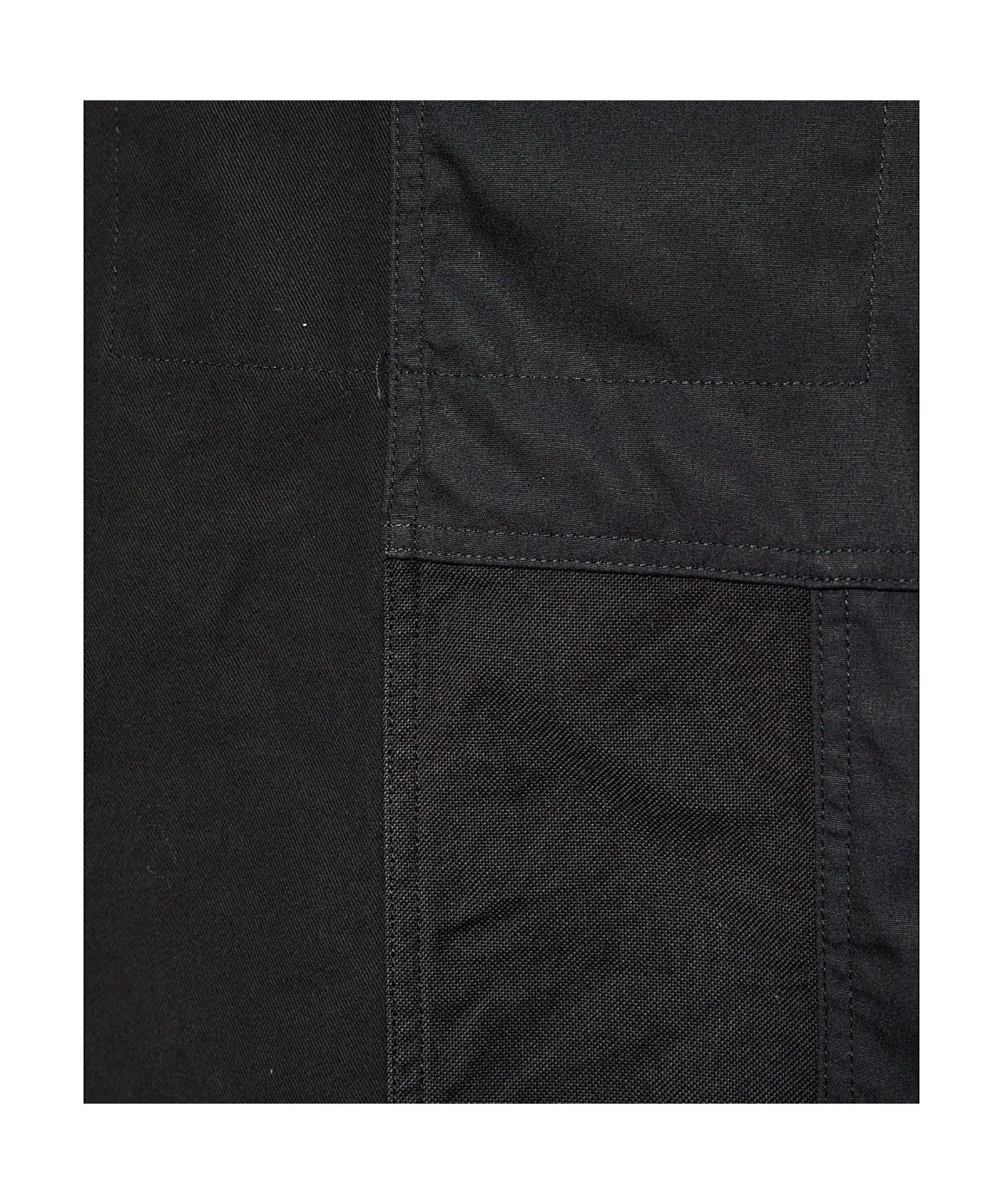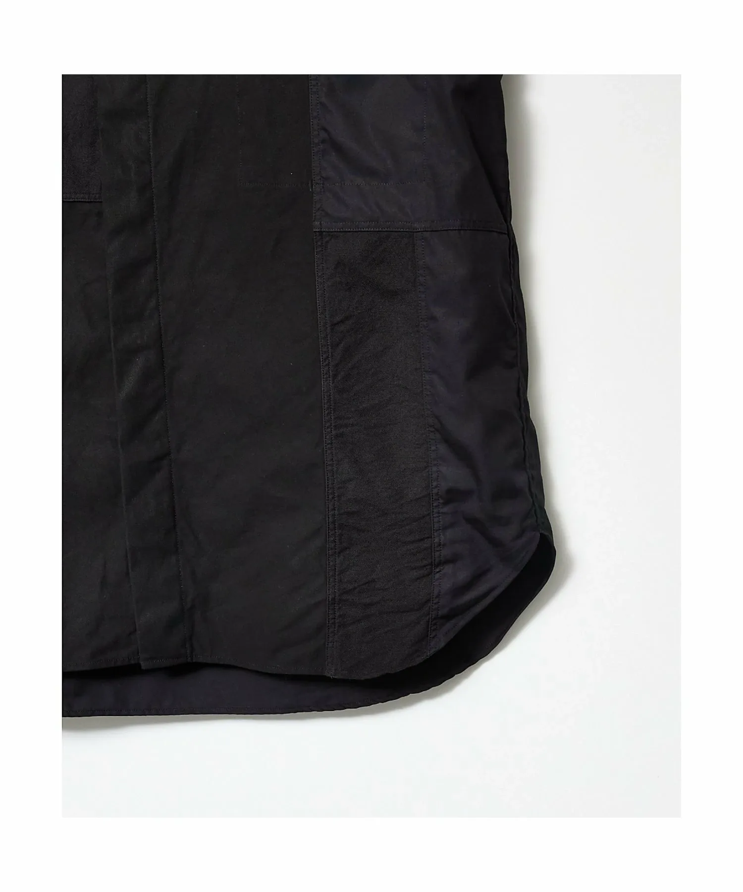 Лоскутный дизайн с использованием различных хлопчатобумажных материалов. Плоский шов позволяет красиво продемонстрировать изнанку. Места сшивания материалов выполнены узким плоским швом, а перед производством изделие подвергается стирке для создания трехмерного эффекта.
