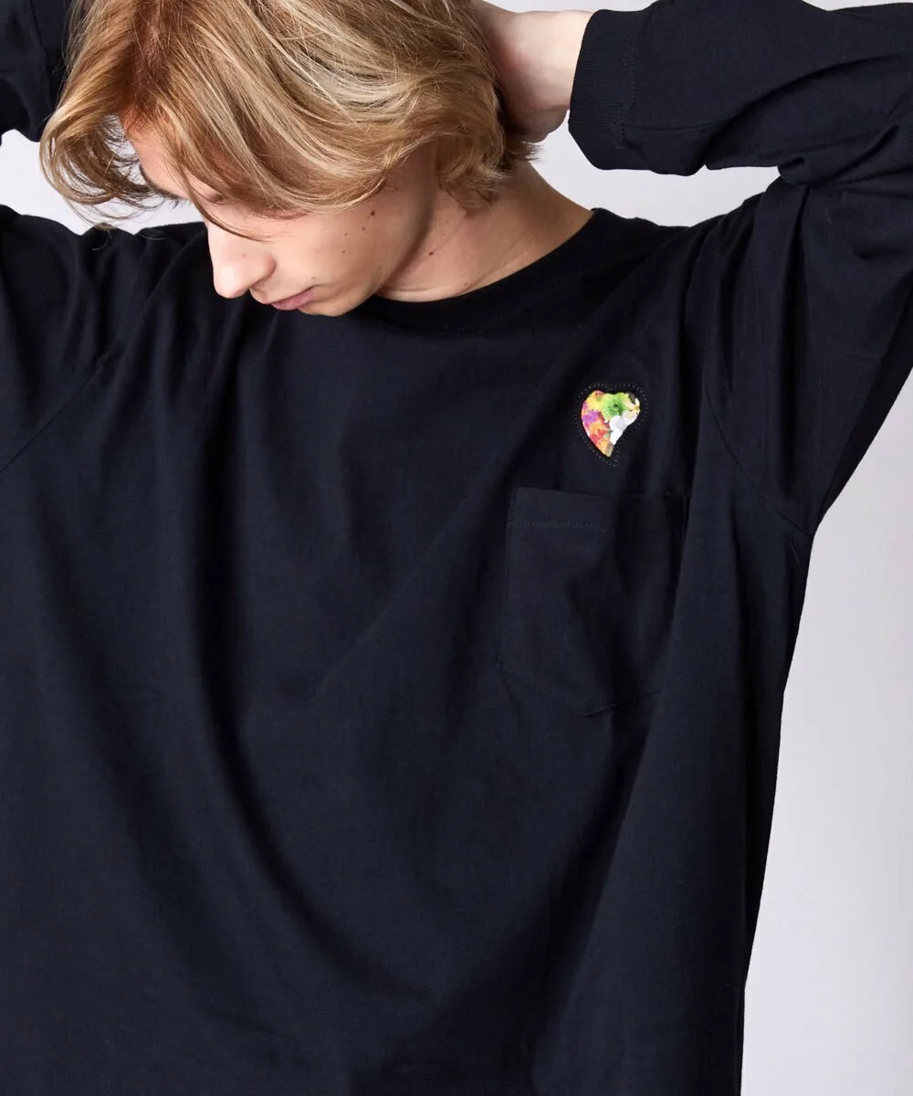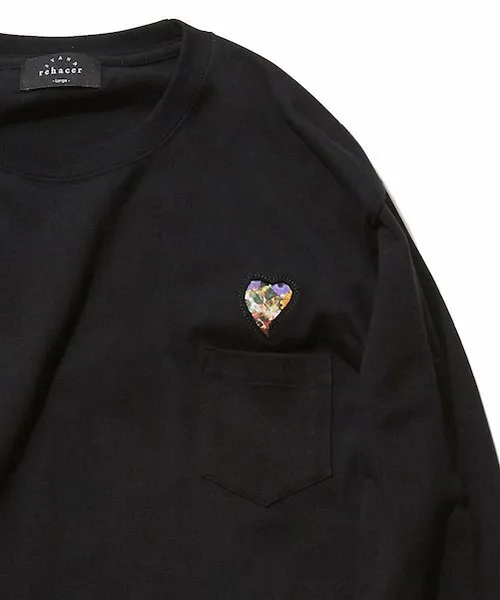 На левой стороне груди с помощью специальной техники вырезан мотив сердца, а сзади вставлен оригинальный материал, что добавляет характерную для бренда изюминку.