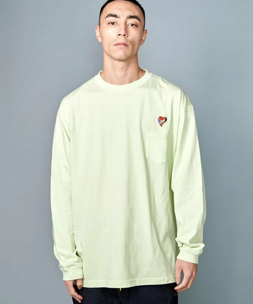 На левой стороне груди с помощью специальной техники вырезан мотив сердца, а сзади вставлен оригинальный материал, что добавляет характерную для бренда изюминку.