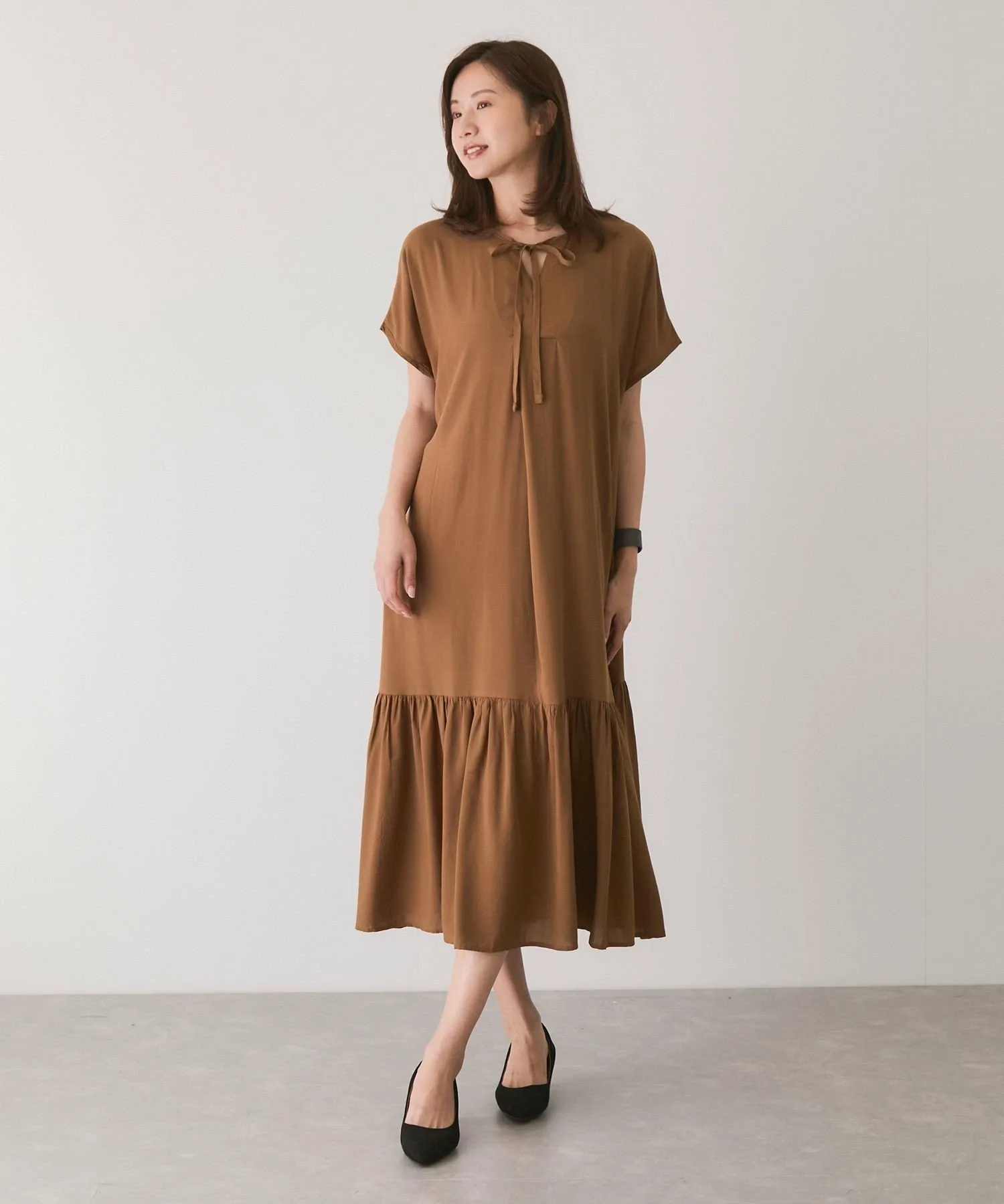Женственный глубокий V-образный вырез и завязки не только визуально удлиняют шею, но и создают элегантный образ.