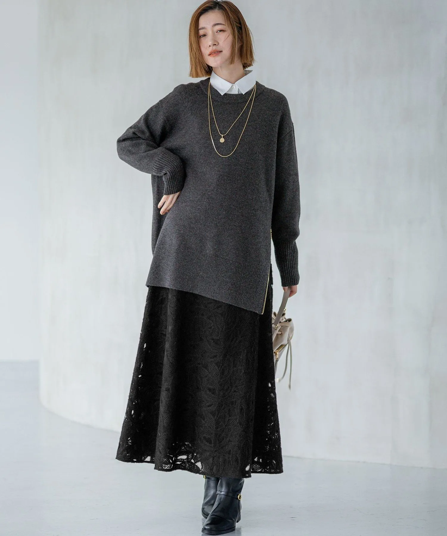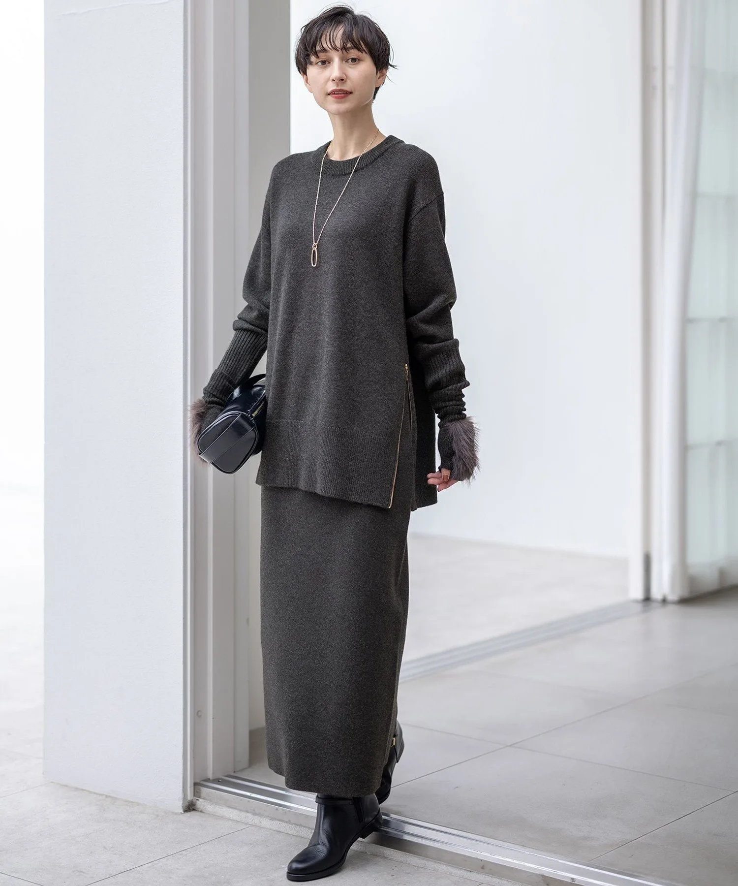 В нашу популярную серию из кашемировой смеси добавлена новая туника-пуловер. Свободный силуэт обеспечивает достаточное покрытие бедер, гарантируя комфортную посадку, которую оценят зрелые женщины. Сочетая роскошное тепло с расслабленным кроем, эта вещь идеально подходит для повседневной носки. Боковая молния может быть открыта или закрыта, создавая различные силуэты и предоставляя множество возможностей для создания стильных образов. Застегните молнию для аккуратного вида или оставьте ее открытой, чтобы создать разрез для более расслабленного ощущения. Эта универсальная вещь дополняет широкий спектр нарядов, от повседневных стилей с узкими брюками или леггинсами до стильных выходов с юбкой. Доступна в четырех цветах: повседневный светло-серый (#003), изысканный серый (#004), мягкий бежевый (#033) и освежающий светло-зеленый (#062). Материал