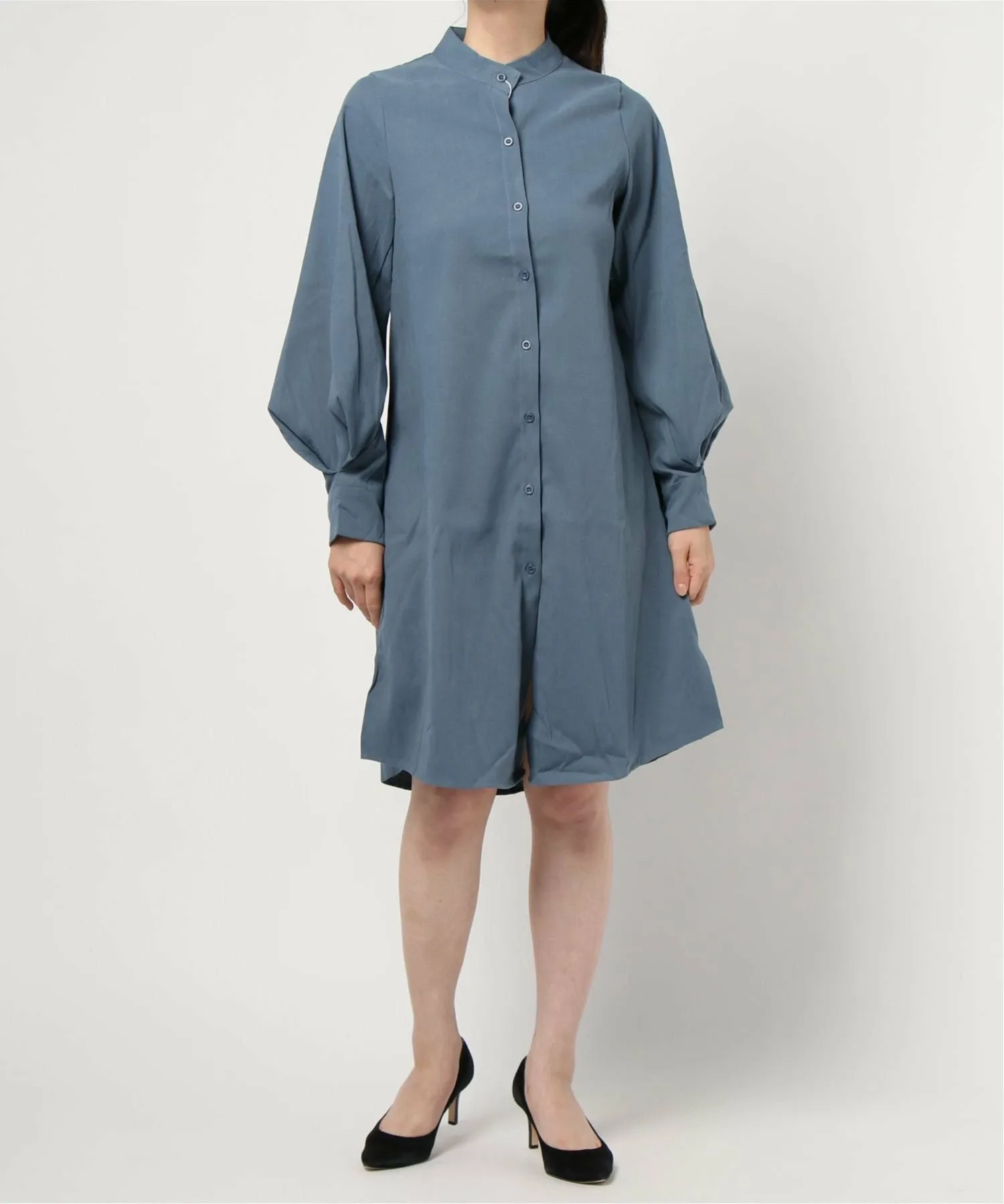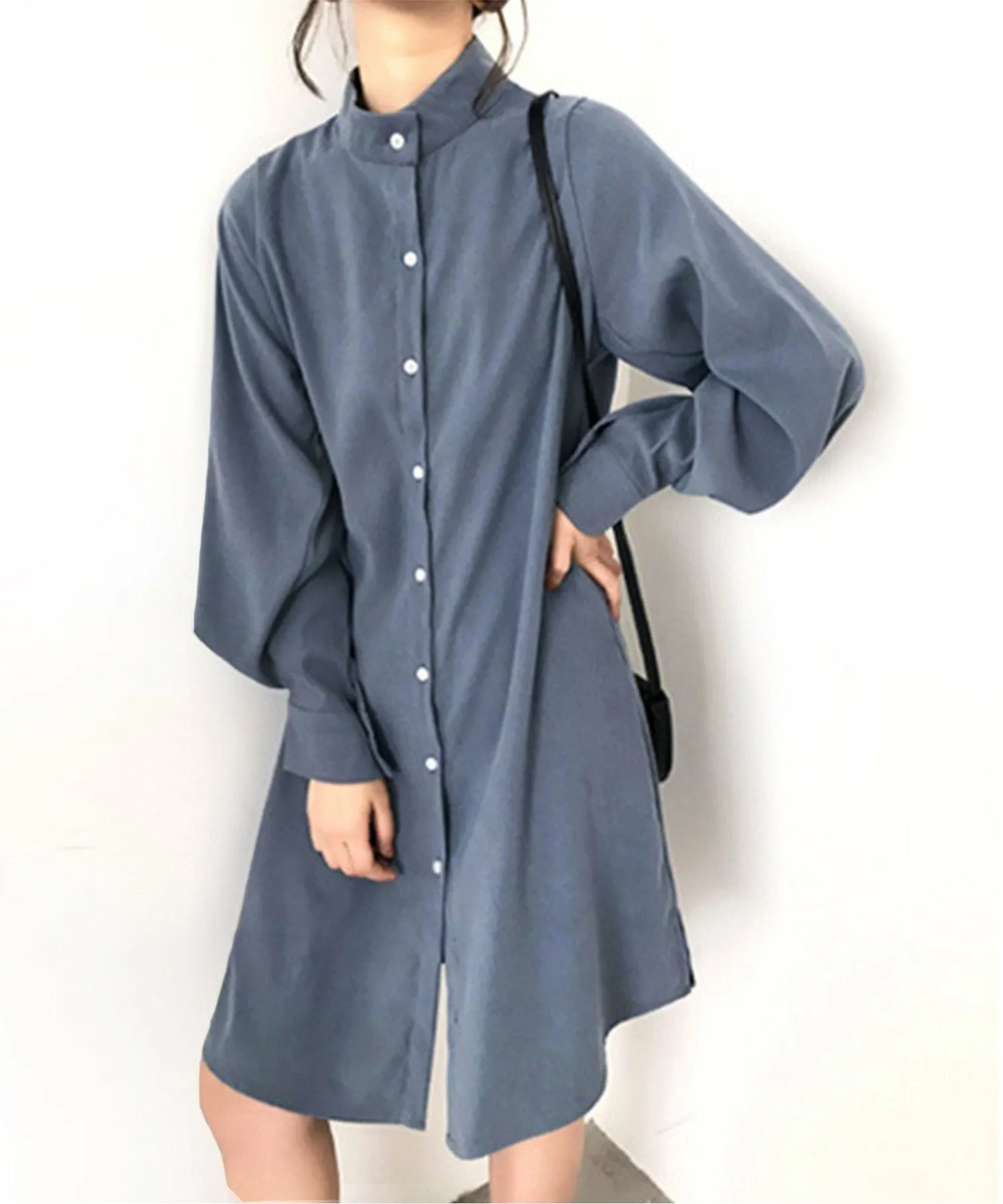 Изысканное и элегантное платье с воротником-стойкой.