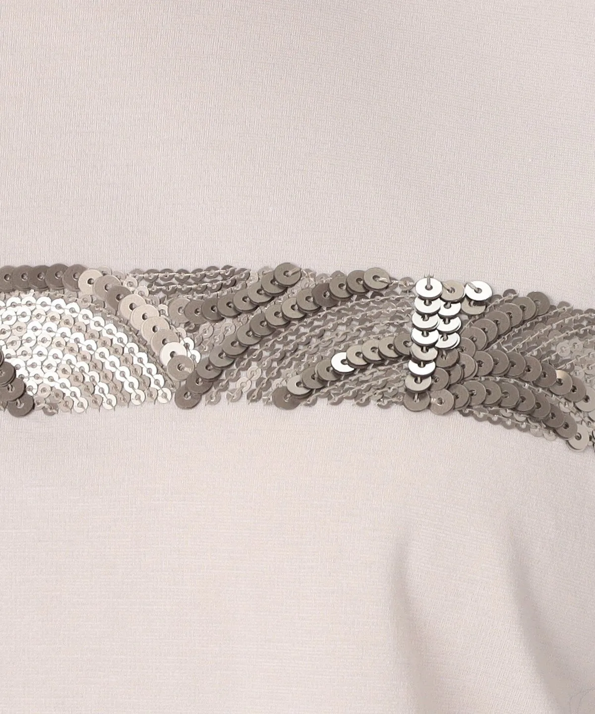 Пайетки наложены слоями, создавая трехмерный эффект, а использование больших и маленьких пайеток подчеркивает узор.