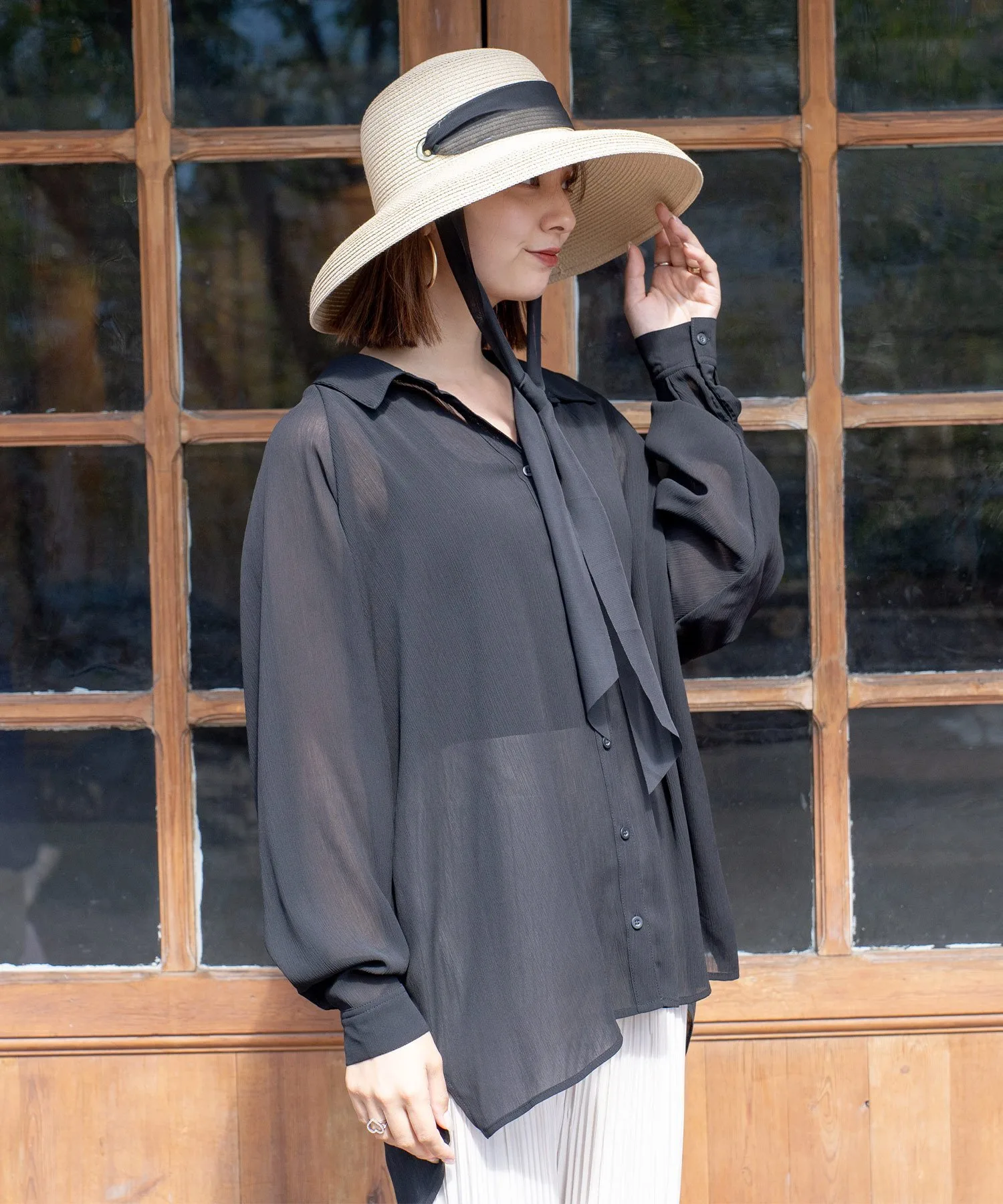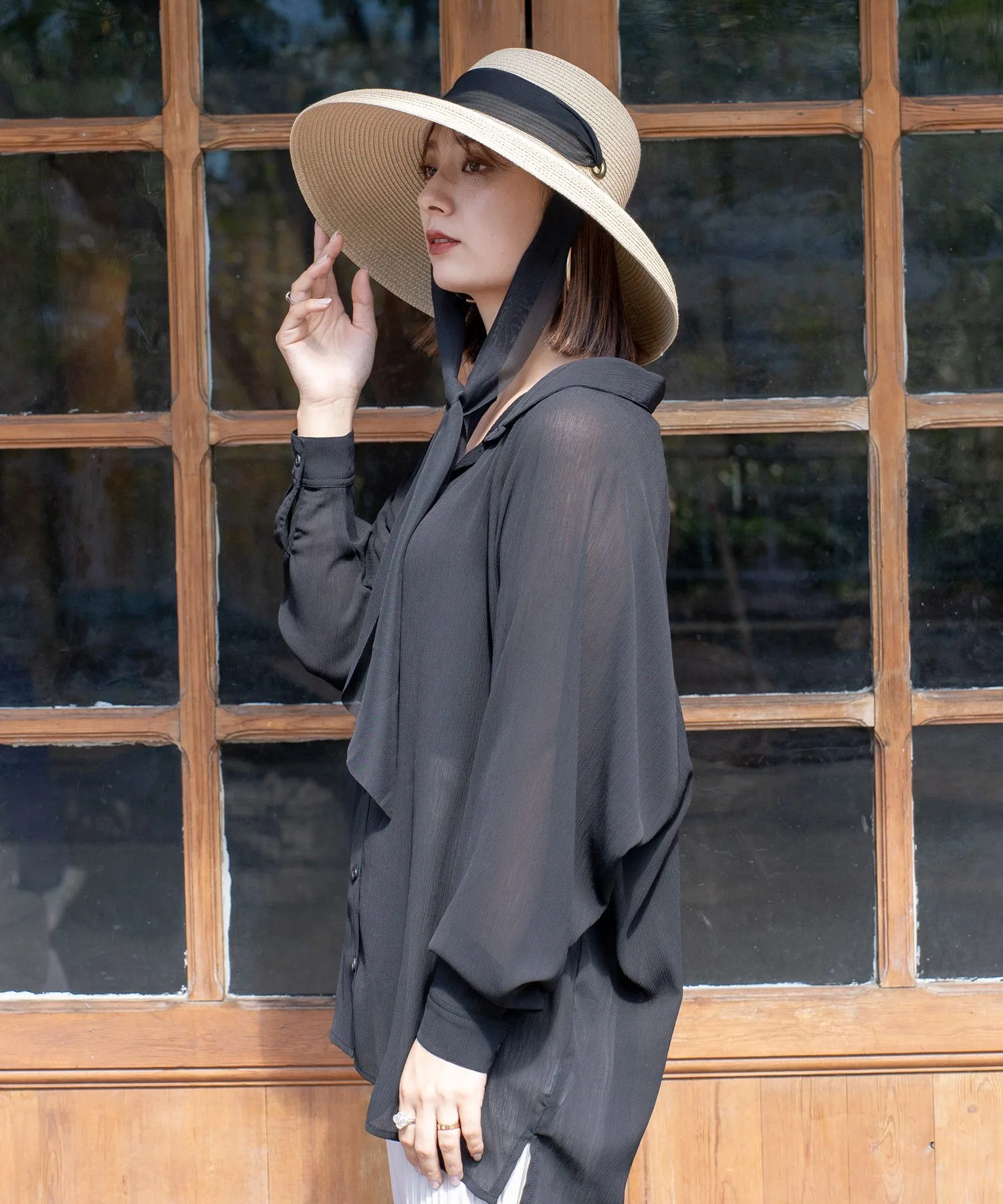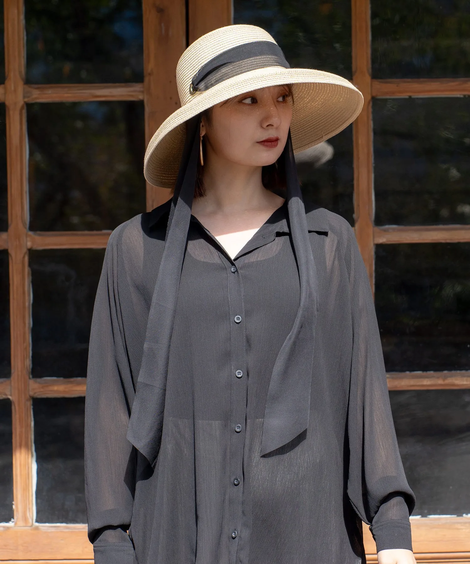 Плотная прозрачная лента делает эту шляпу модным аксессуаром.