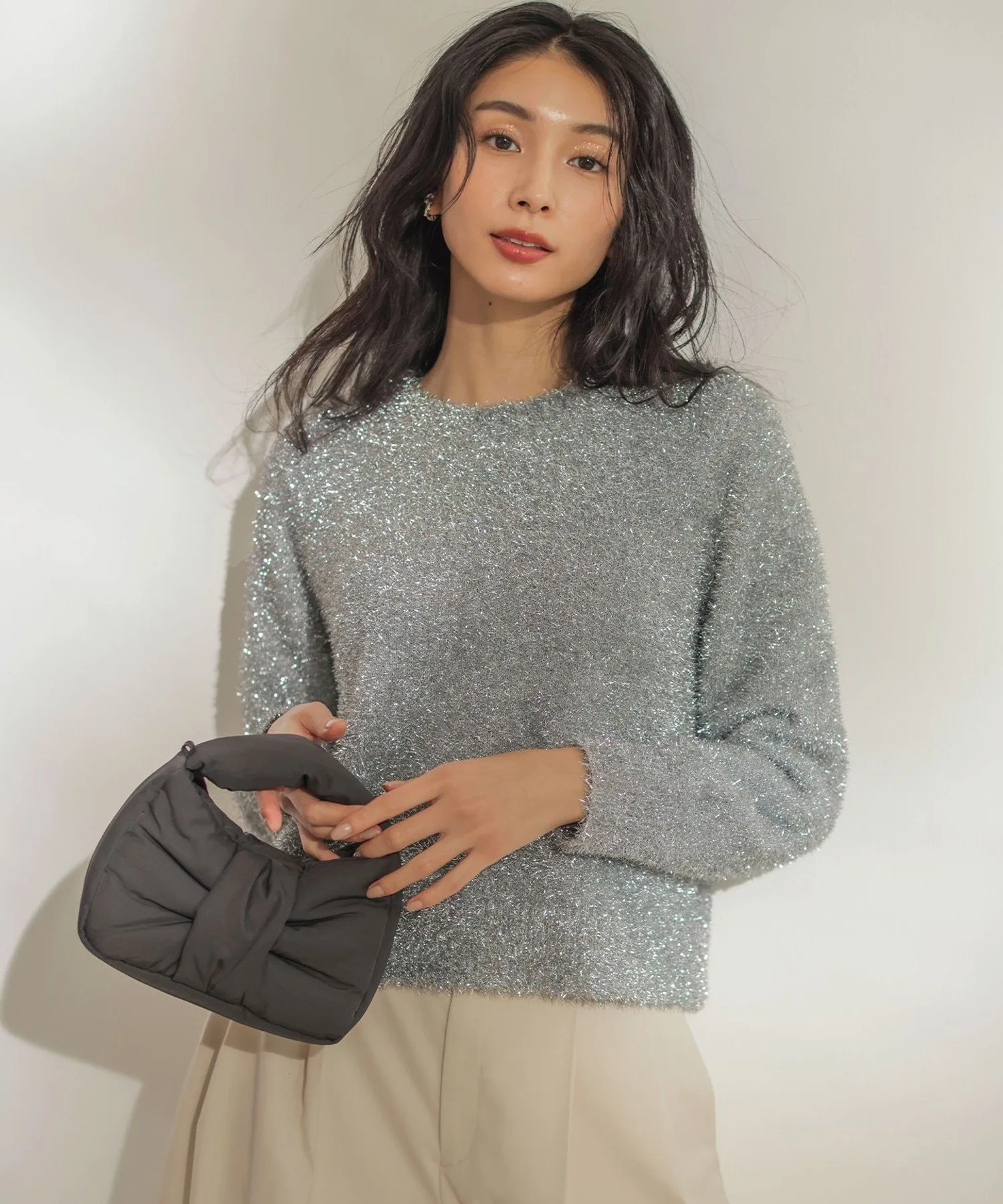 Дизайн/Материал: Изготовленная из мягкого склеенного материала, эта сумка имеет трехмерный дизайн в виде ленты. ・Ее умеренный размер делает ее универсальной, от повседневного использования до прогулок. ・Толстый мягкий ремешок удобно лежит в руке. ・Дизайн в виде ленты добавляет элегантности простым нарядам. ・Она легкая, удобная в использовании и имеет достаточно места для хранения. Это рекомендуемый товар для тех, кто хочет добавить нотку непринужденной милости в свой образ.