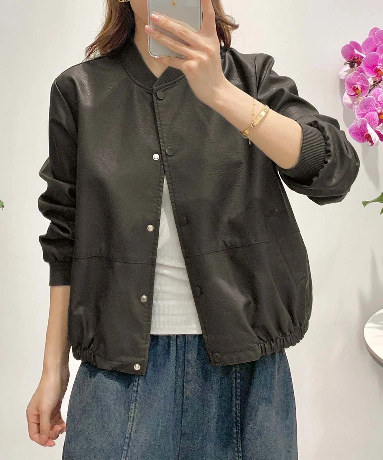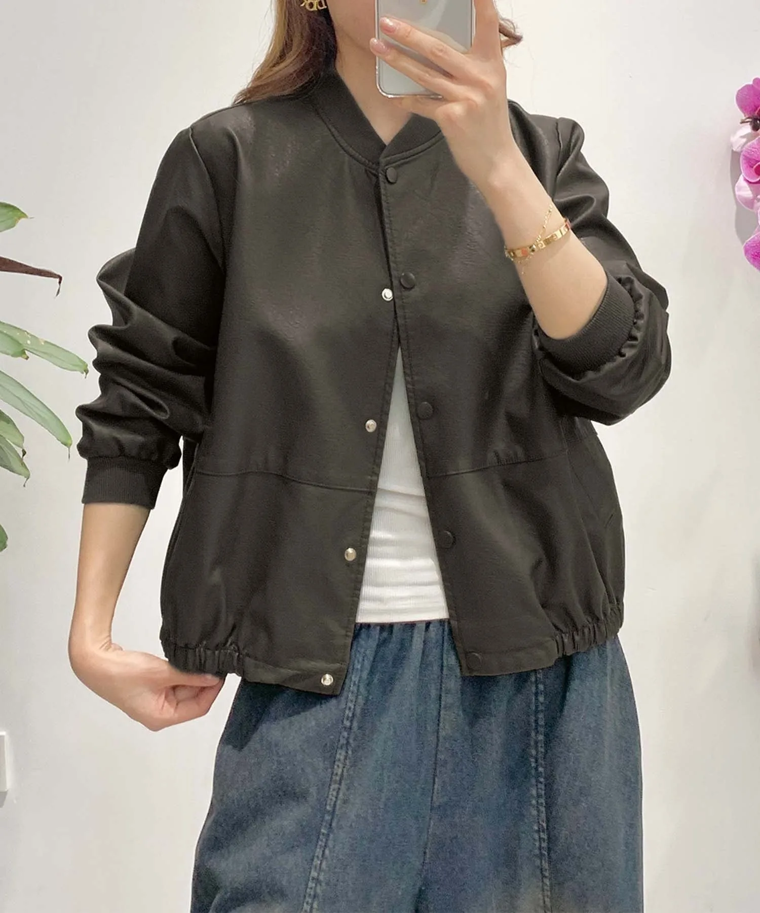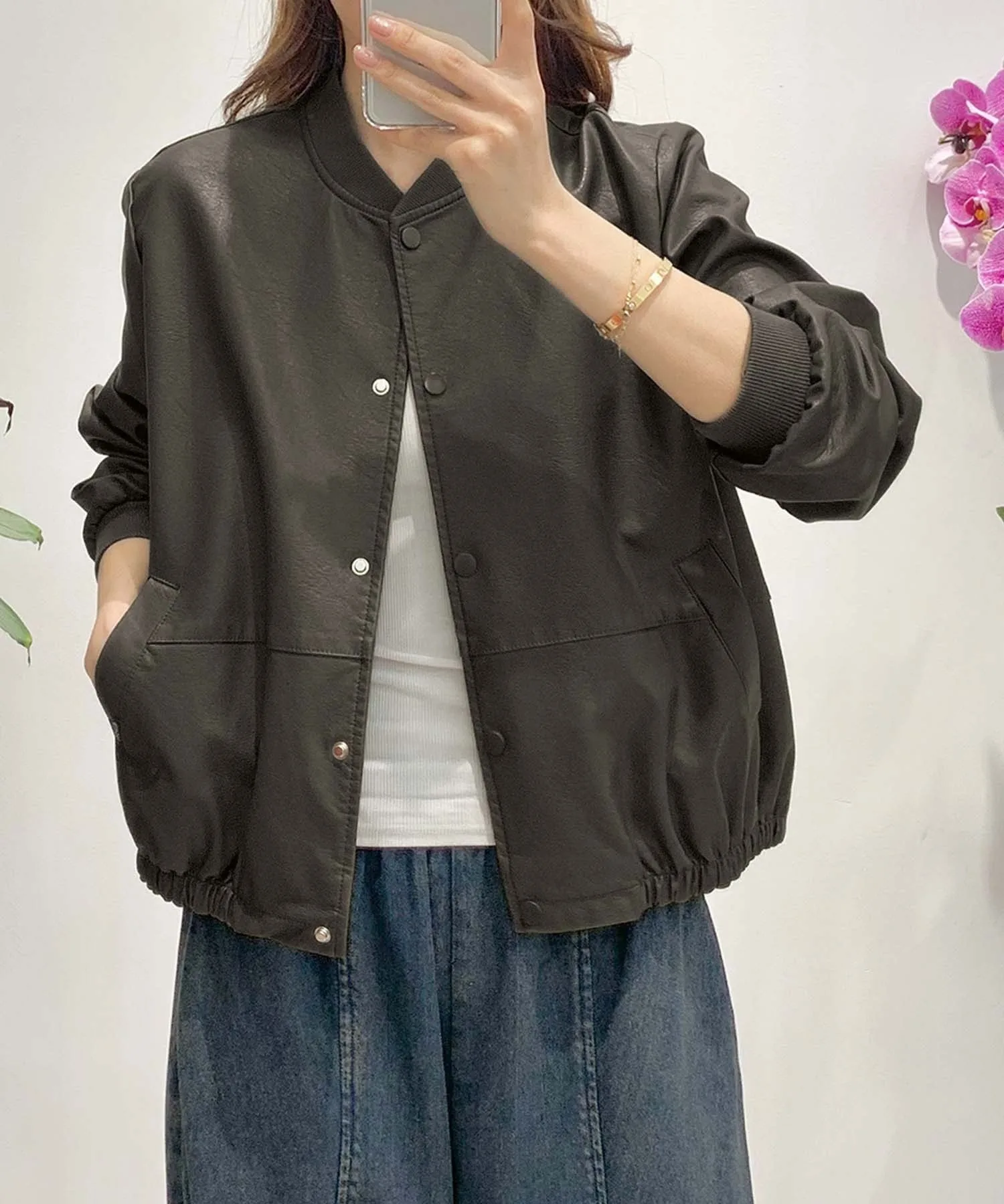 Бомбер с простым и изысканным дизайном. Благодаря круглому вырезу горловины, это универсальная вещь, которую легко сочетать с любым стилем. Нижний край имеет шнурок, позволяющий регулировать силуэт и создавать разнообразные образы. Также имеются практичные карманы, что делает его удобным для повседневного использования.