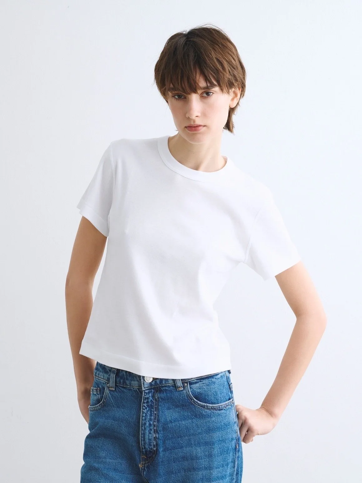 Немного укороченная длина обеспечивает сбалансированный вид даже без заправки в талию. Вы также можете сочетать ее с брюками или поясами с отметинами на талии.