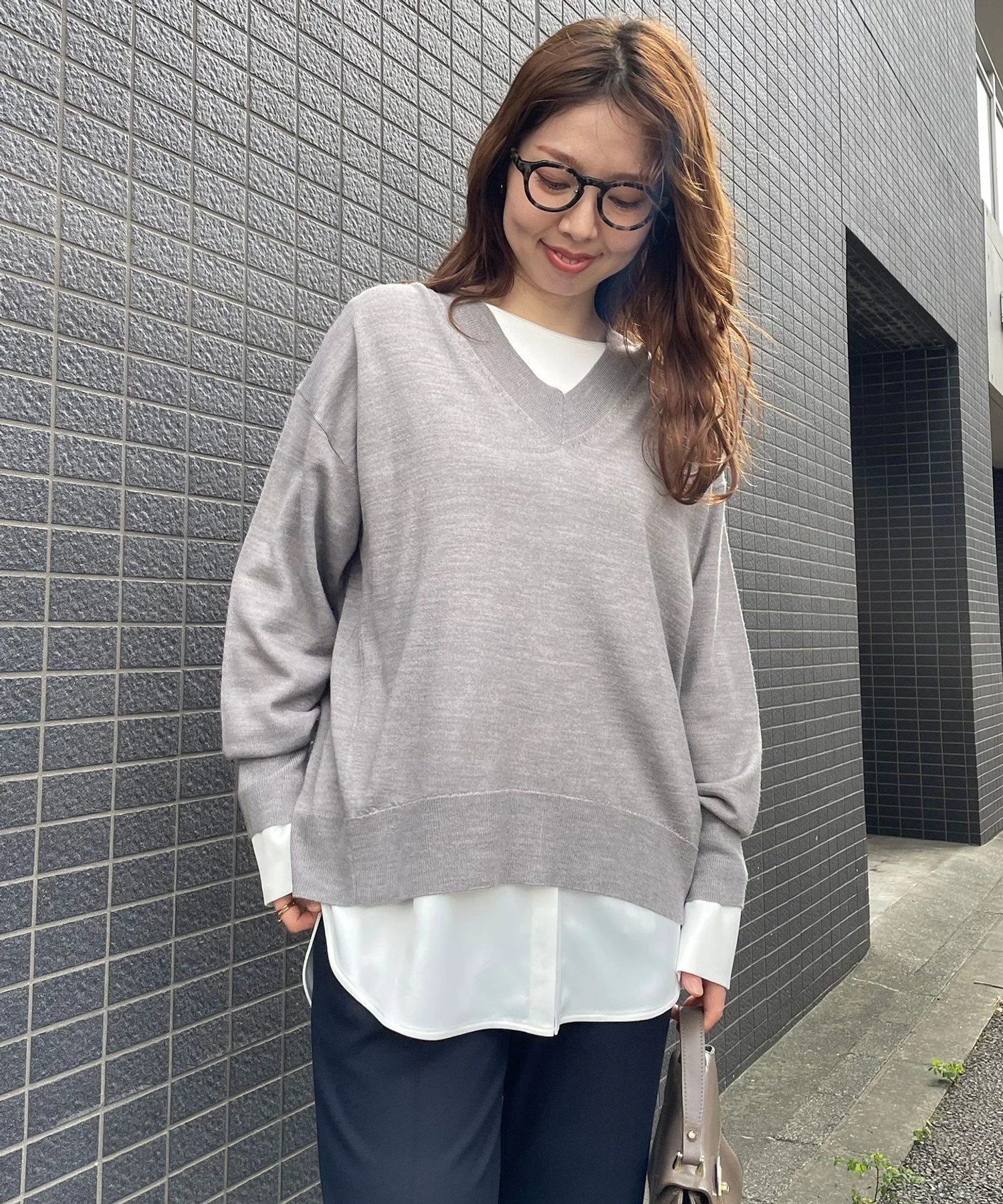 Дизайн: Этот пуловер с V-образным вырезом отлично смотрится как сам по себе, так и с подкладкой. Немного разная длина спереди и сзади, а также закругленный нижний край спереди хорошо сочетаются с любыми брюками или юбками.