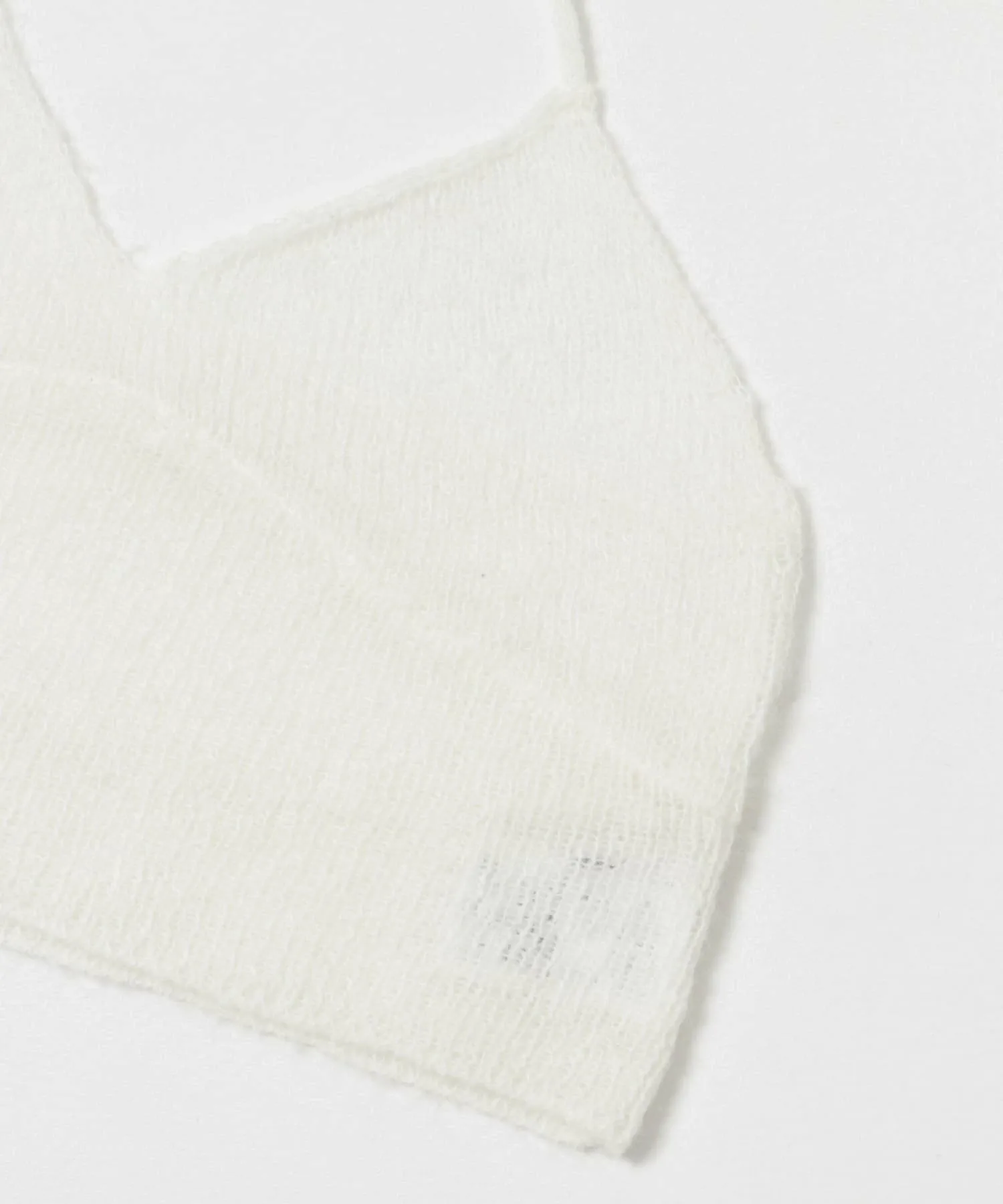 Этот вязаный бюстгальтер изготовлен из мягкой, пушистой пряжи и отличается нежным вязаным узором и контрастными деталями, подчеркивающими женственность.