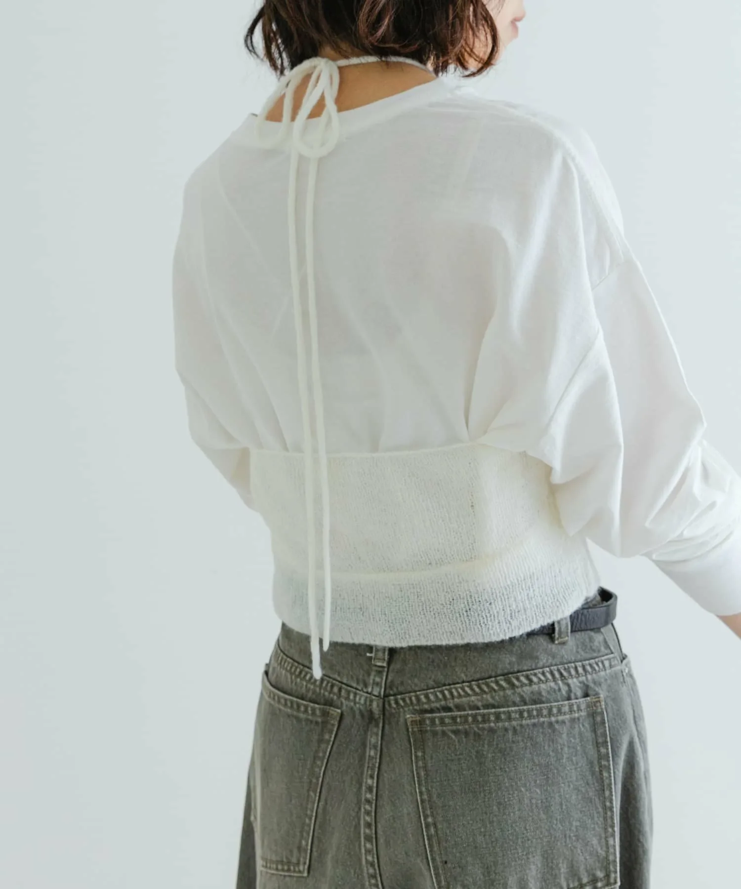 Помимо завязывания шнурков сзади, шнурки достаточно длинные, чтобы обернуть их вокруг шеи и позволить им свободно свисать, создавая различные образы.