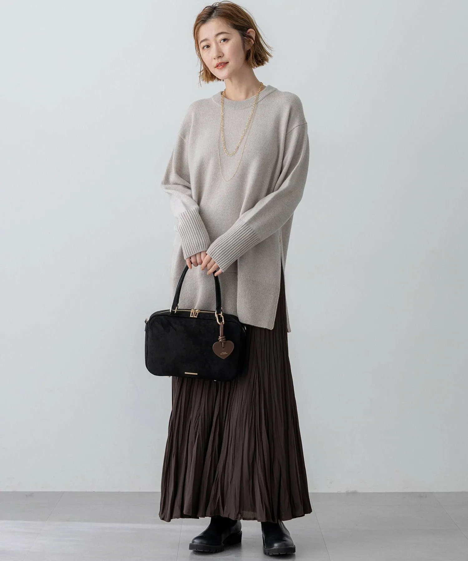 В нашу популярную серию из кашемировой смеси добавлена новая туника-пуловер. Свободный силуэт обеспечивает достаточное покрытие бедер, гарантируя комфортную посадку, которую оценят зрелые женщины. Сочетая роскошное тепло с расслабленным кроем, эта вещь идеально подходит для повседневной носки. Боковая молния может быть открыта или закрыта, создавая различные силуэты и предоставляя множество возможностей для создания стильных образов. Застегните молнию для аккуратного вида или оставьте ее открытой, чтобы создать разрез для более расслабленного ощущения. Эта универсальная вещь дополняет широкий спектр нарядов, от повседневных стилей с узкими брюками или леггинсами до стильных выходов с юбкой. Доступна в четырех цветах: повседневный светло-серый (#003), изысканный серый (#004), мягкий бежевый (#033) и освежающий светло-зеленый (#062). Материал
