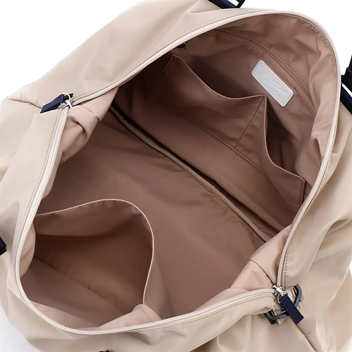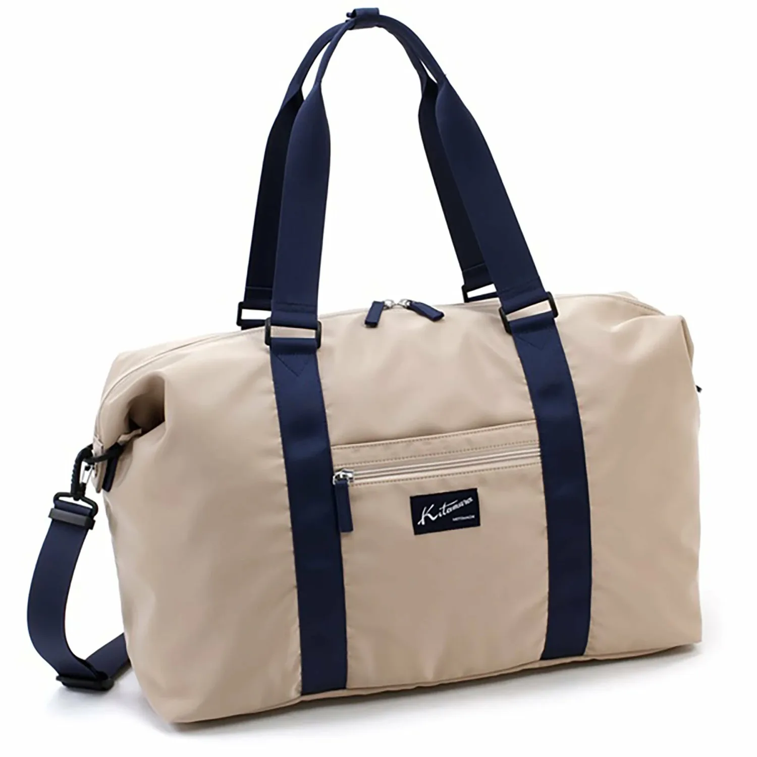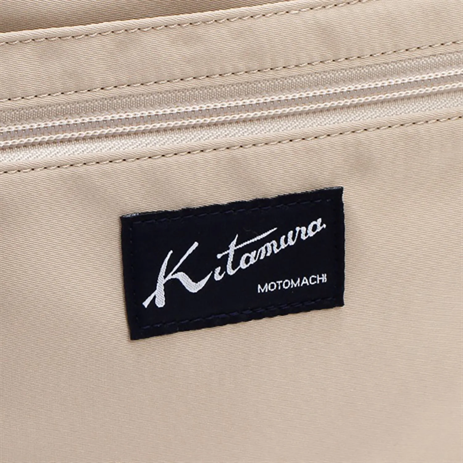 Эта сумка-бостон украшена тканой этикеткой с вышитым логотипом Kitamura. Застежки-кнопки по бокам позволяют изменять форму сумки в зависимости от ее вместимости. Также сзади имеется ремень для переноски, а спереди – внешний карман для быстрого доступа, что делает ее очень функциональной. Дно фиксированное, но сумку можно сложить, поставив ее вертикально внутри, что является еще одной замечательной особенностью для экономии места при хранении.