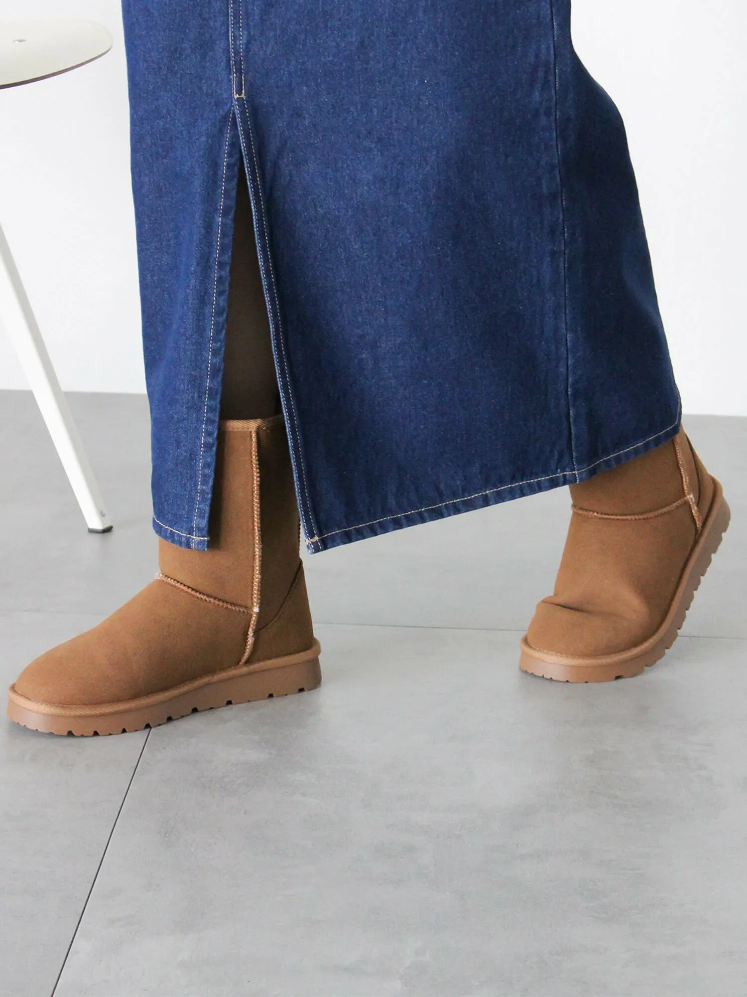 Ботинки средней длины с боа, которые отлично подойдут к любому наряду.