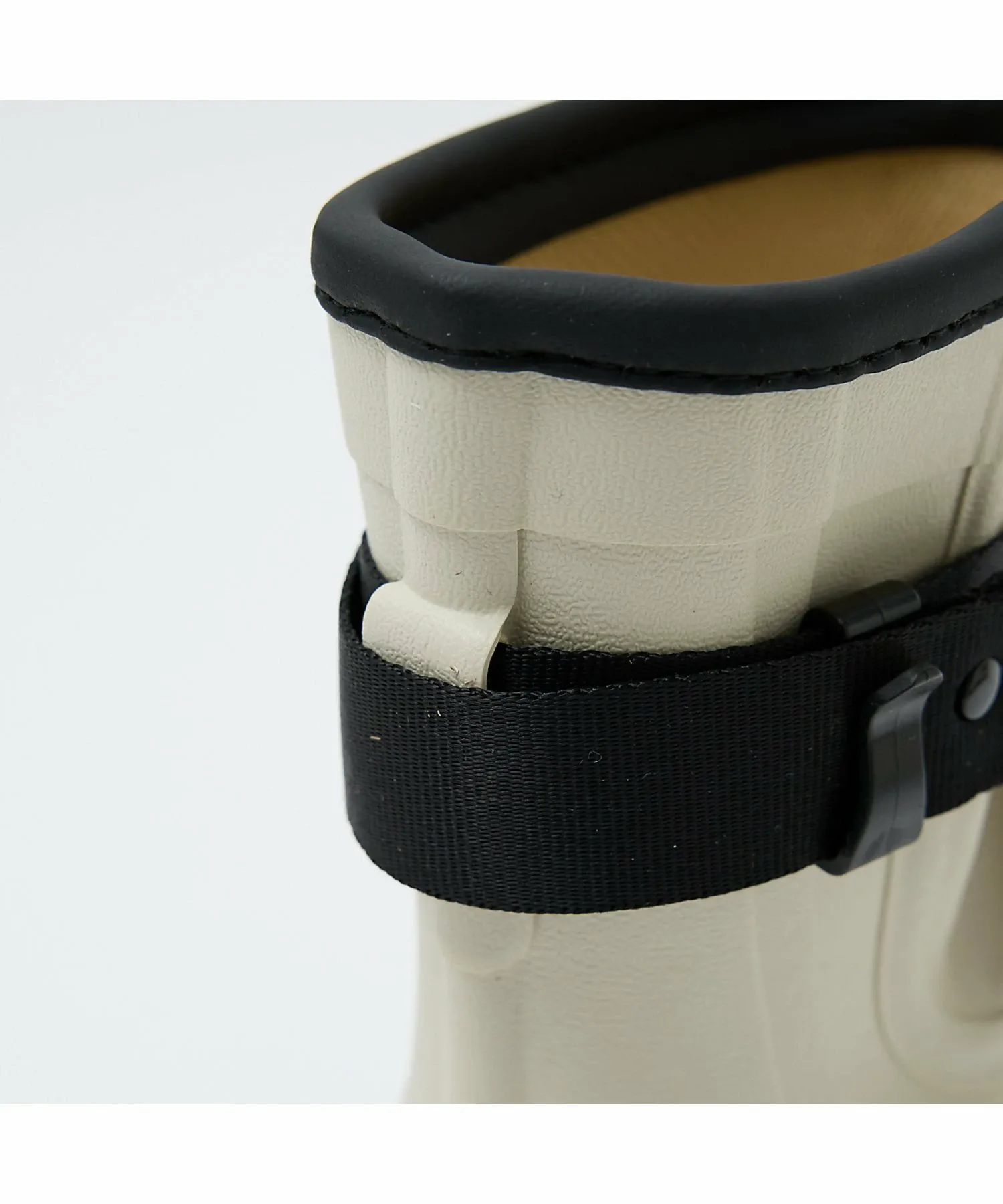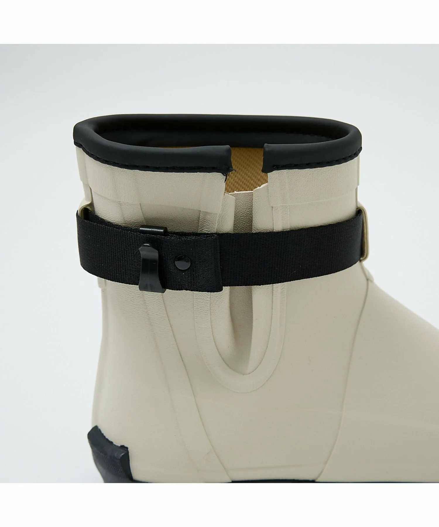 Пряжка подчеркивает прочную резину, создавая силуэт, который улучшает посадку, сохраняя при этом удобство надевания и снимания.
