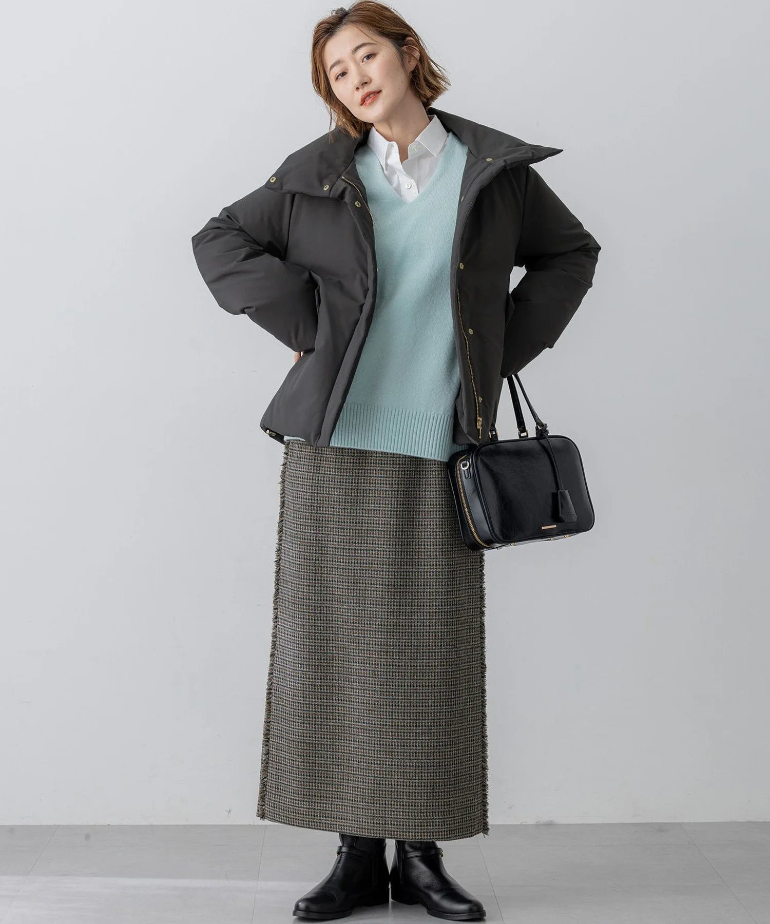 Пуловер без выреза с V-образным вырезом, создающий аккуратный вид вокруг шеи. Несмотря на простой силуэт, дизайн подчеркнут легким расклешением спереди и смелой, привлекательной ребристой отделкой рукавов. Хотя его можно носить и в повседневной жизни, мы также рекомендуем надевать его под низ с футболкой или блузкой для более изысканного образа. Его можно элегантно носить с нарядными брюками в офисе или сочетать с джинсами или расклешенной юбкой в выходные, создавая универсальный образ, излучающий утонченный, женственный стиль. Доступен в семи цветах: чистый и изысканный белый (#001), светло-серый (#003), который хорошо сочетается с любым цветом, серый (#004), который добавляет глубины вашему образу, яркий и женственный пурпурный (#014), мягкий и нежный бежевый (#033), изысканный и утонченный павлиний зеленый (#061) и освежающий и яркий светло-зеленый (#062). Два новых цвета добавлены в сотрудничестве с Ай Миками. Фиолетовый (#080) сочетает в себе яркость и изысканность, а сине-серый (#074) создает утонченный образ, что делает их идеальными акцентными цветами для вашего осенне-зимнего гардероба.