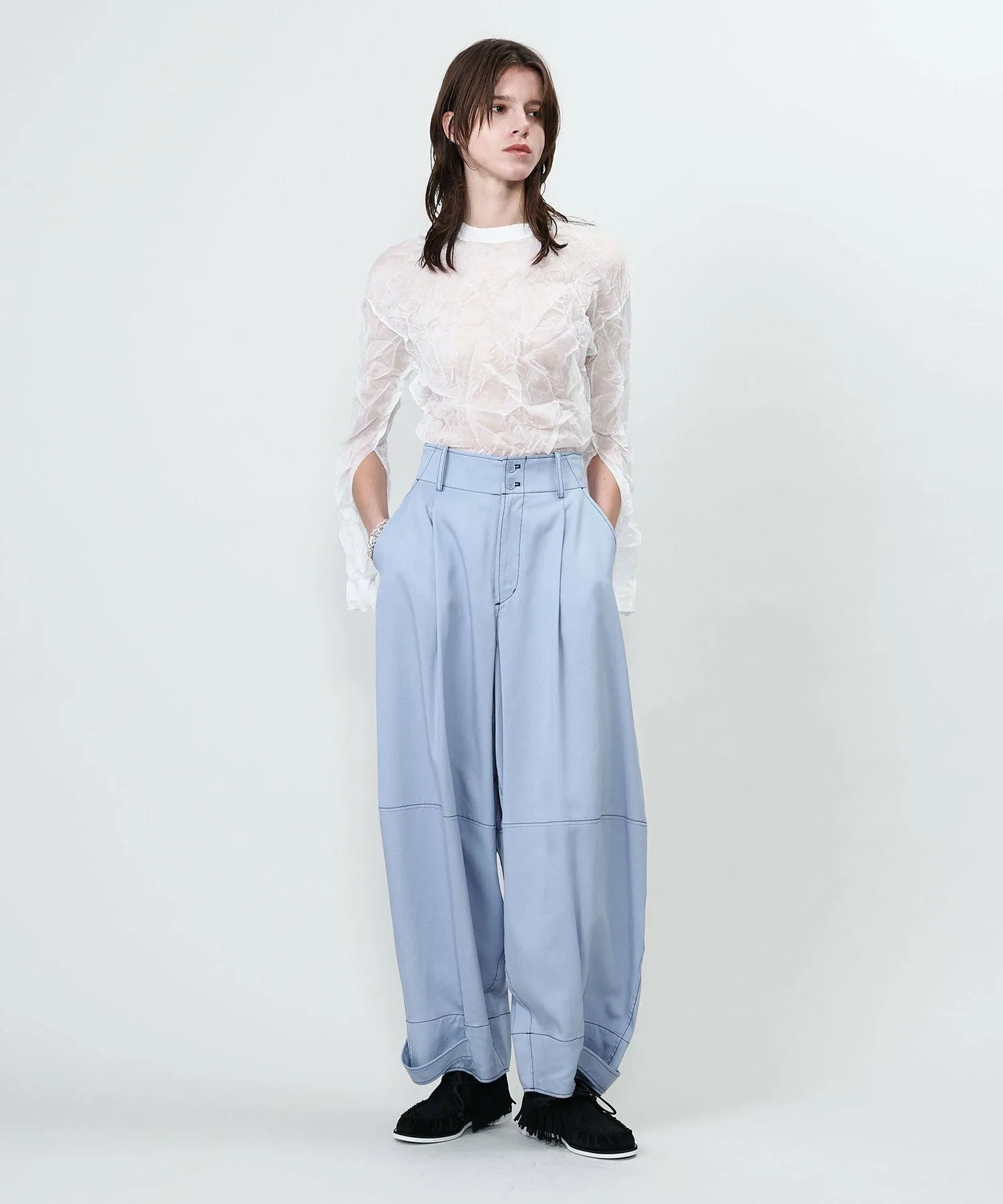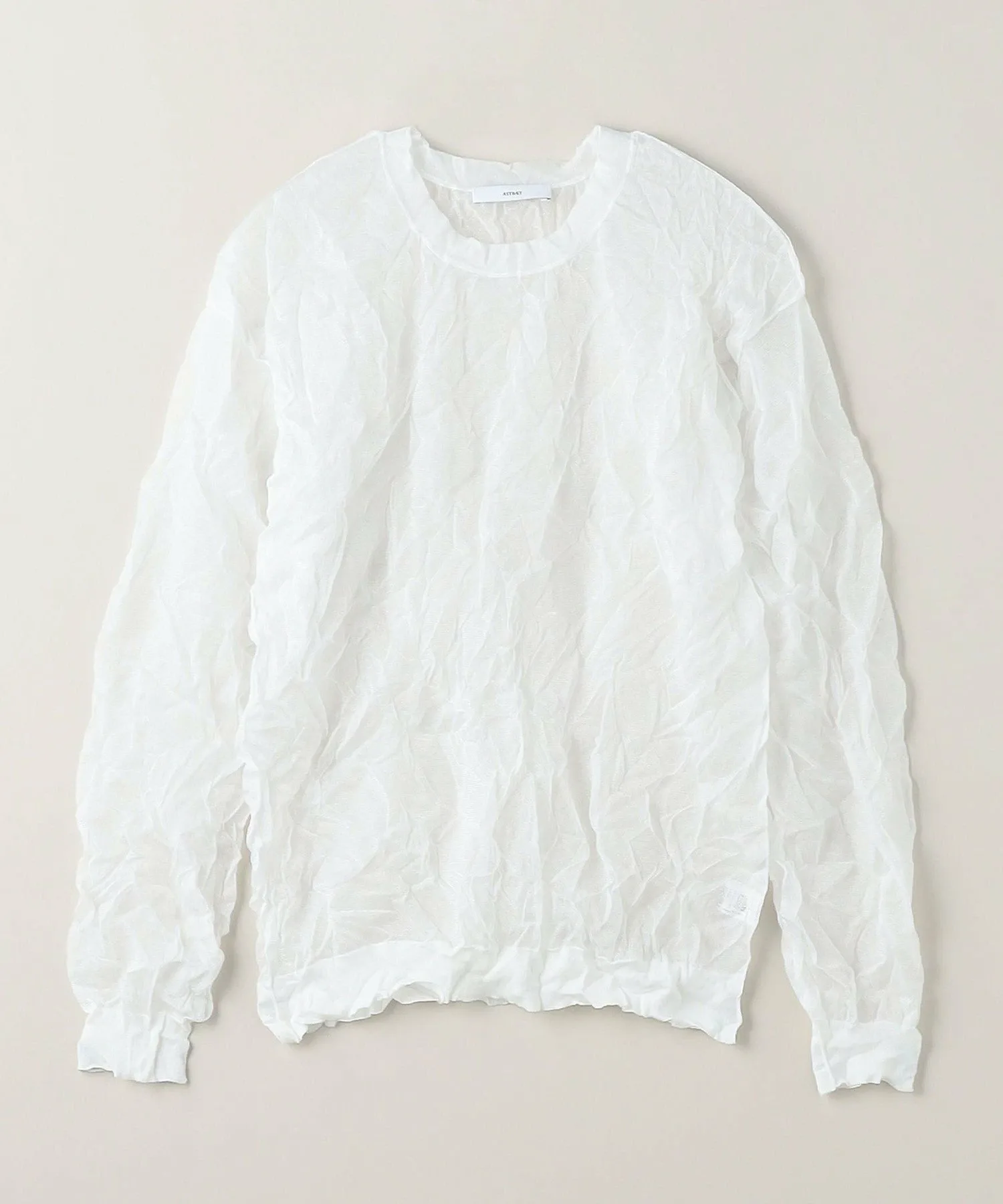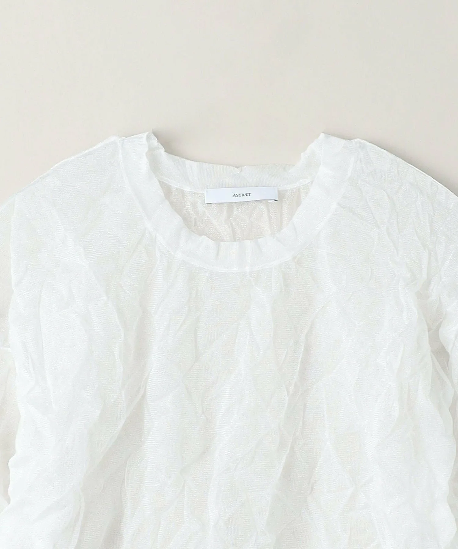 Эта трикотажная блузка имеет трехмерную текстуру из полиэстера с мятой отделкой, что создает гладкое ощущение.