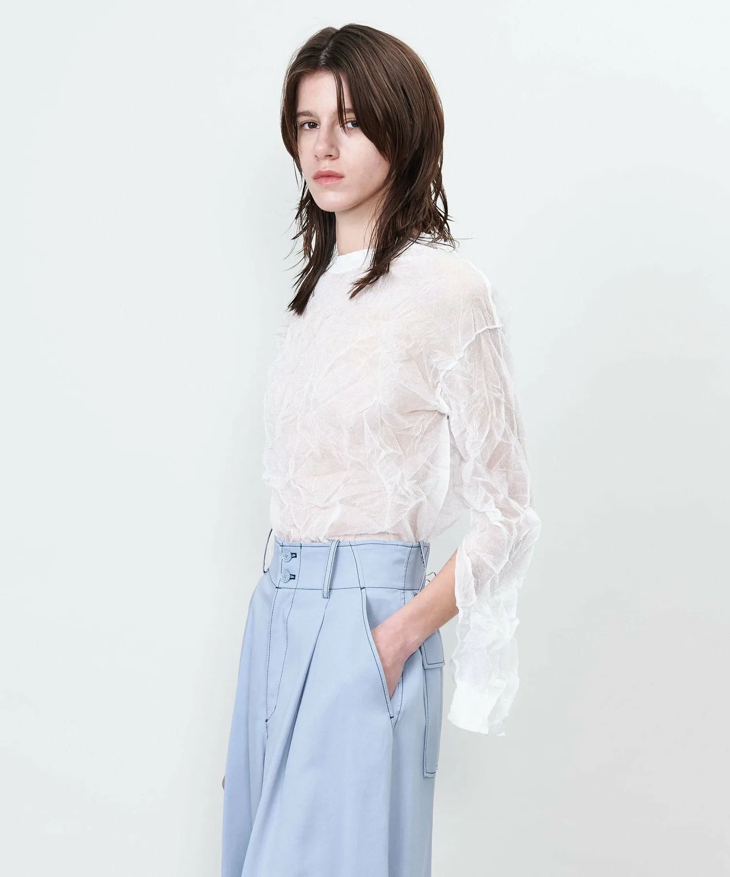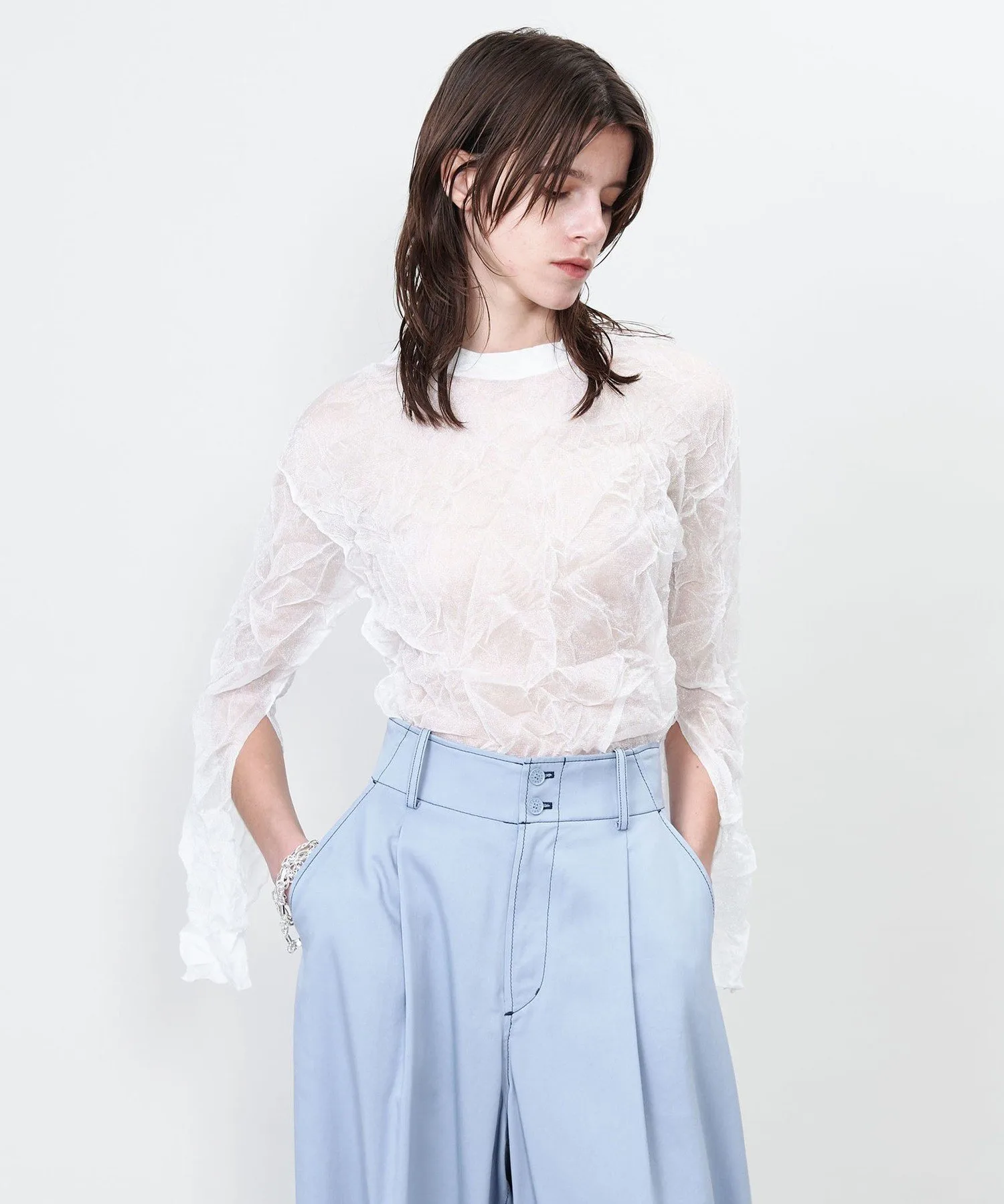 Трикотажная блузка с длинными рукавами и эффектным дизайном, с разрезами на манжетах и мятой отделкой.