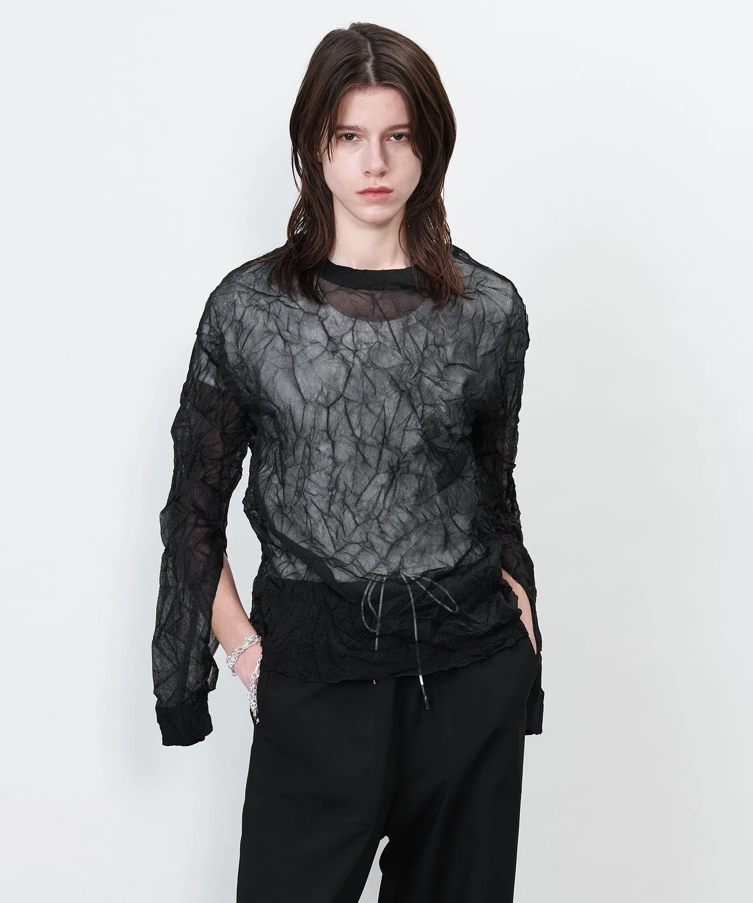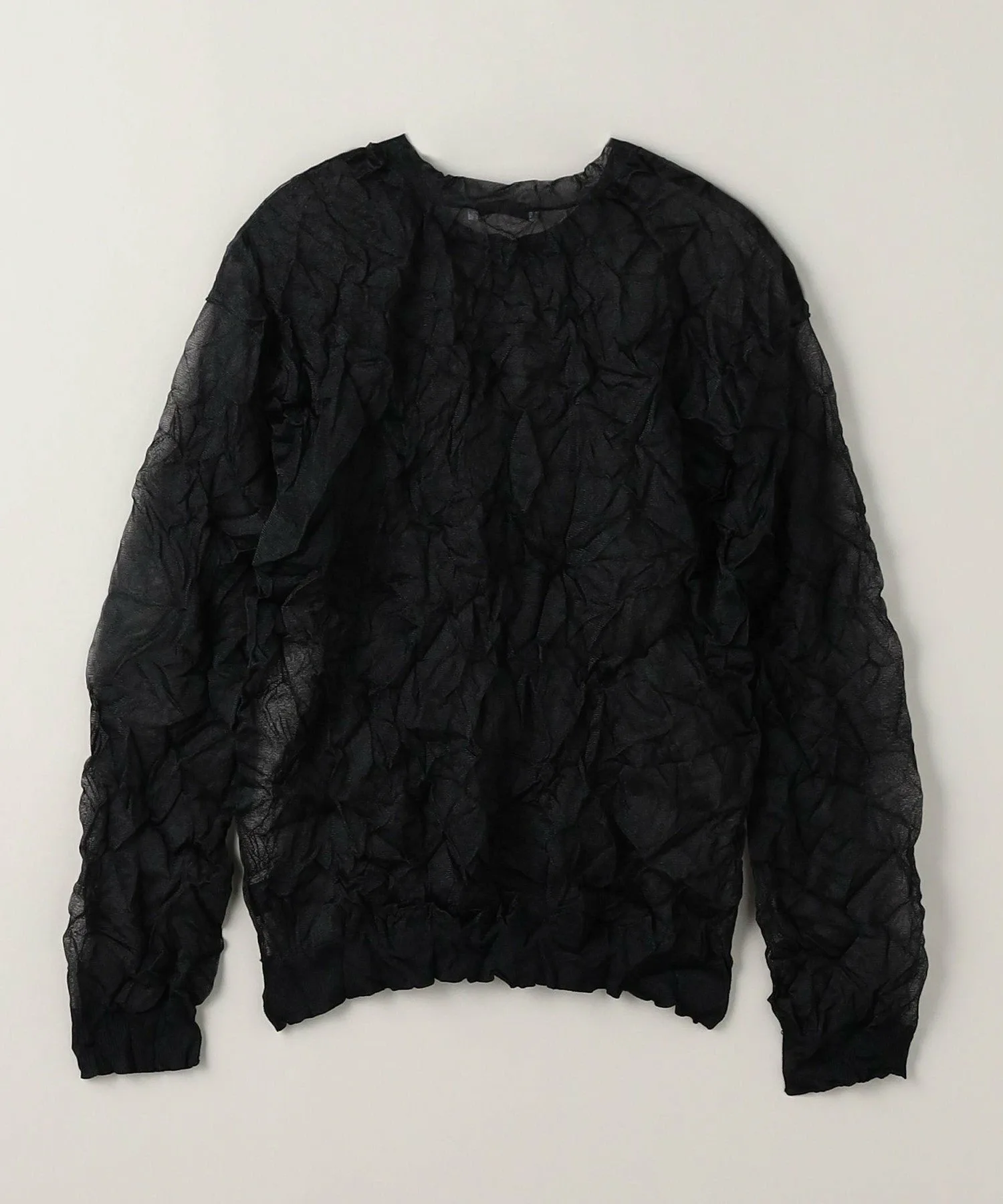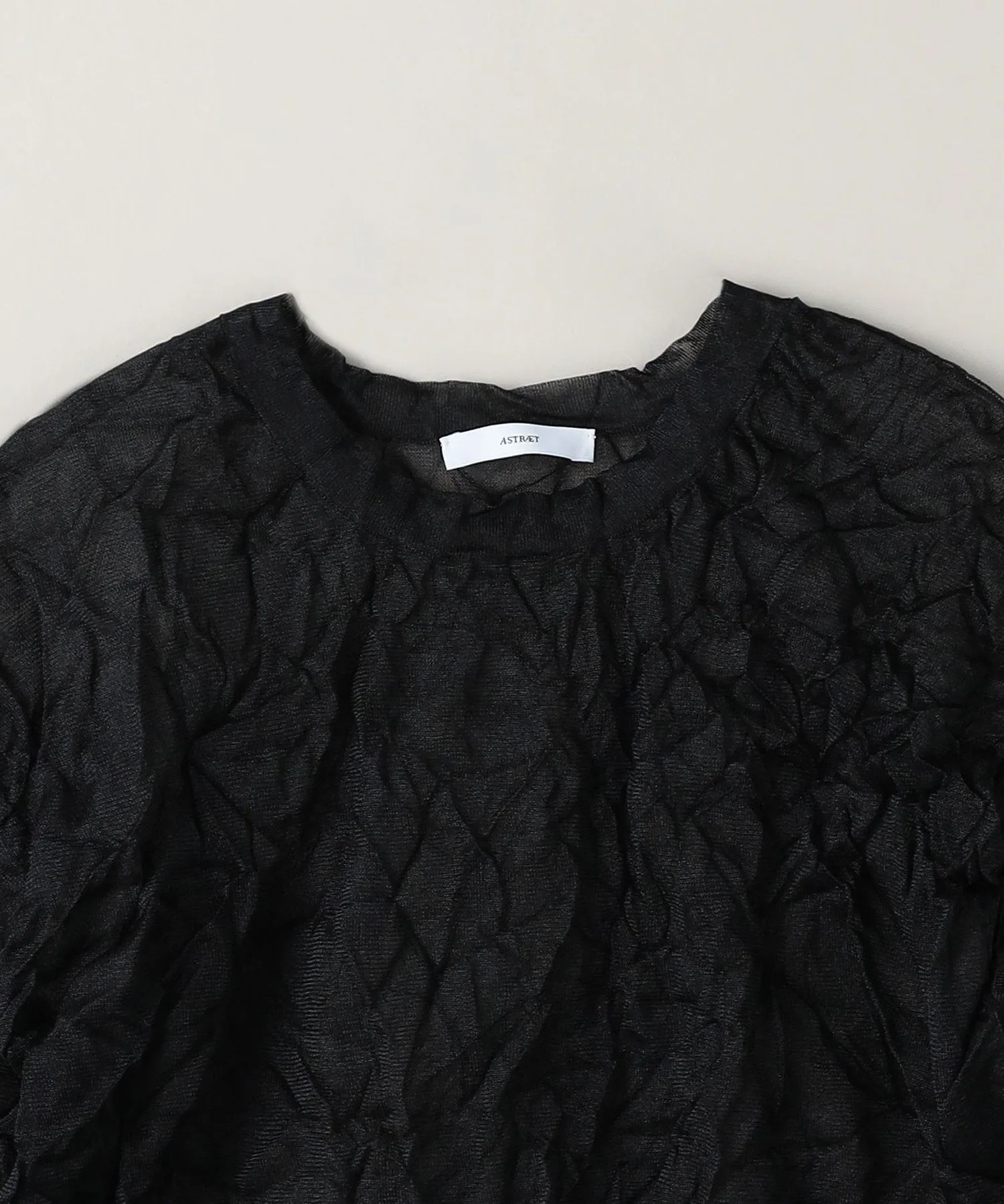 Эта трикотажная блузка имеет трехмерную текстуру из полиэстера с мятой отделкой, что создает гладкое ощущение.