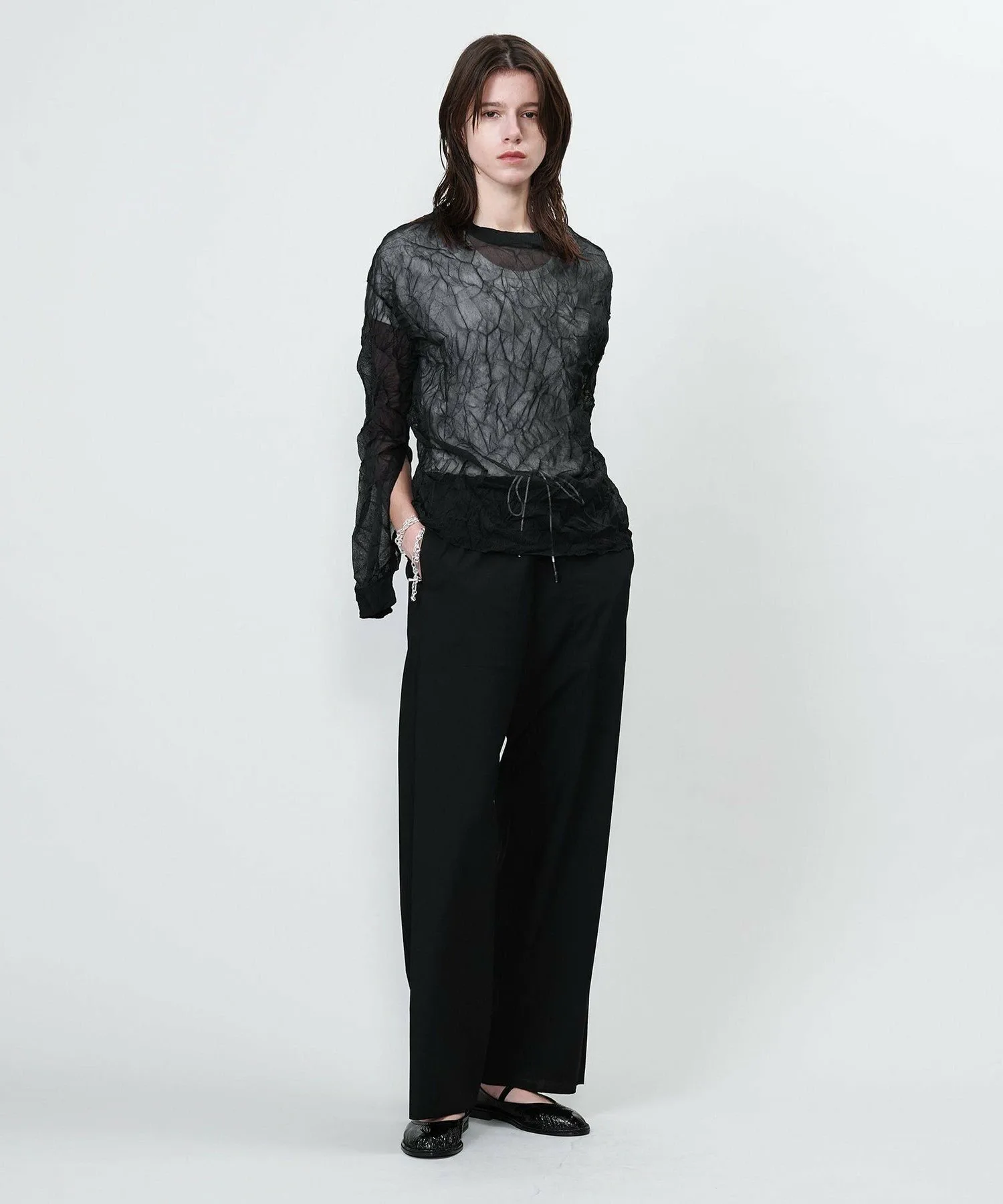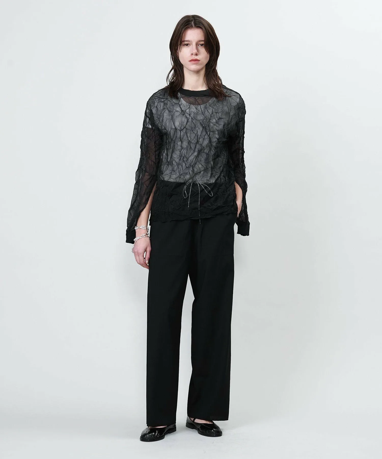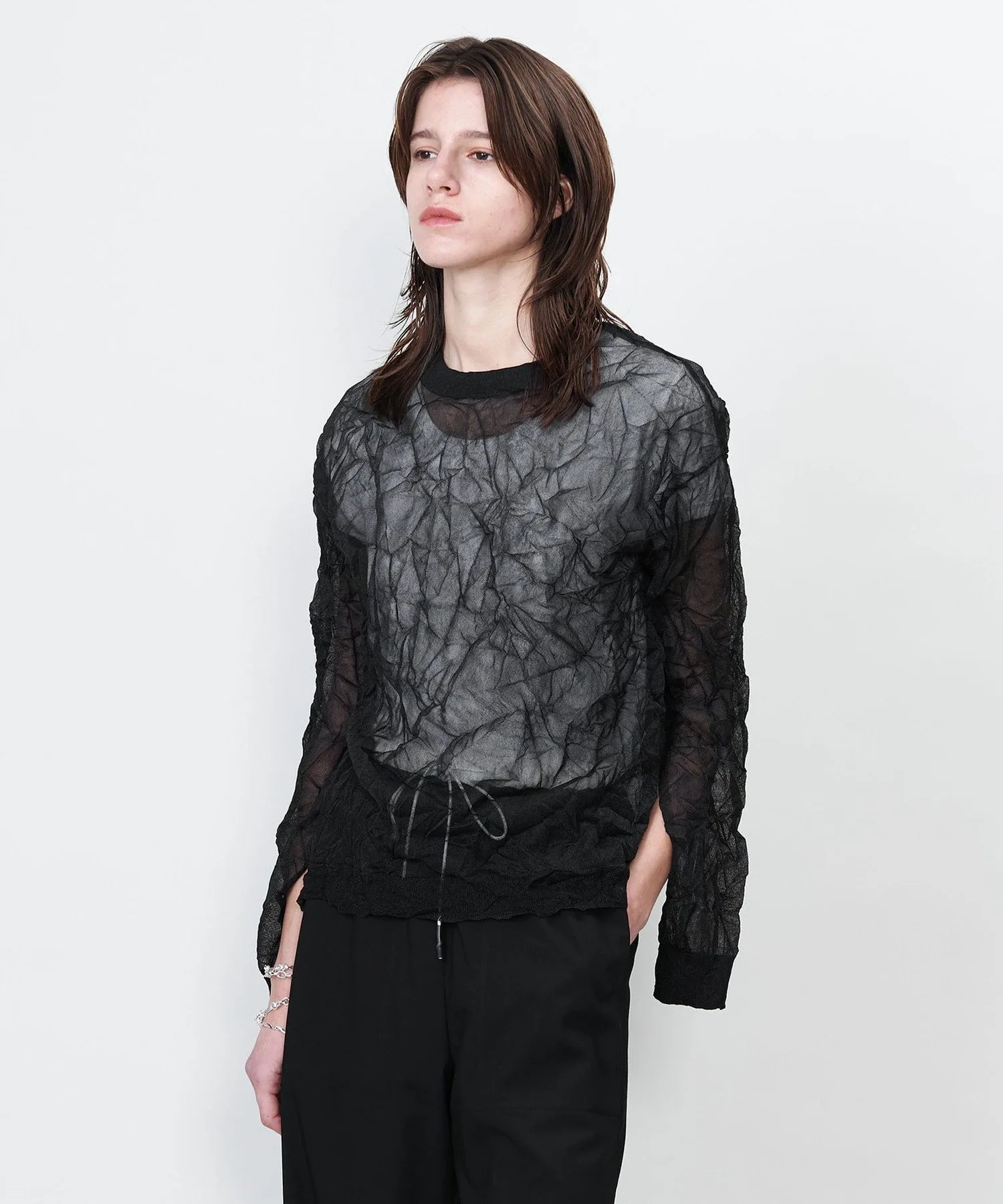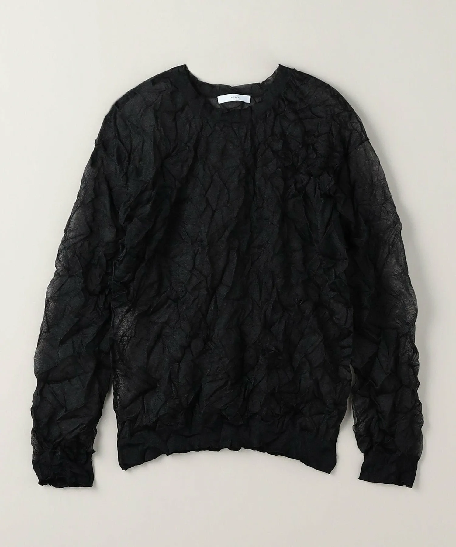 Эта трикотажная блузка имеет трехмерную текстуру из полиэстера с мятой отделкой, что создает гладкое ощущение.