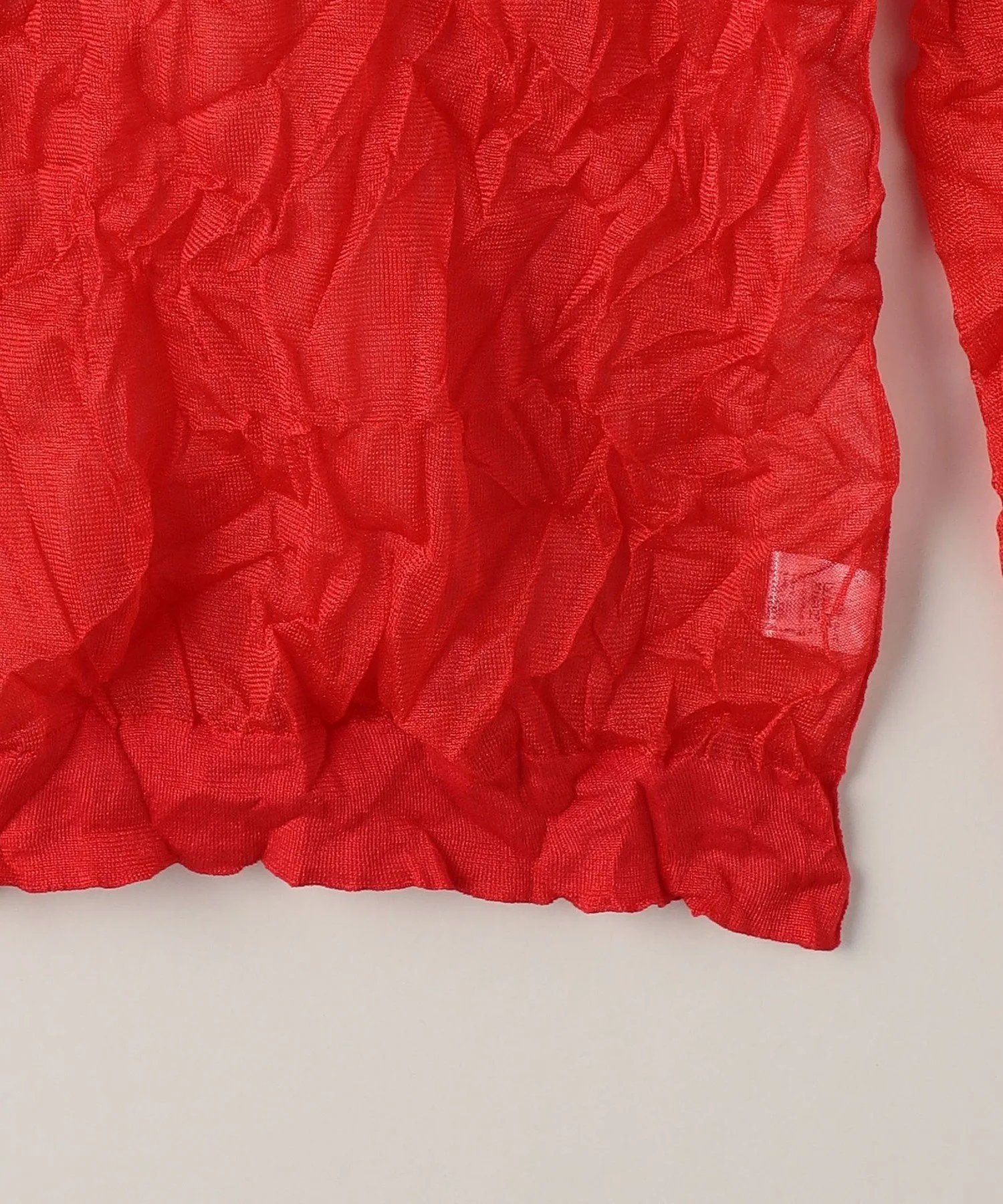 Эта трикотажная блузка имеет трехмерную текстуру из полиэстера с мятой отделкой, что создает гладкое ощущение.