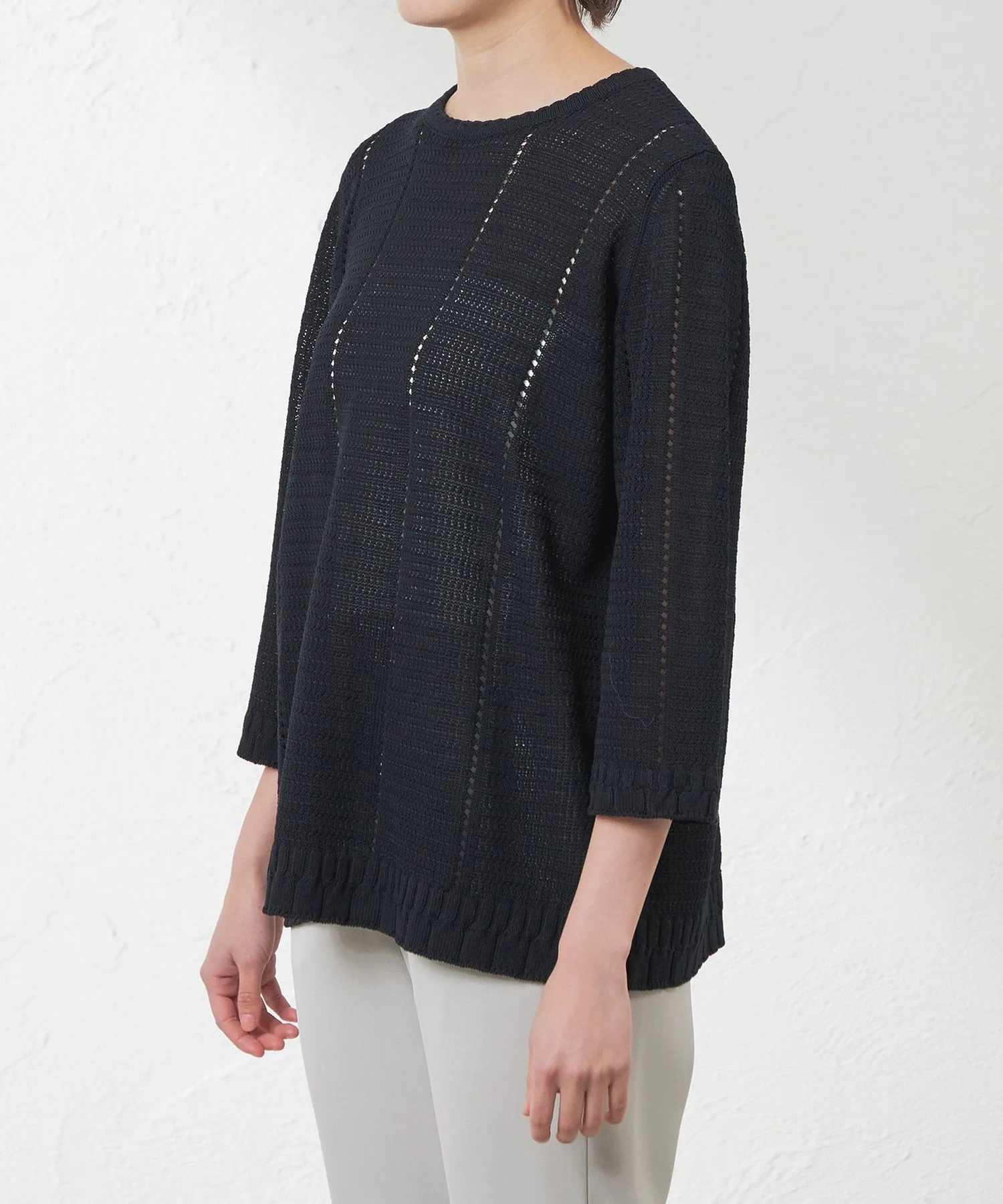 Эта туника-туника А-силуэта украшена узором «косичка» по всей поверхности. Умеренный расклешенный крой создает изысканный, повседневный образ.