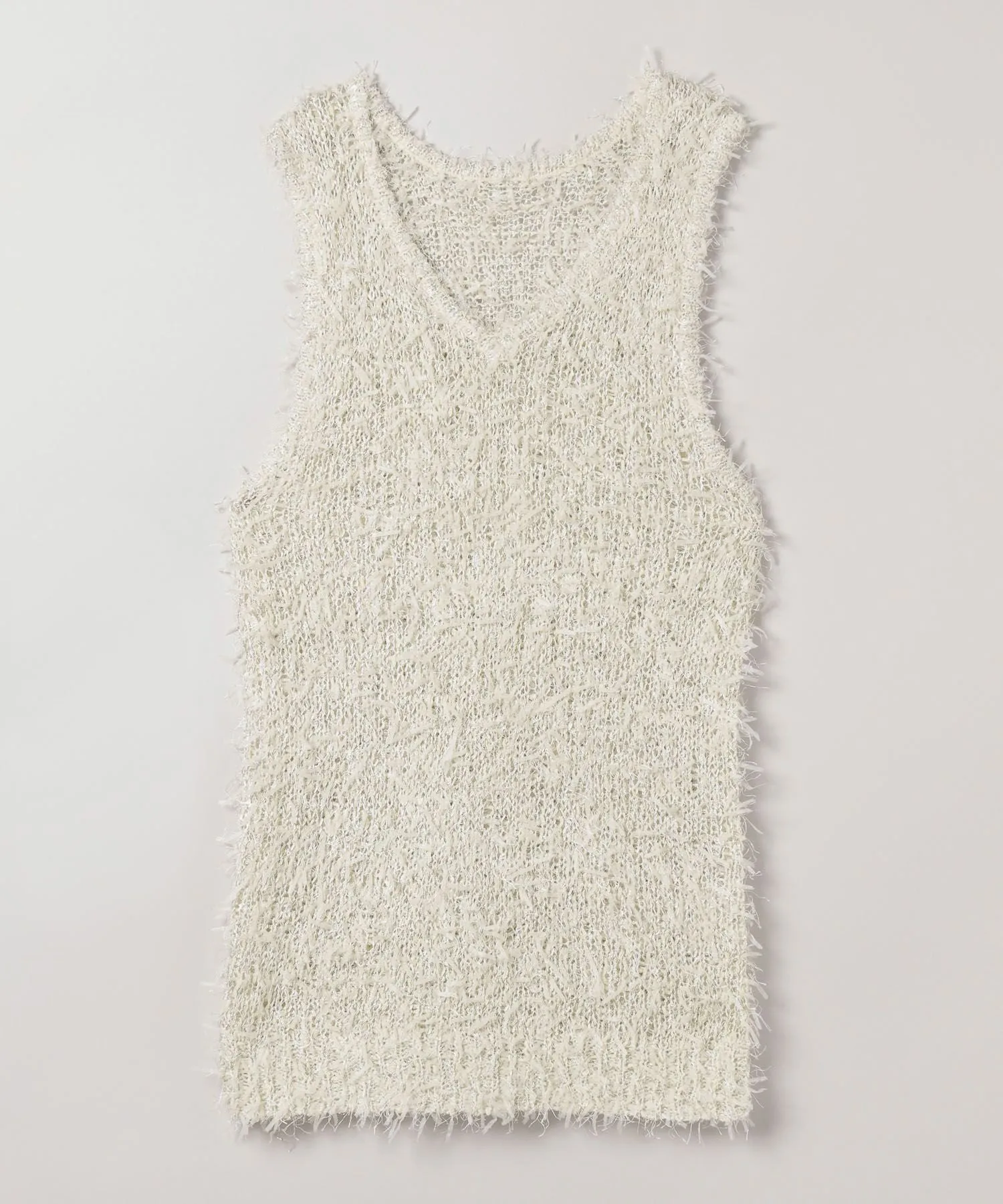 Типичный топ без рукавов, связанный из четырех видов пряжи.