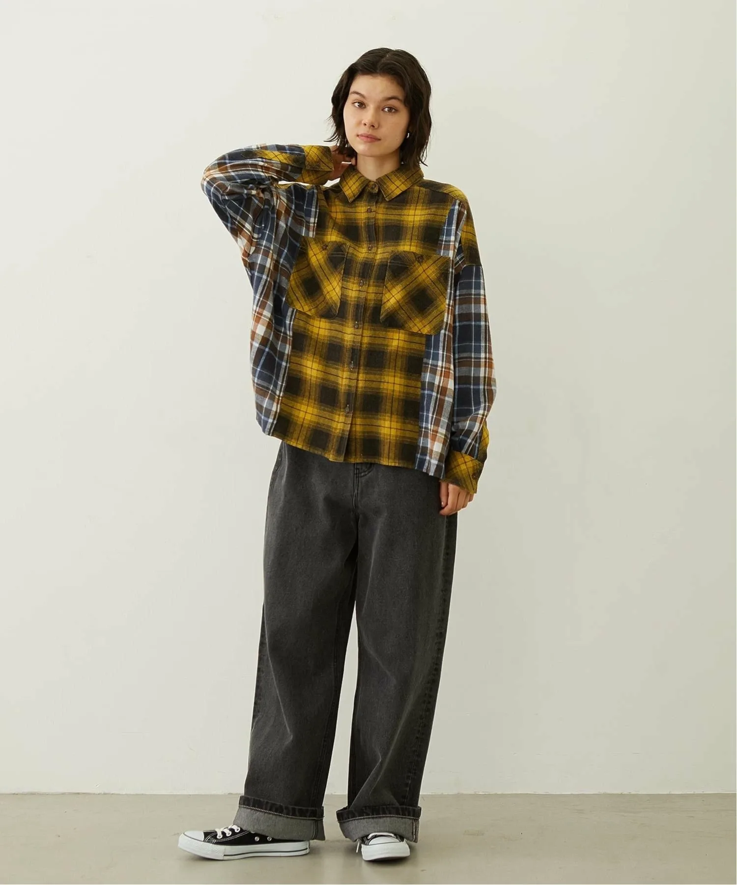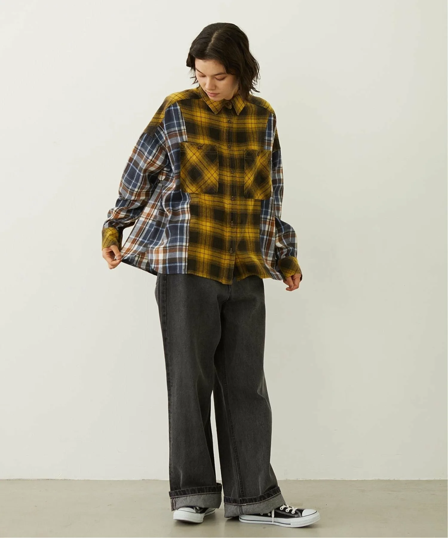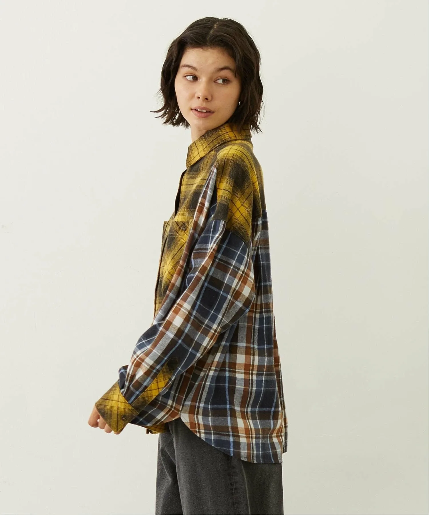 Платье-рубашка в клетку с обновленным дизайном и множеством вставок